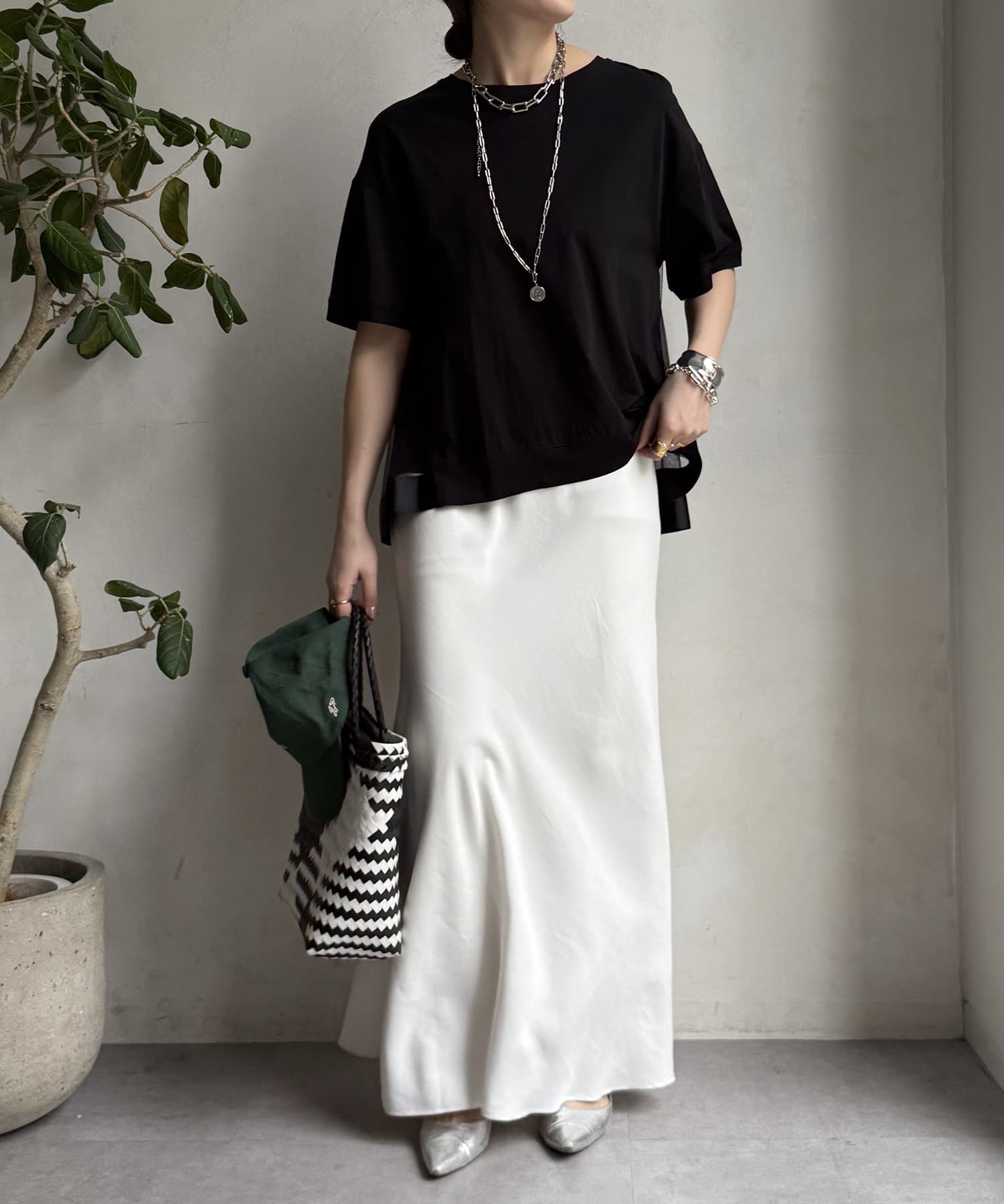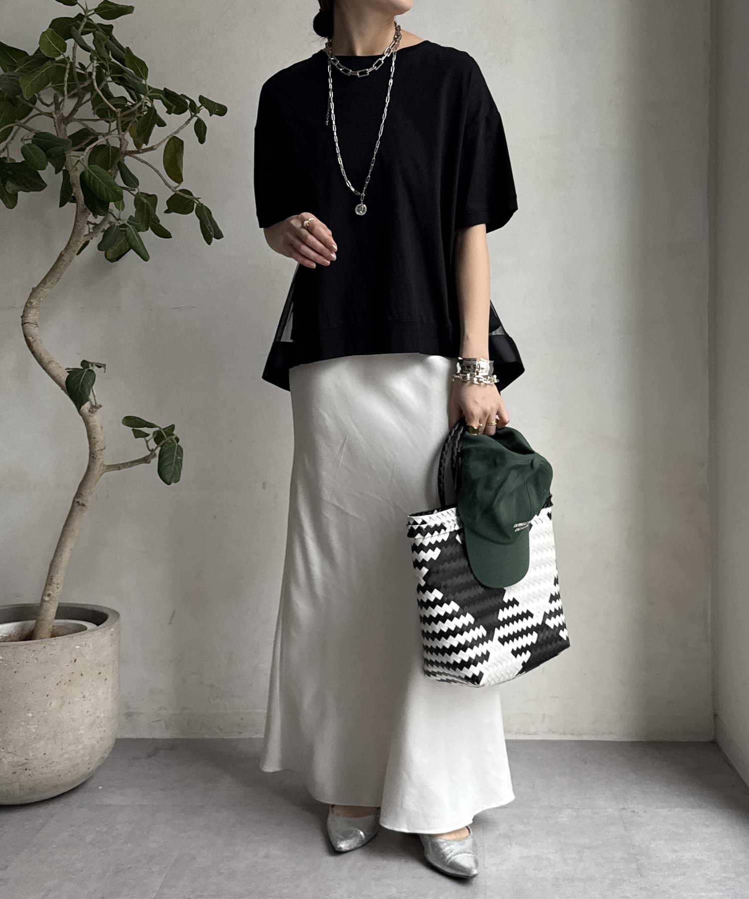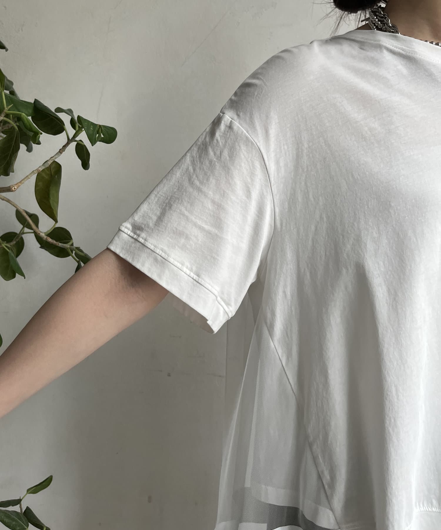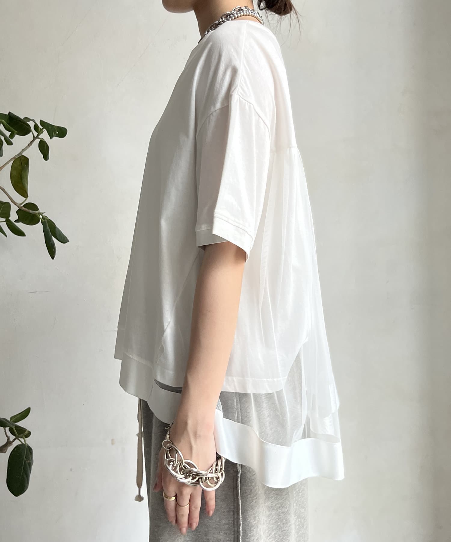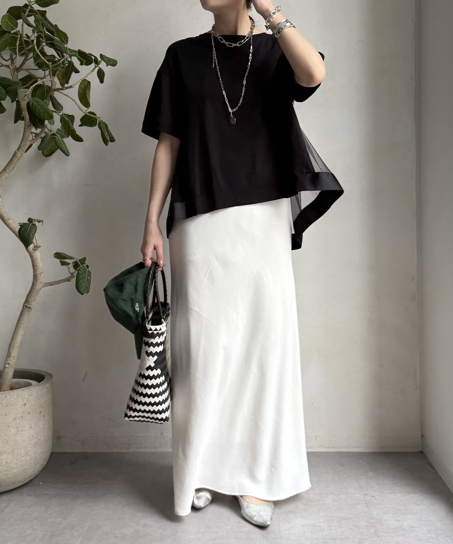 後ろの着丈が長めに作られていて、チュールが抜け感をプラスしてくれるので