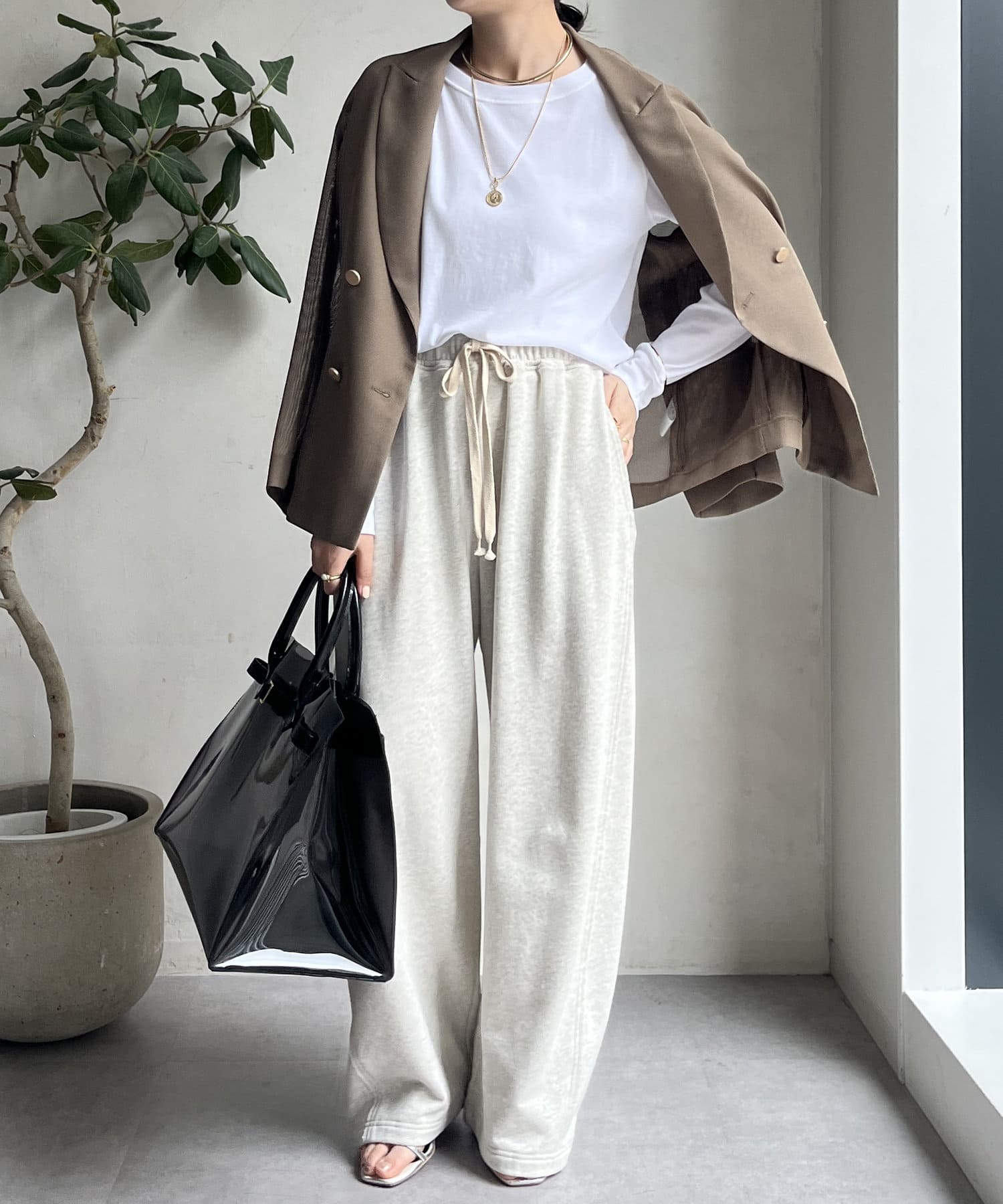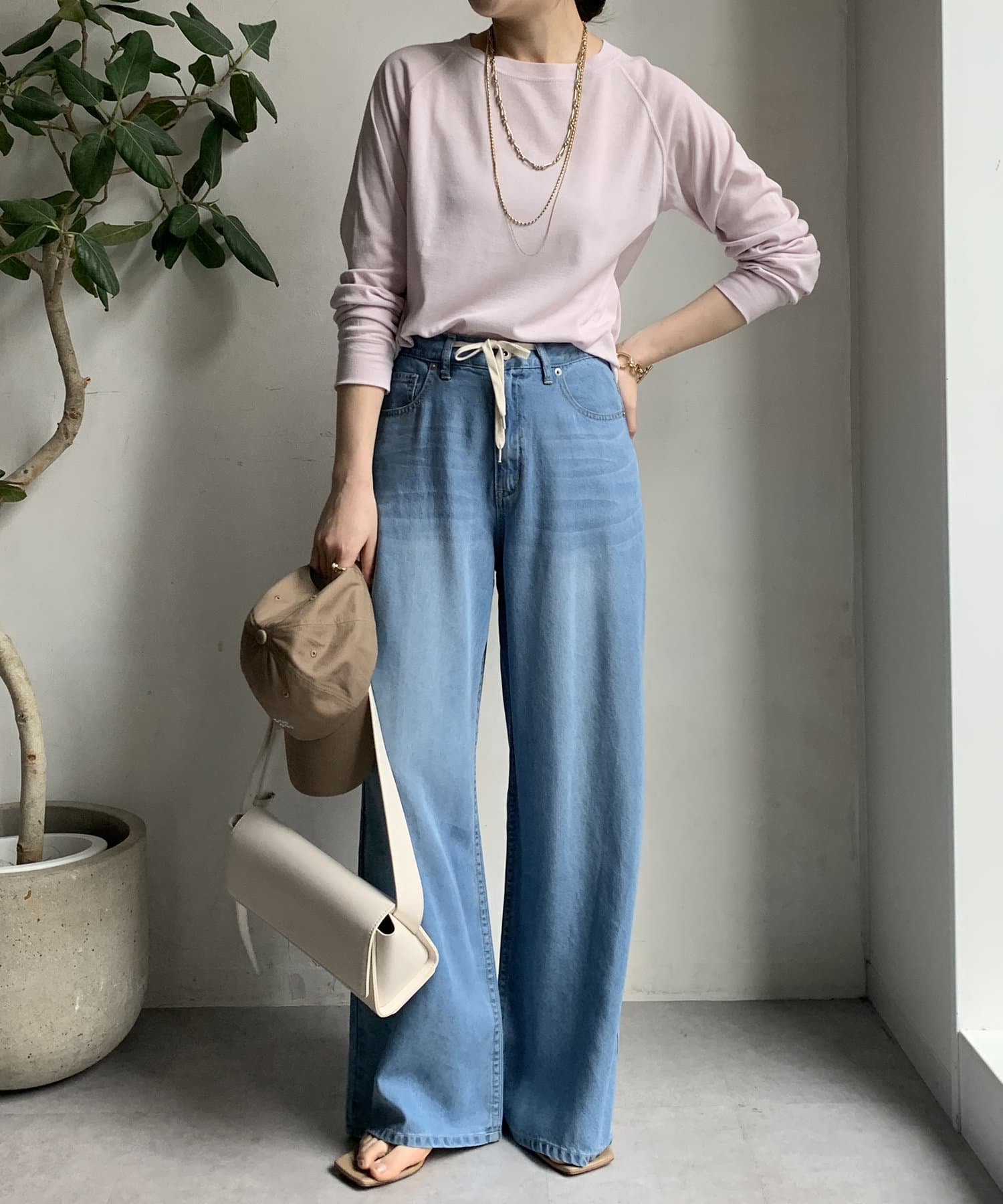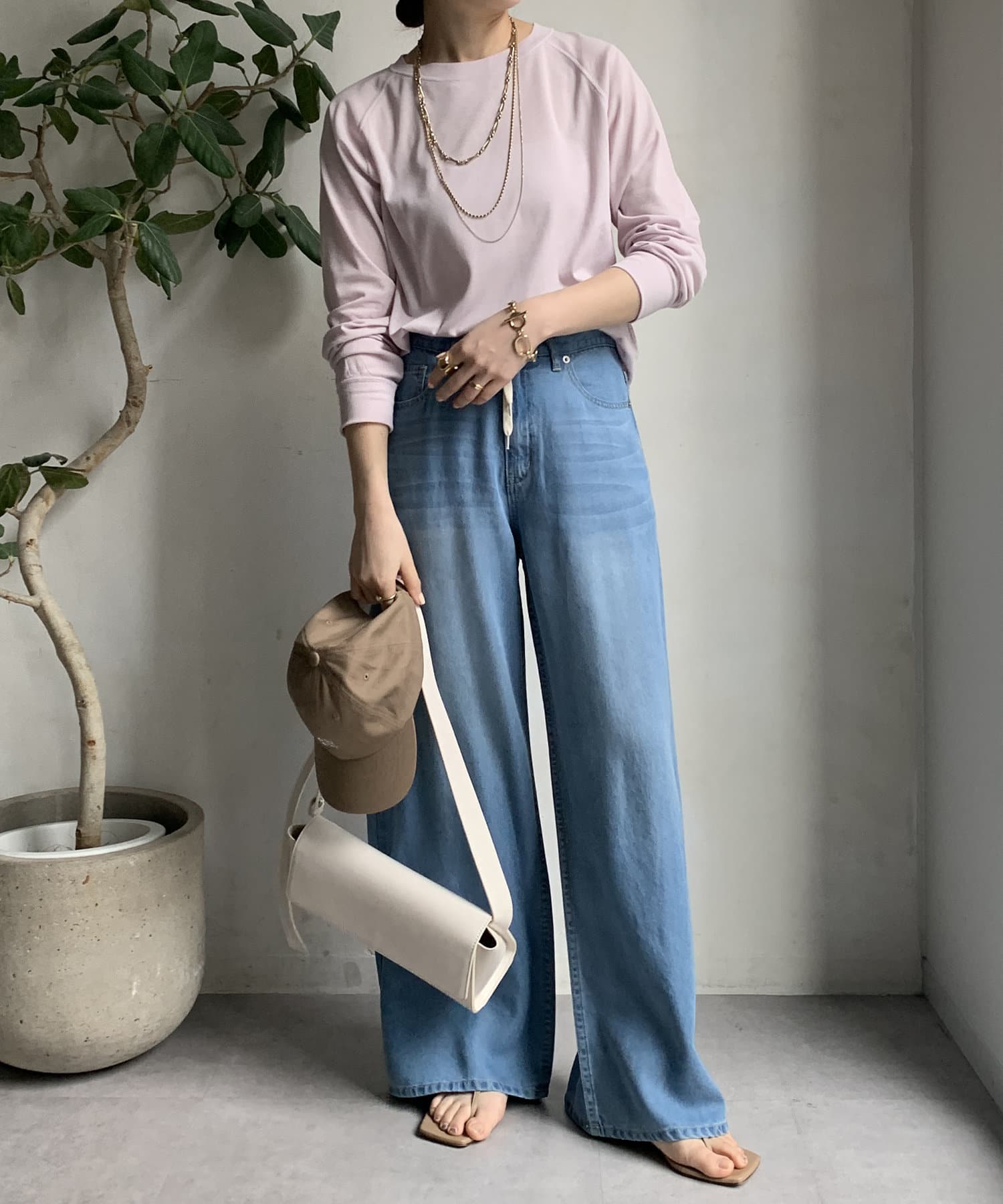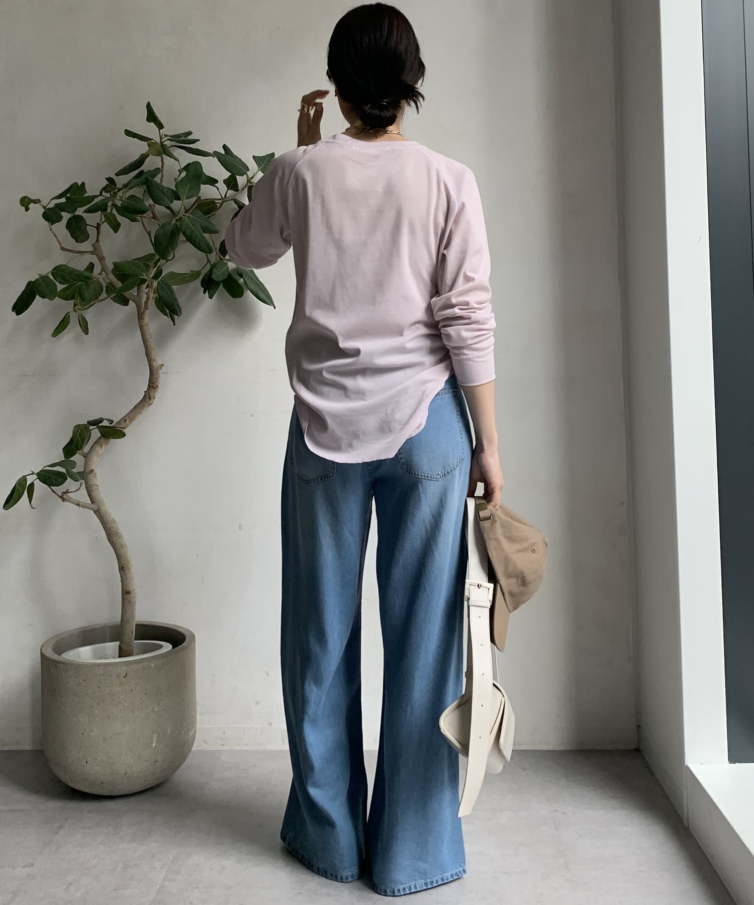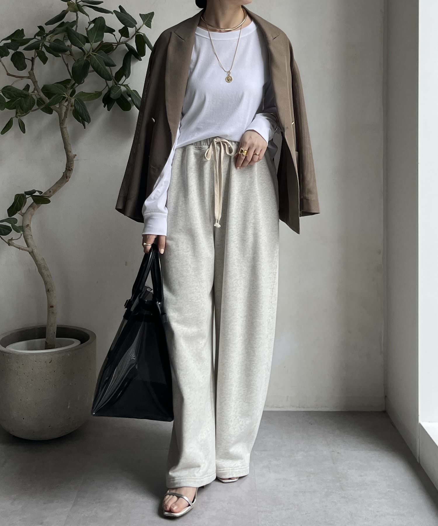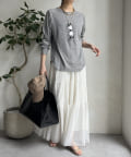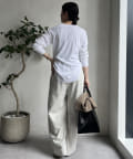 ボトムスを選ばず着用できるのが嬉しいポイントです。