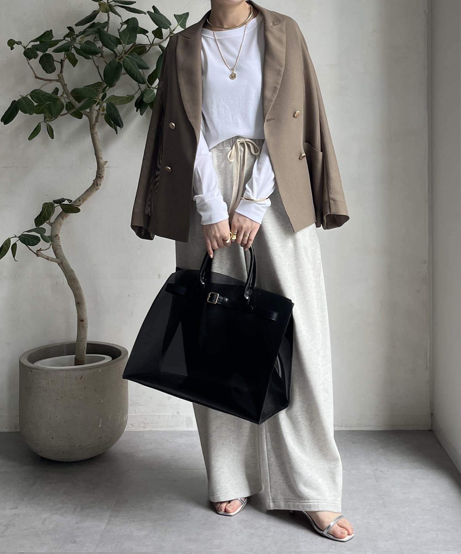素材感と単色でのデザインなので、女性らしく様々なスタイリングにマッチしますよ。