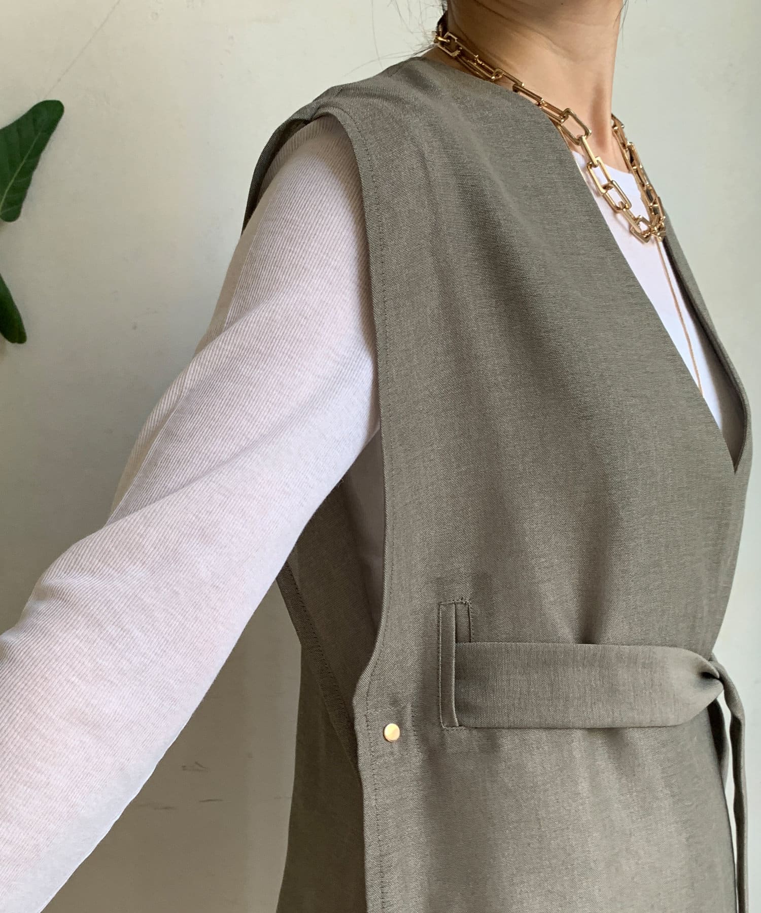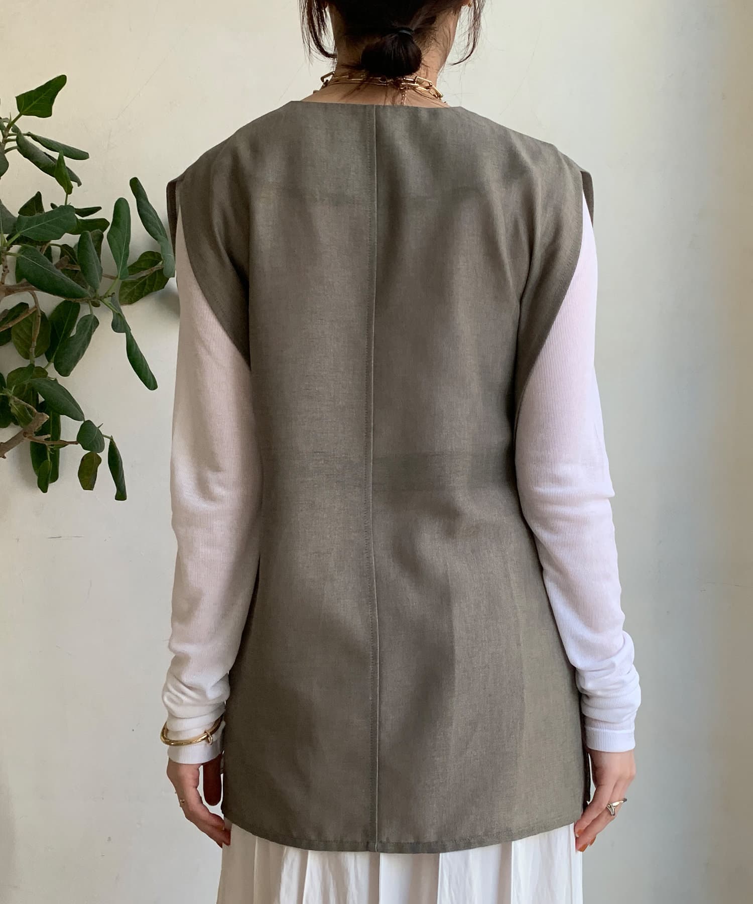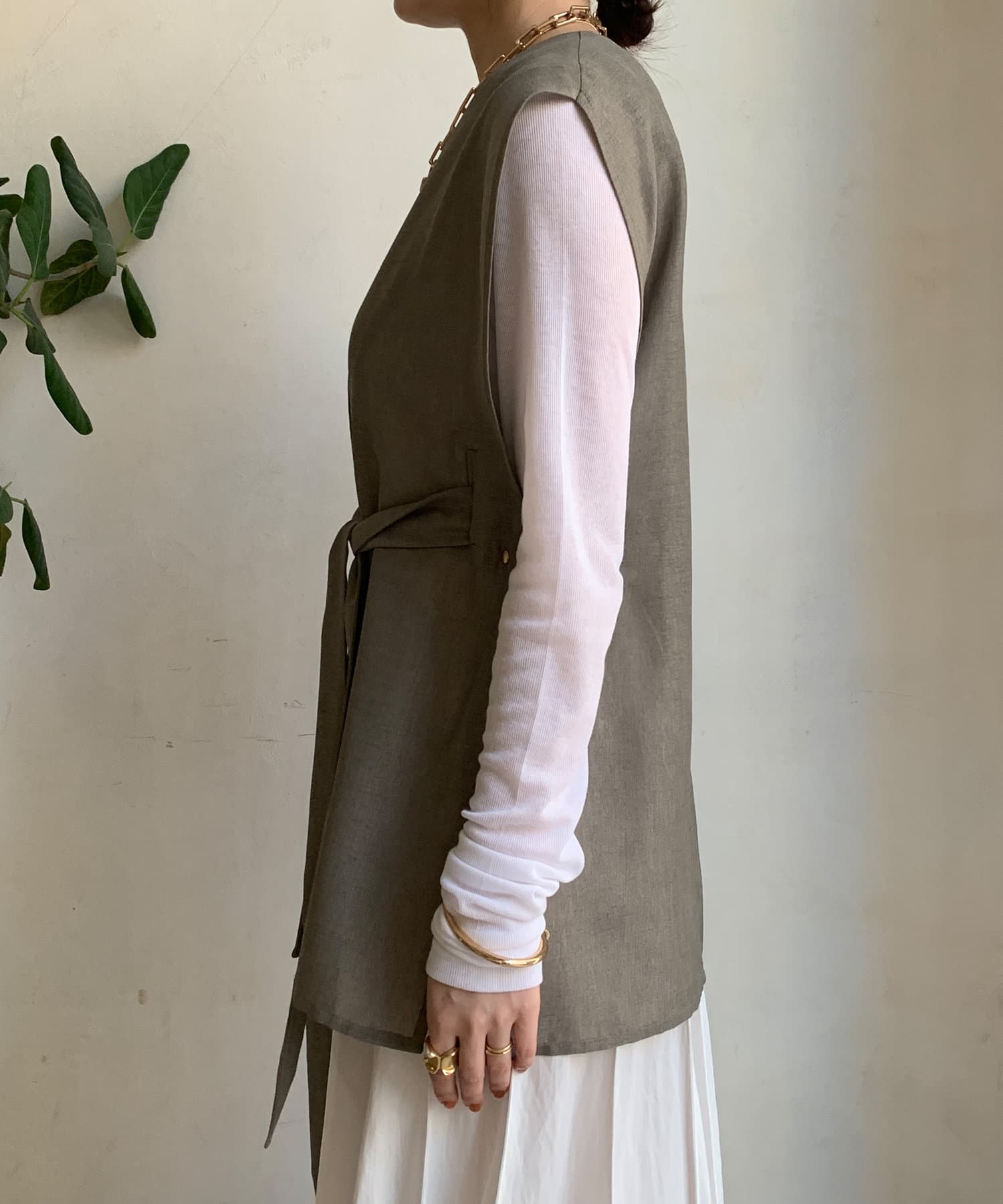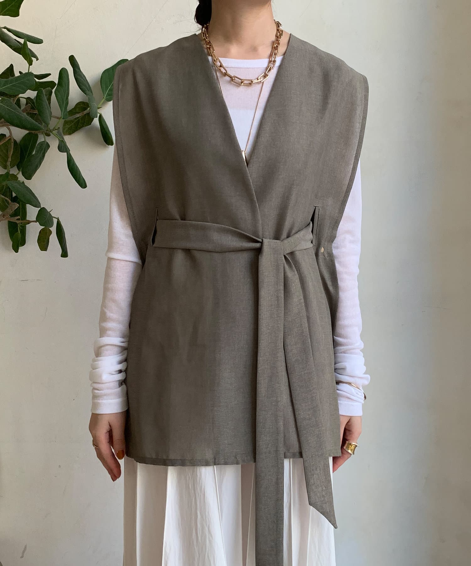 春夏のスタイルに少しマニッシュな雰囲気をプラスできるジレ。