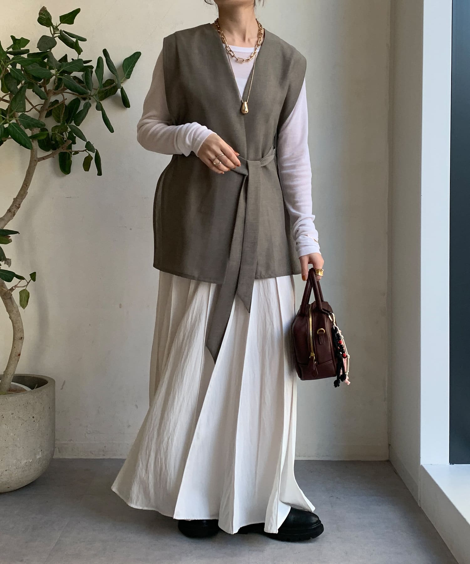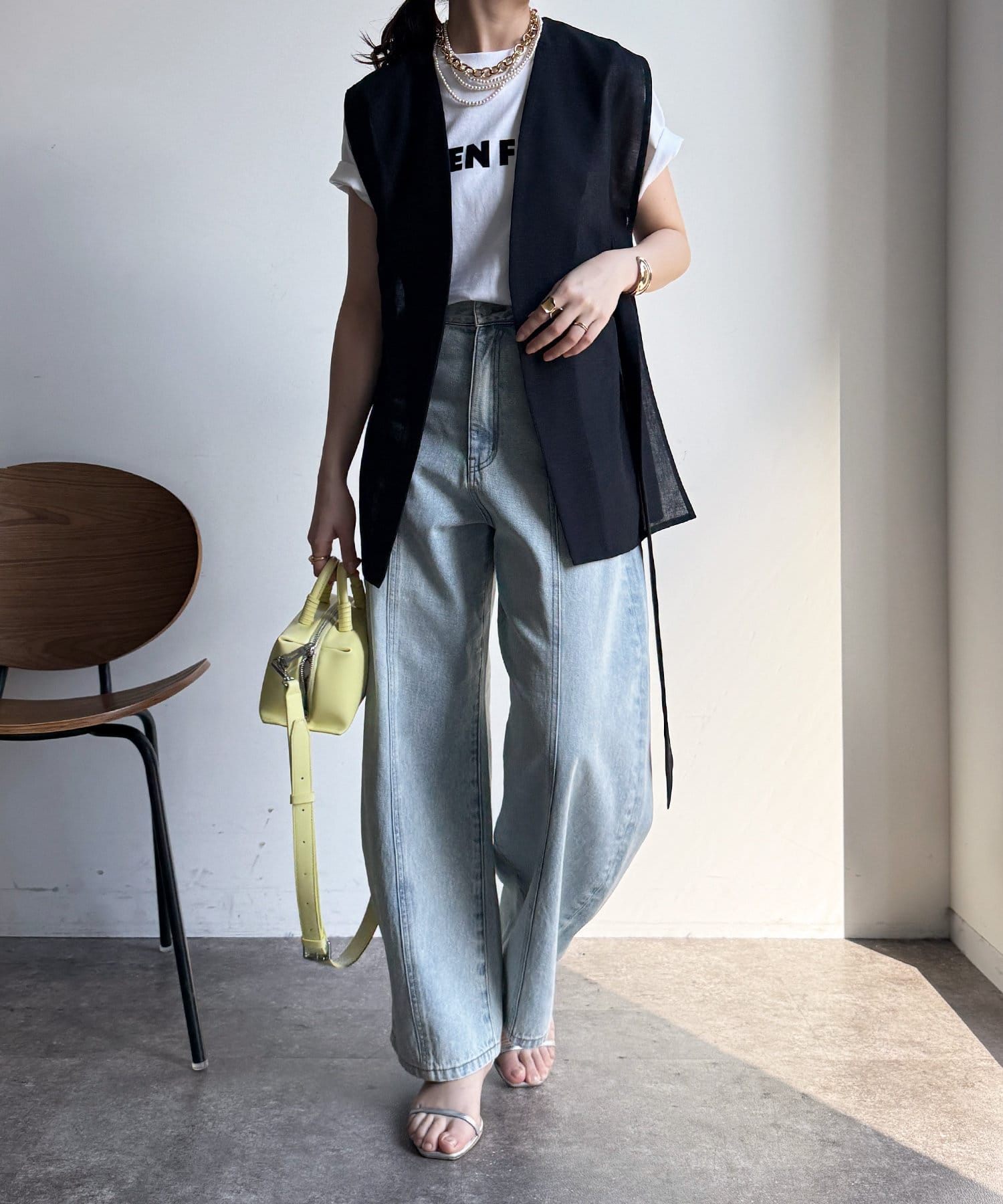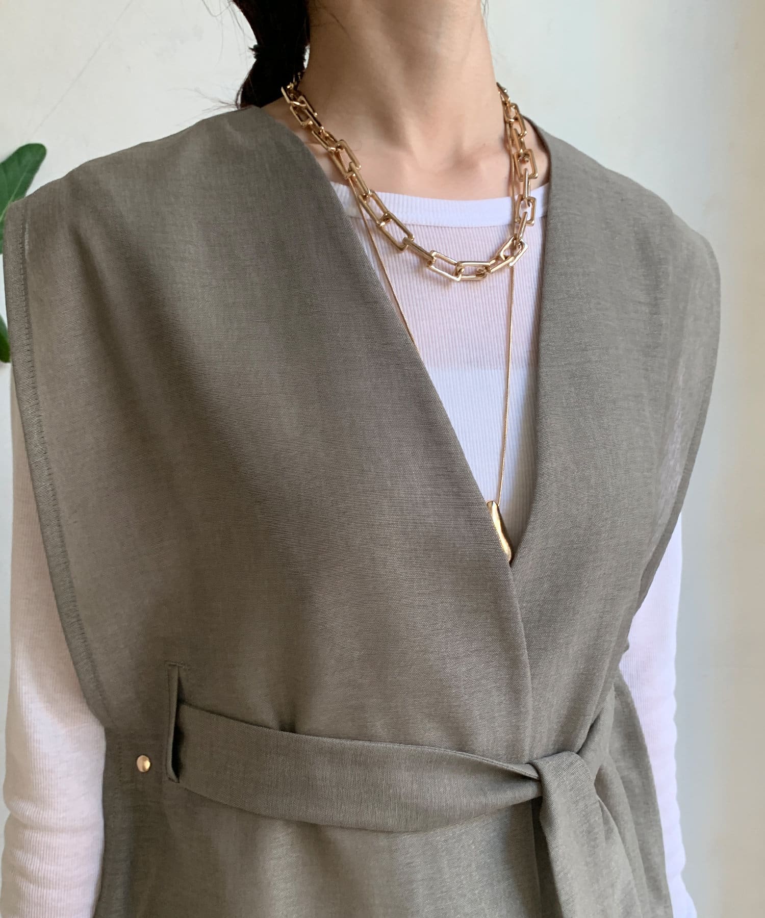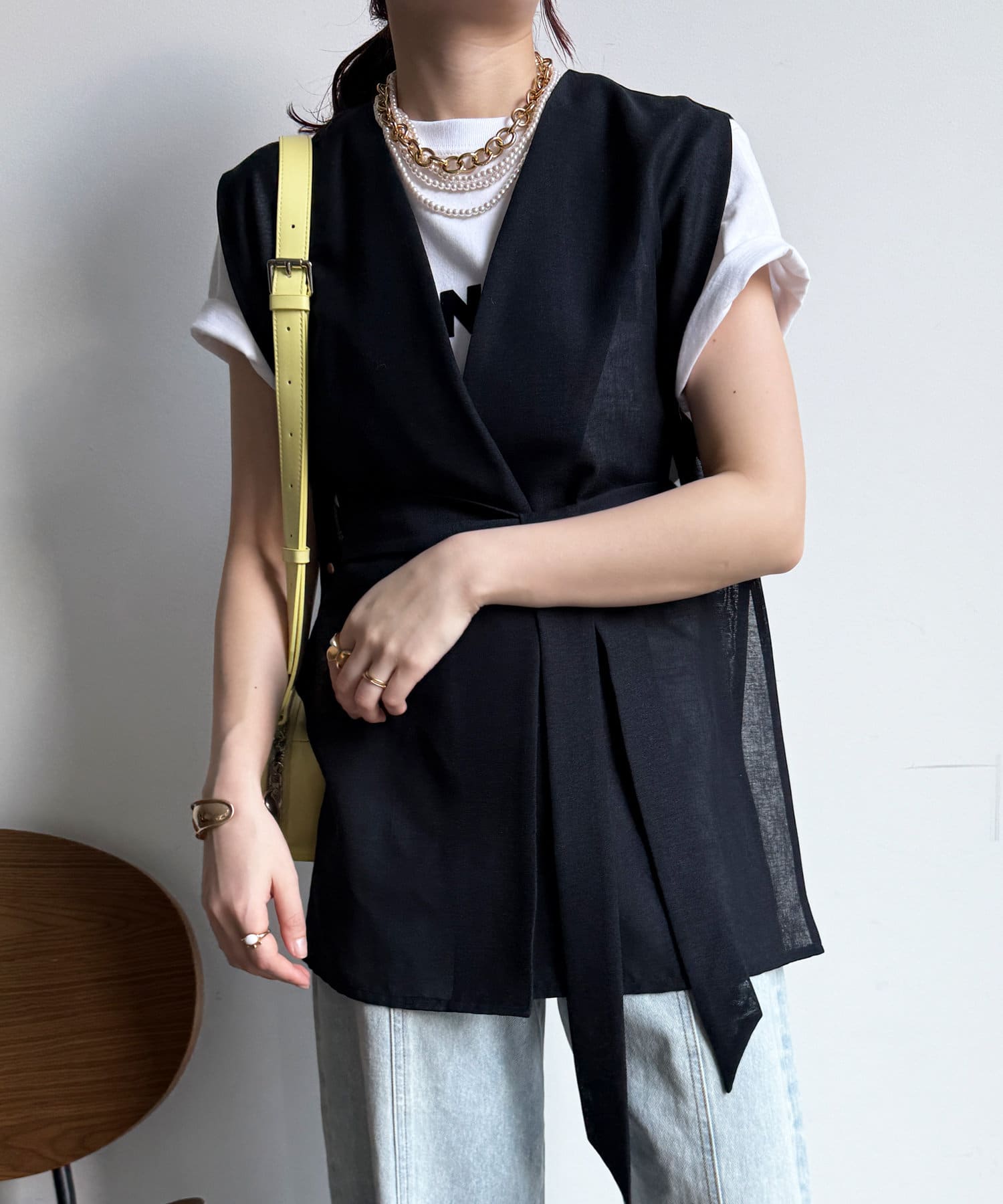 春夏のスタイルに少しマニッシュな雰囲気をプラスできるジレ。