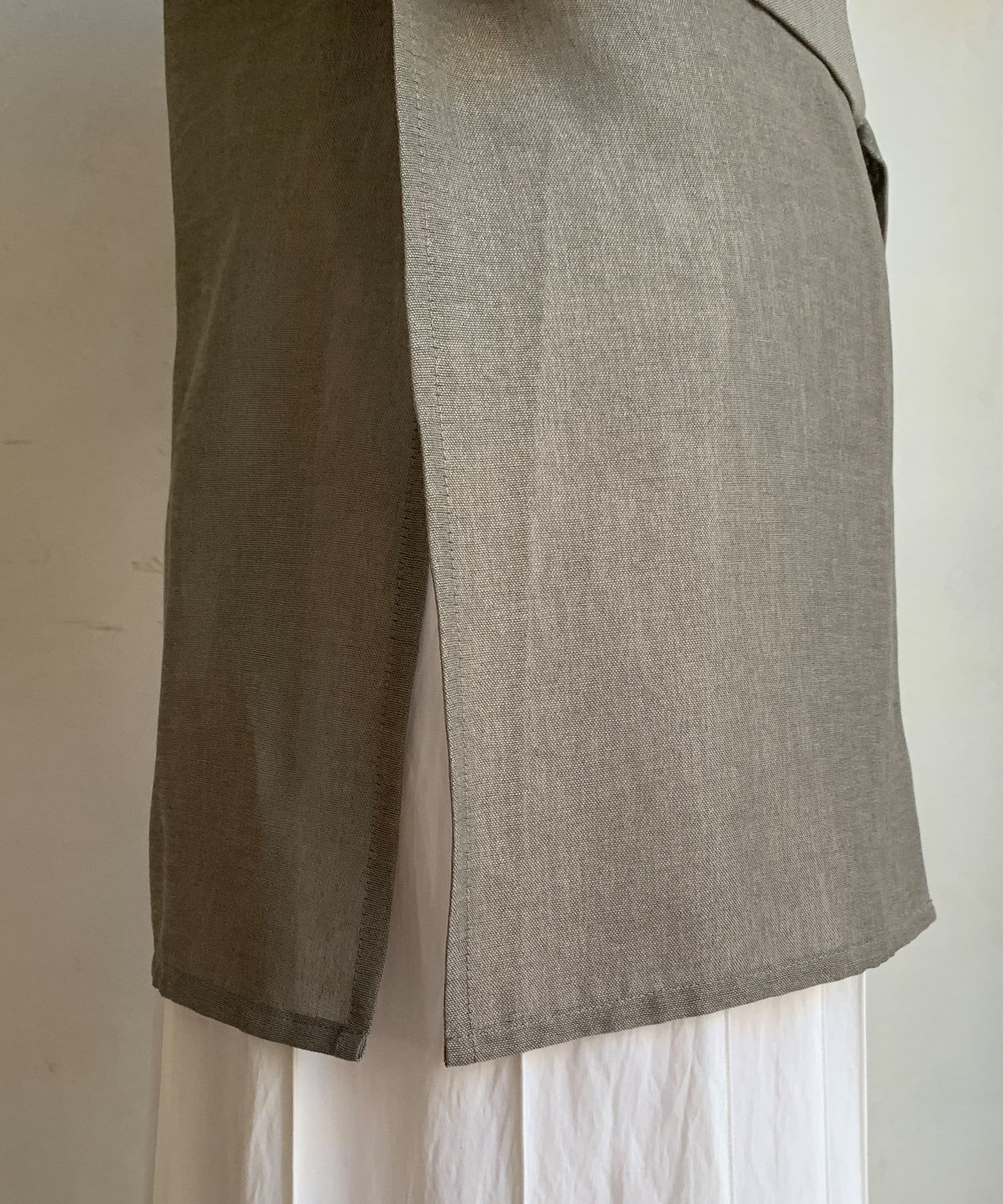 ややハリ感があるためラフすぎず、でもかっちりとしすぎない、細かなメッシュの素材を使用することで、清涼感はありつつも、透けすぎないのが上品な印象です。