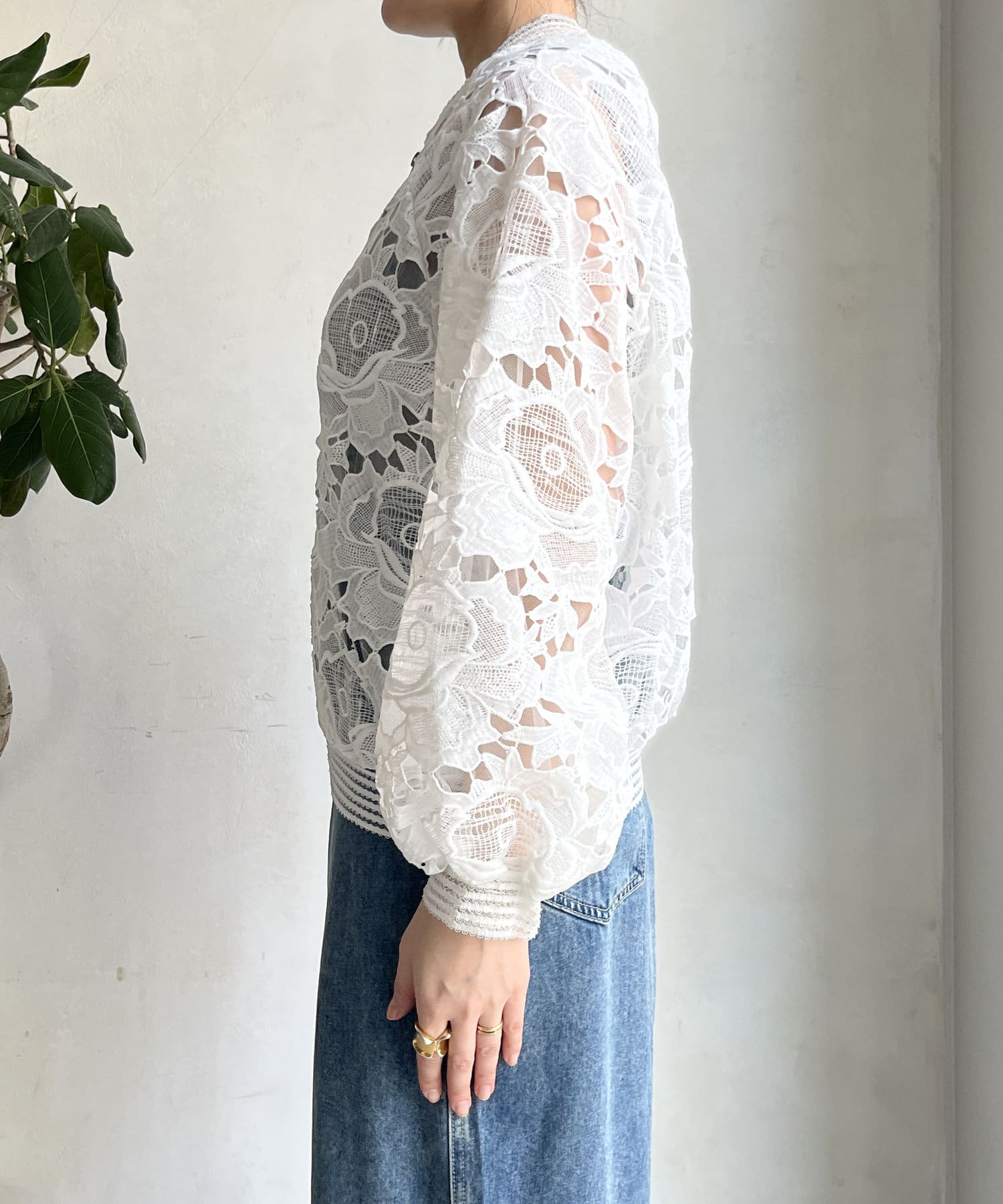 ふんわりとしたお袖に、大柄のレースデザインが甘すぎず大人の女性にぴったり!