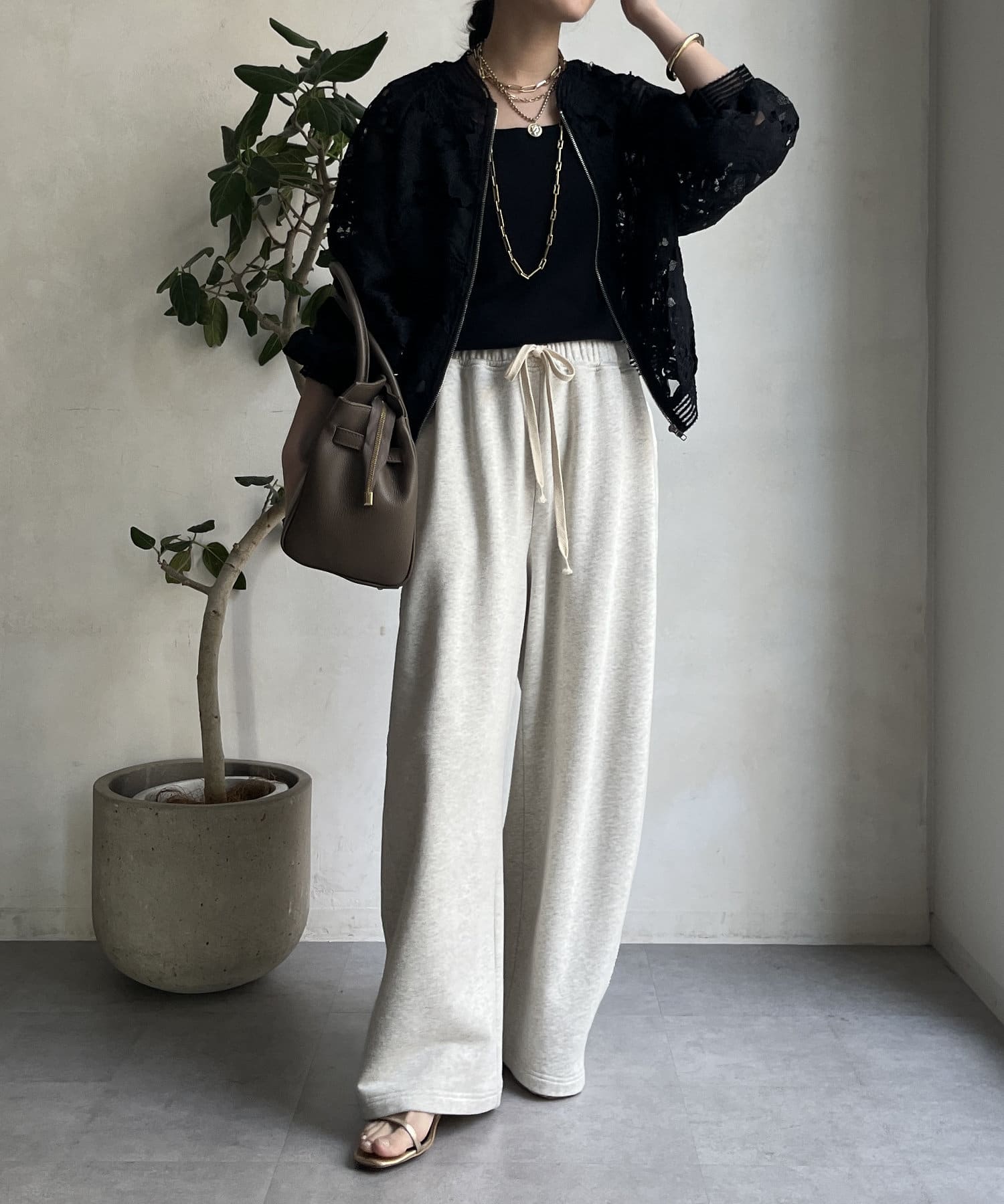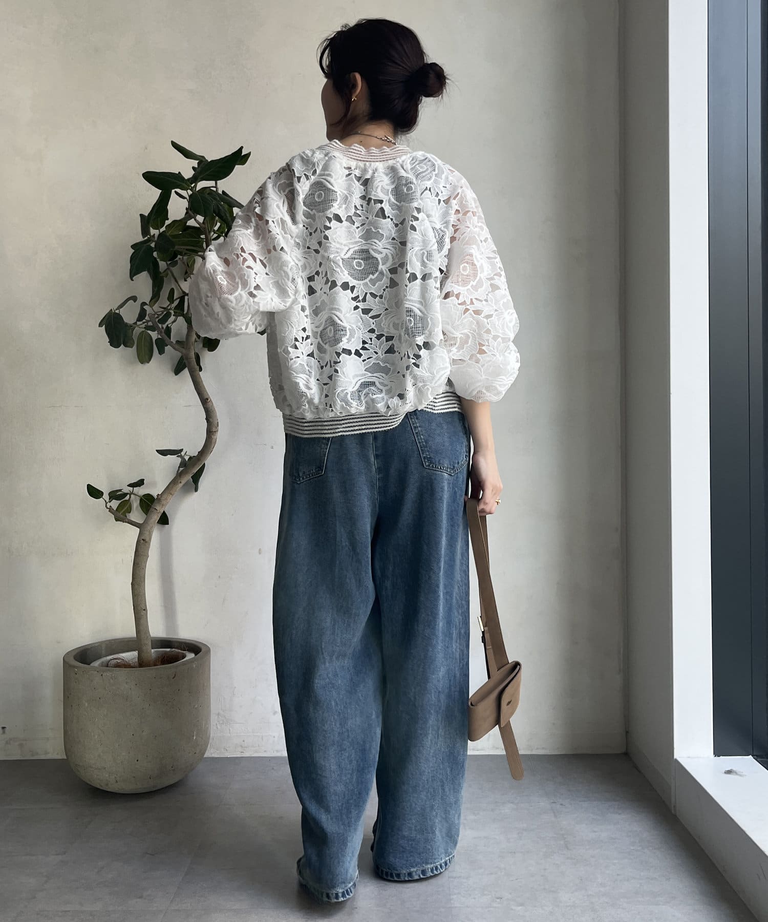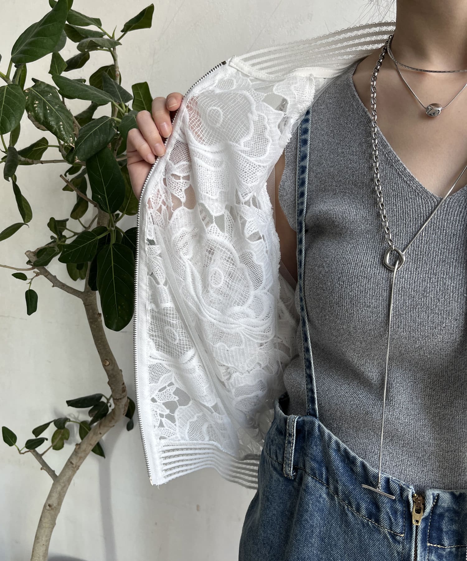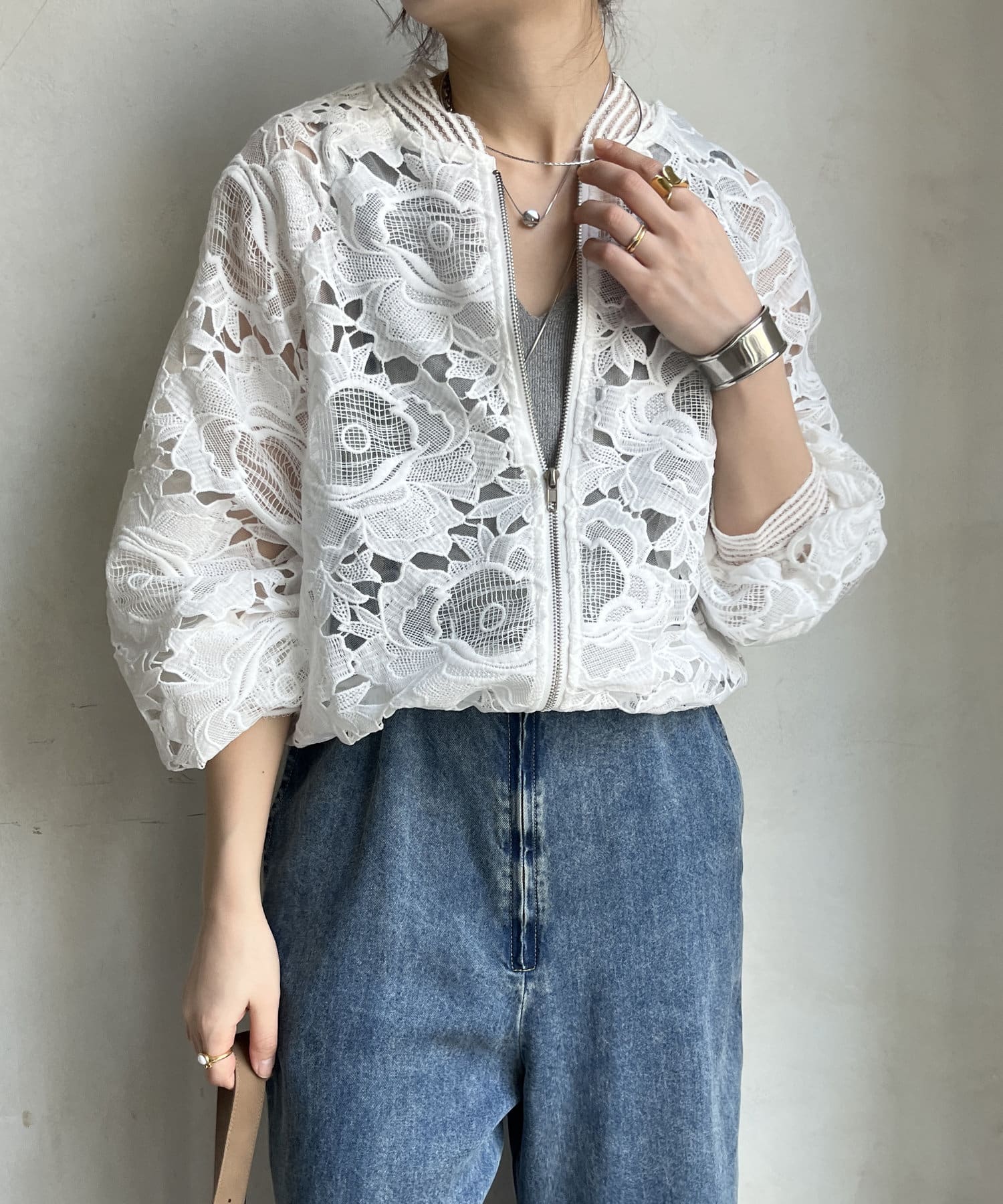 カジュアルなブルゾンディティールですが、レースデザインが綺麗めスタイルにも馴染むので、