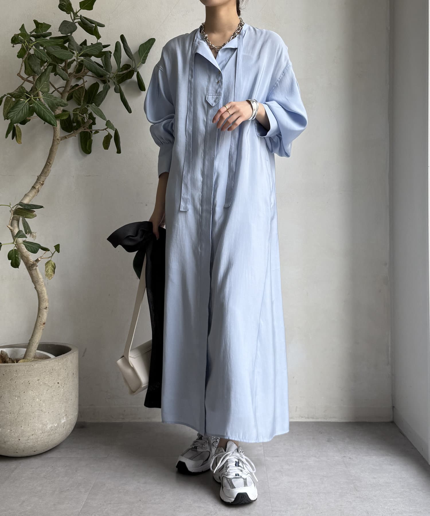 ボウタイのデザインだけど甘さは控えめで、日頃のスタイルに馴染みやすいのがうれしいポイント。