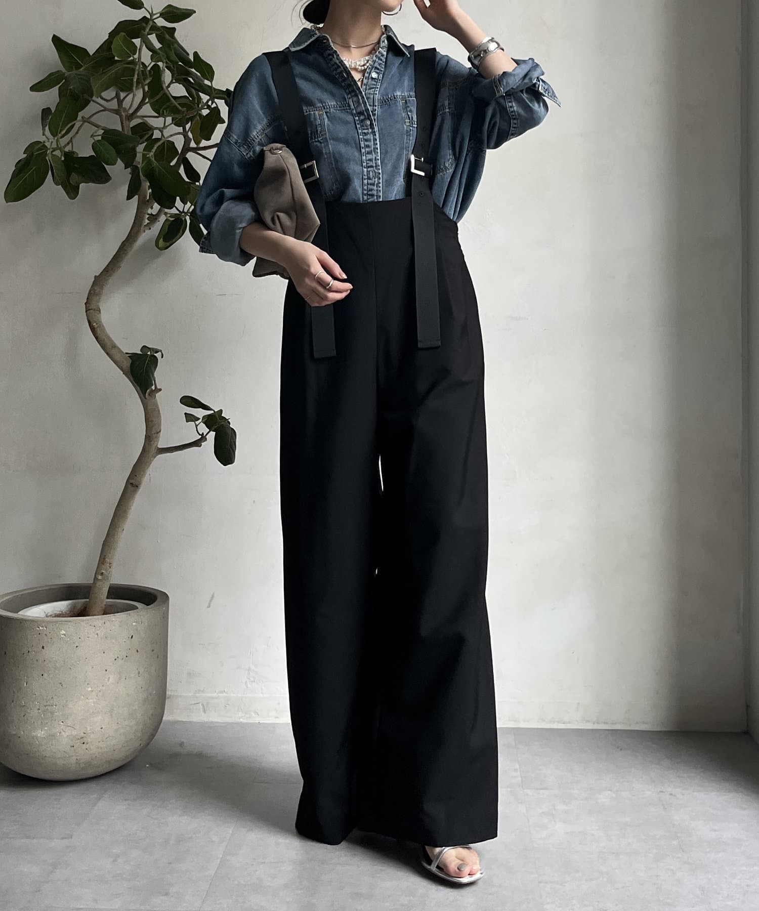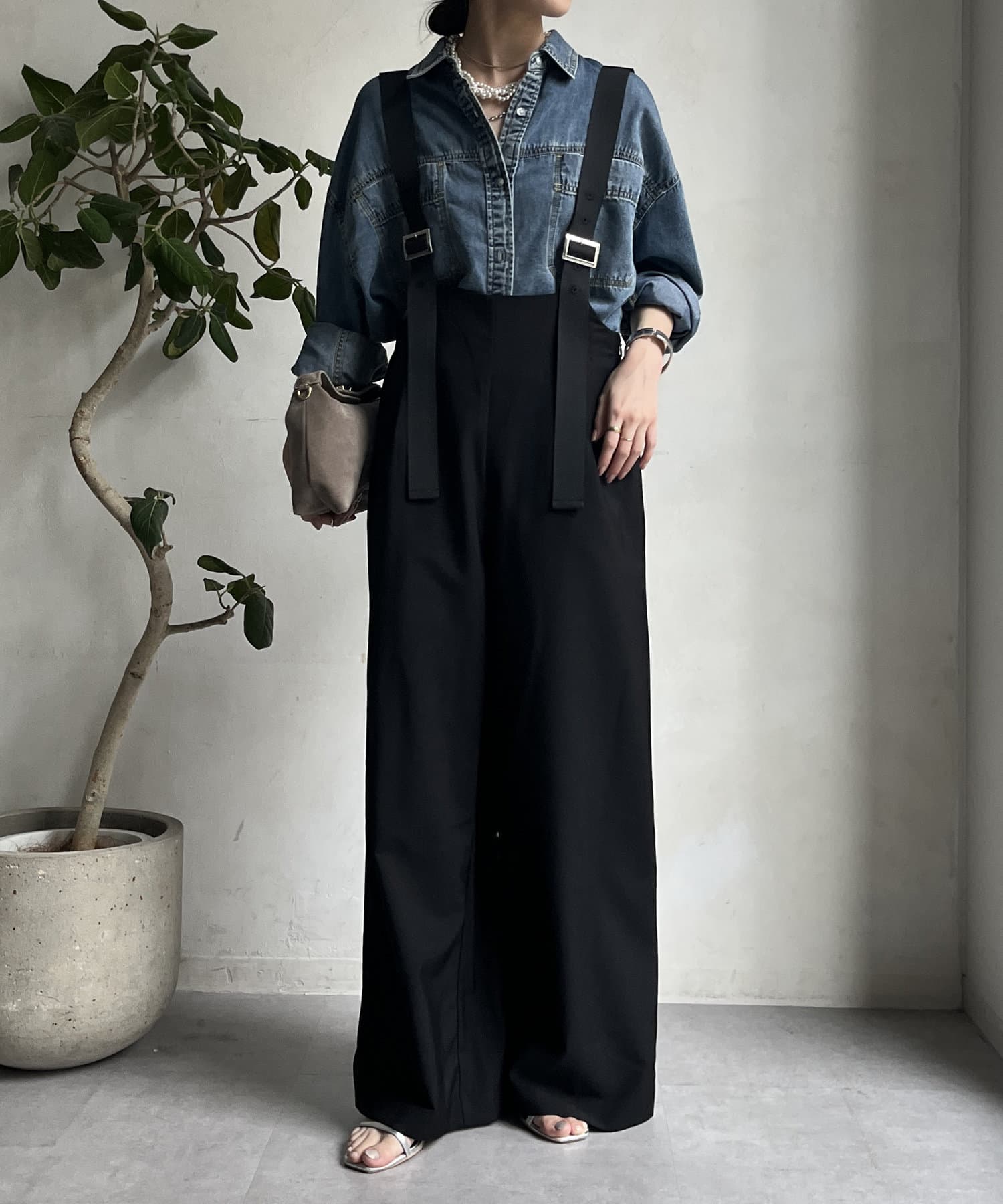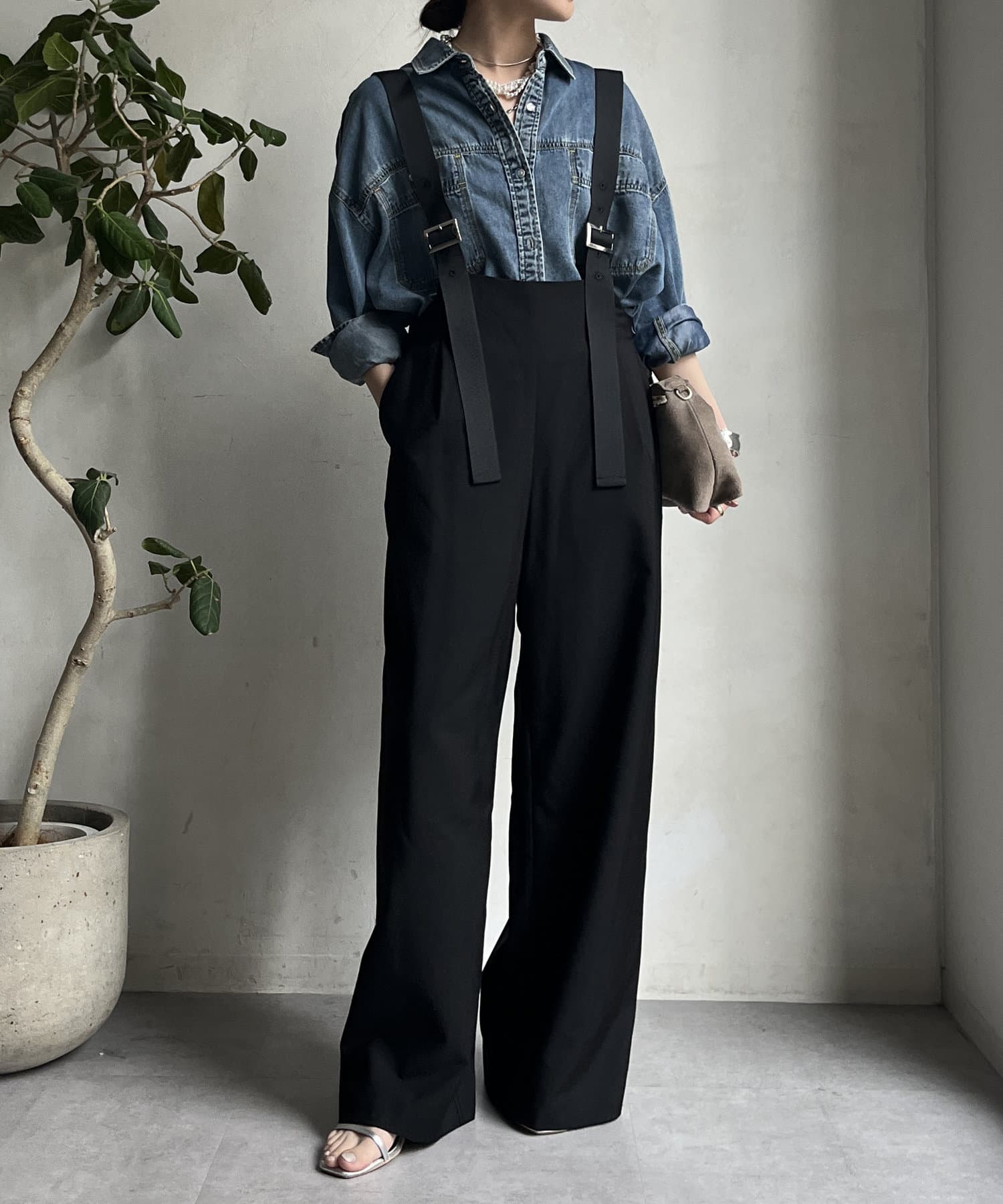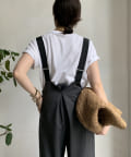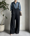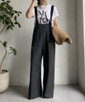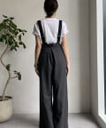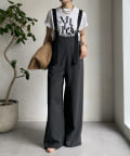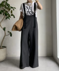 ワイドシルエットが印象的なサロペット。