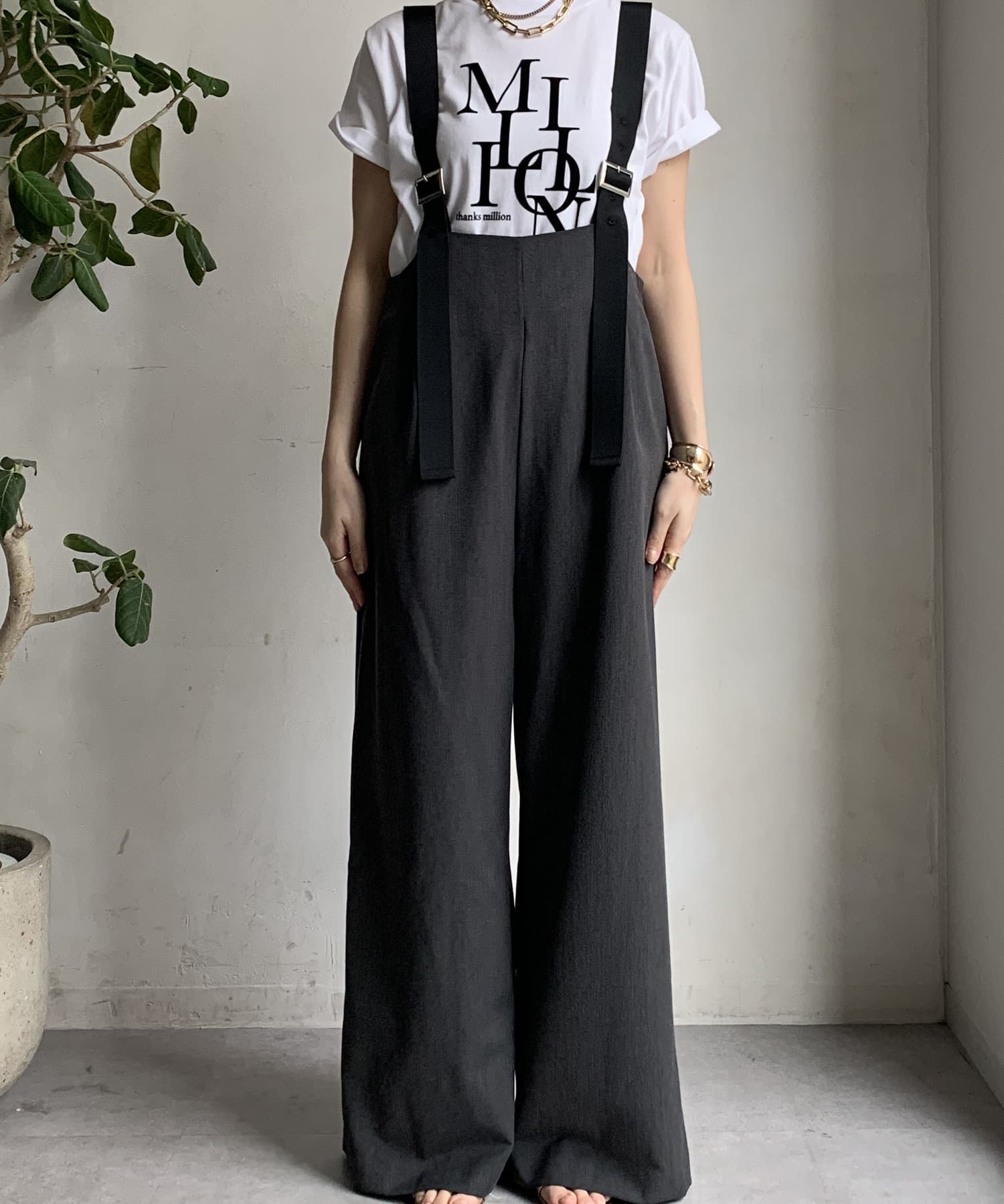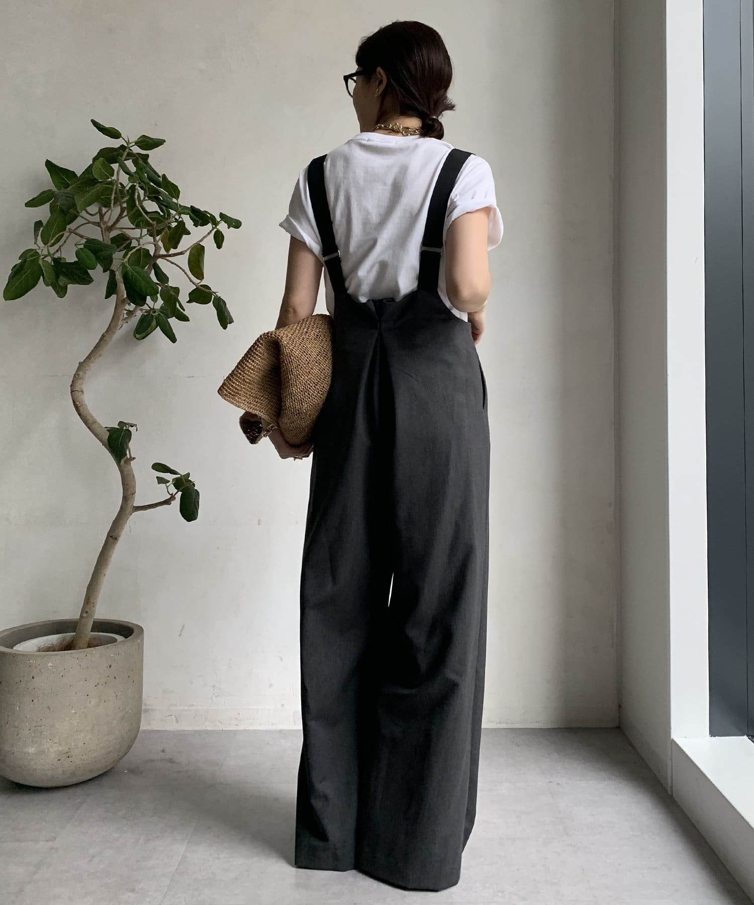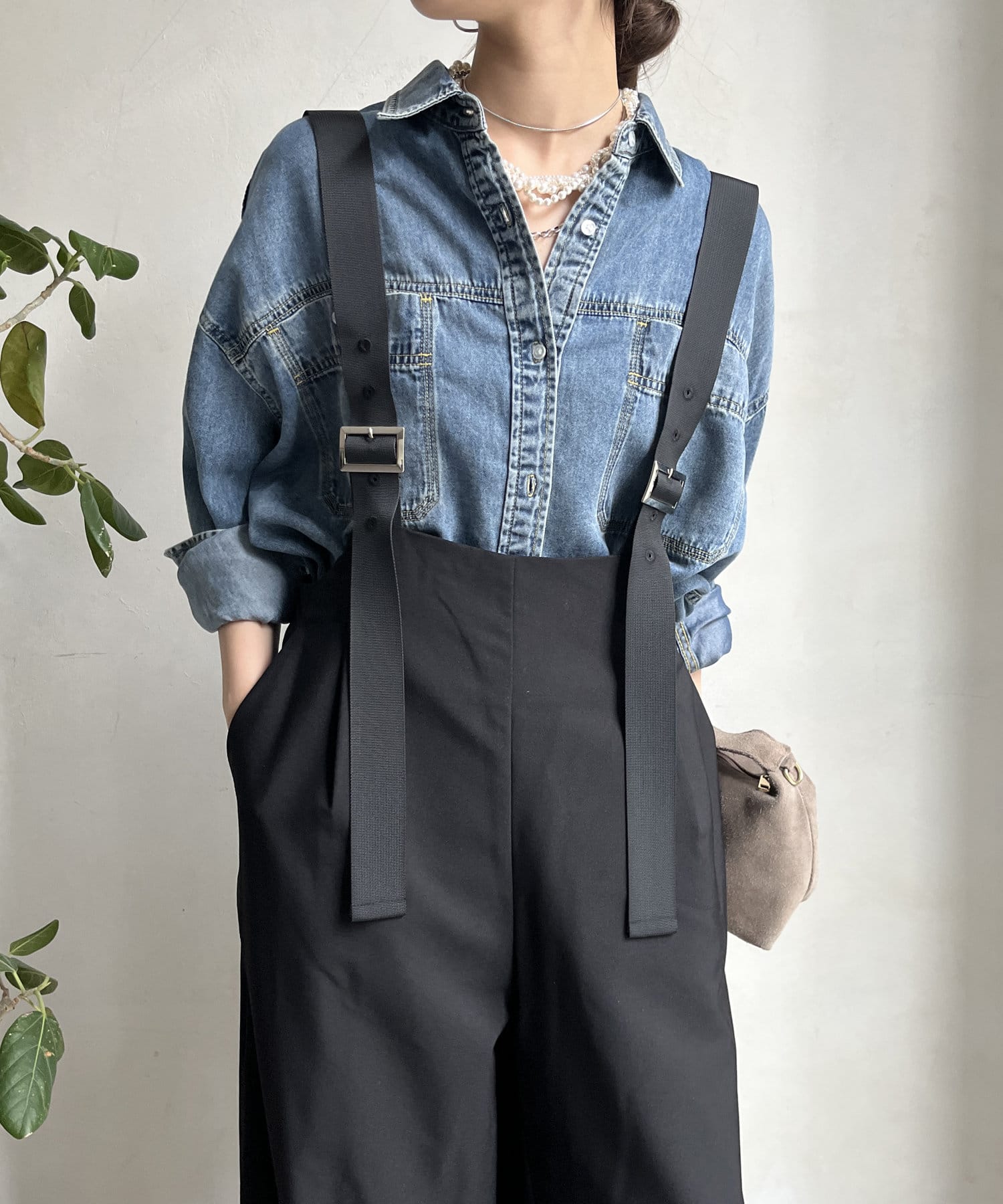 ワイドシルエットが印象的なサロペット。