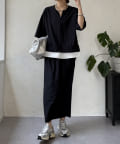 リラクシーな着心地でこのアイテム1つでコーディネートが完成する嬉しいアイテムですよ!