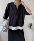 裾部分にはシャツをレイヤードしたように見える別布が施されているのがポイント◎