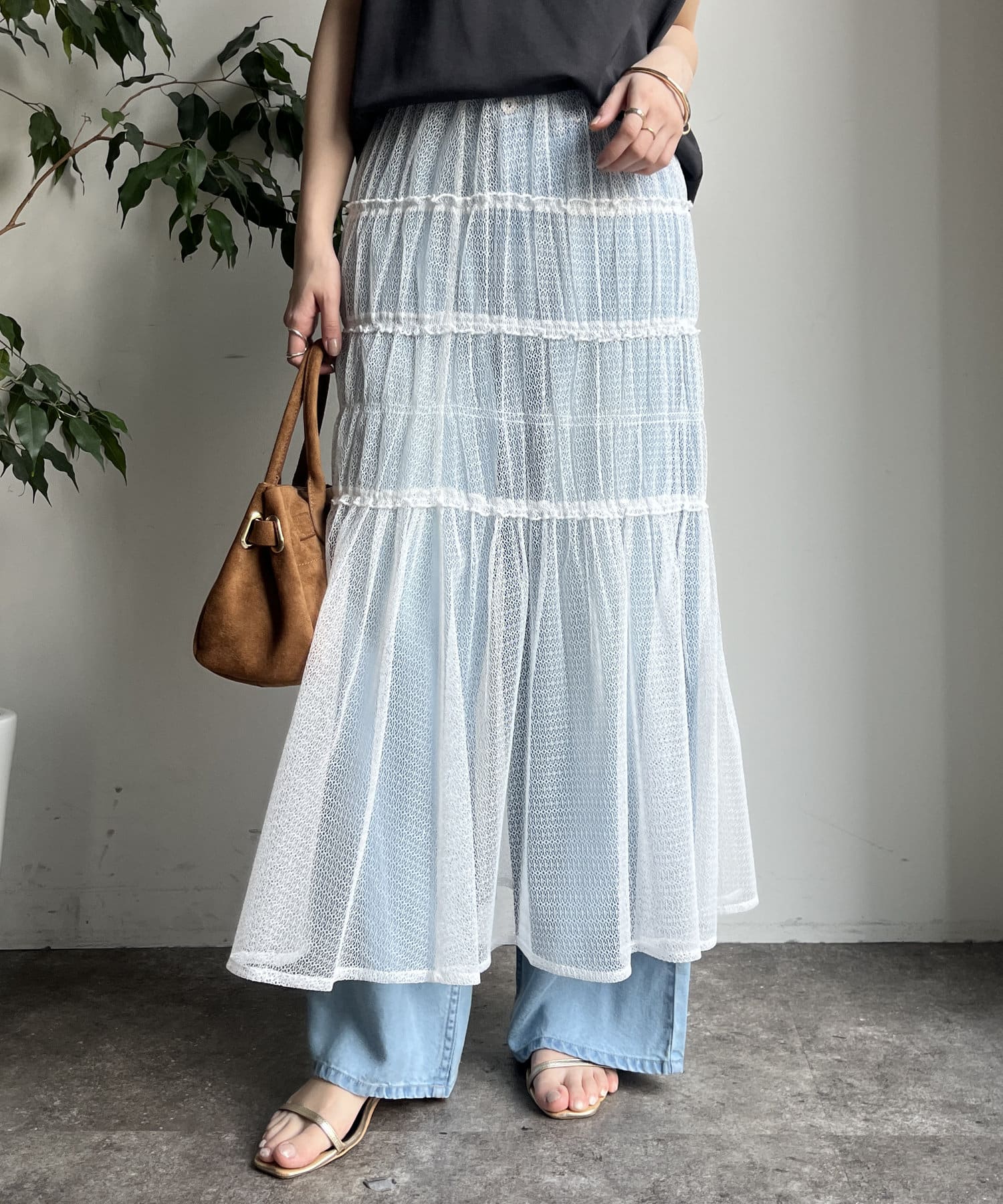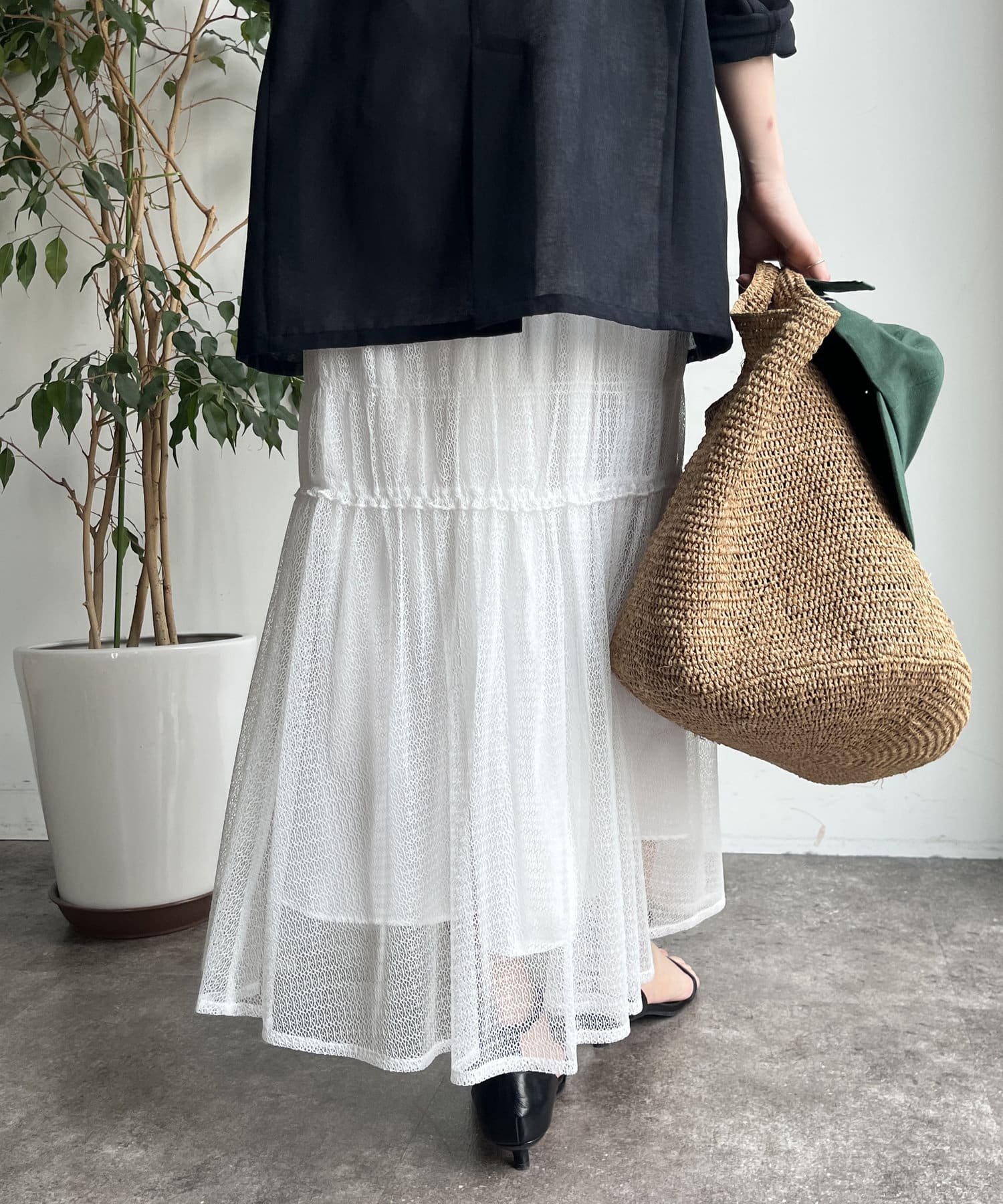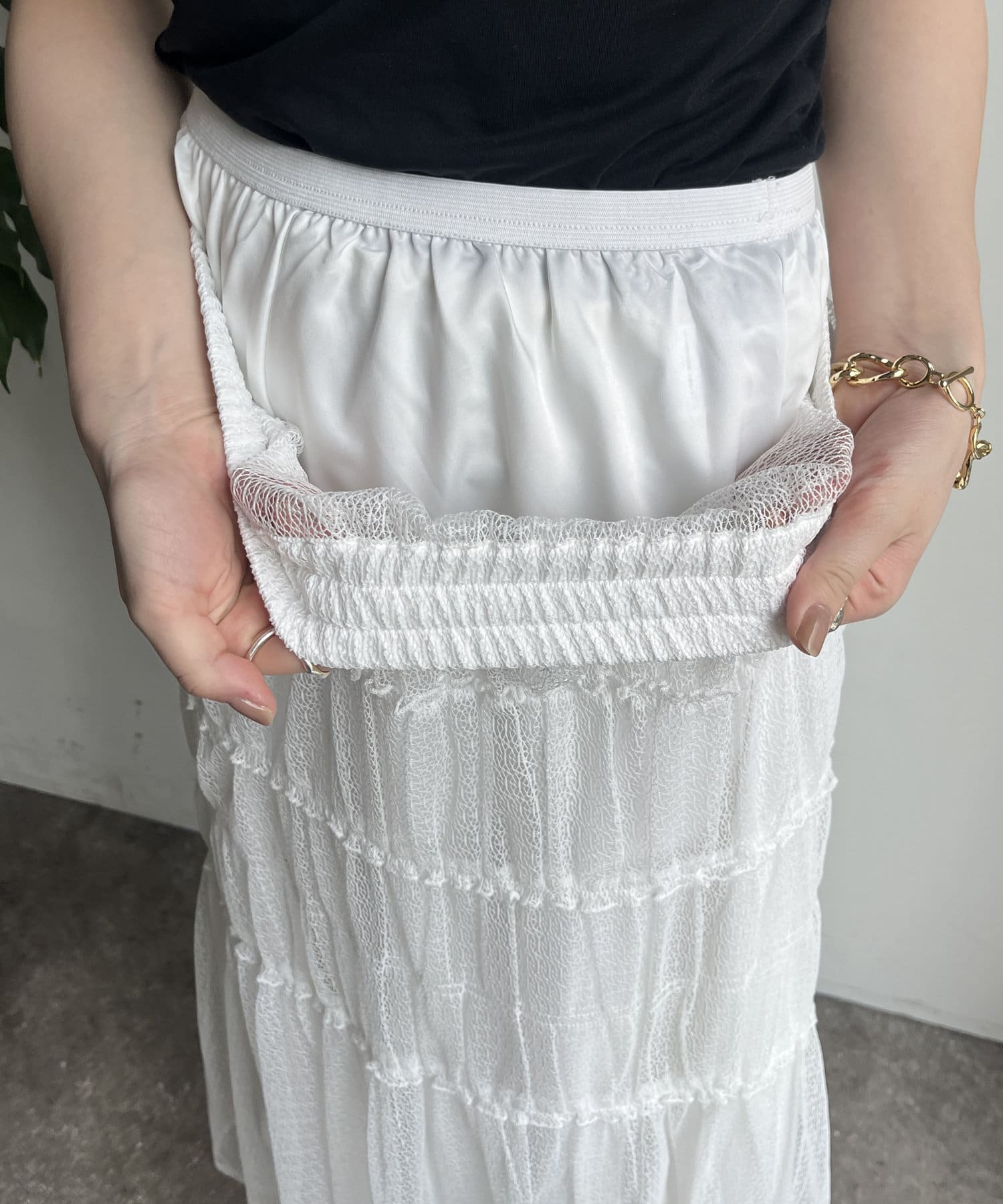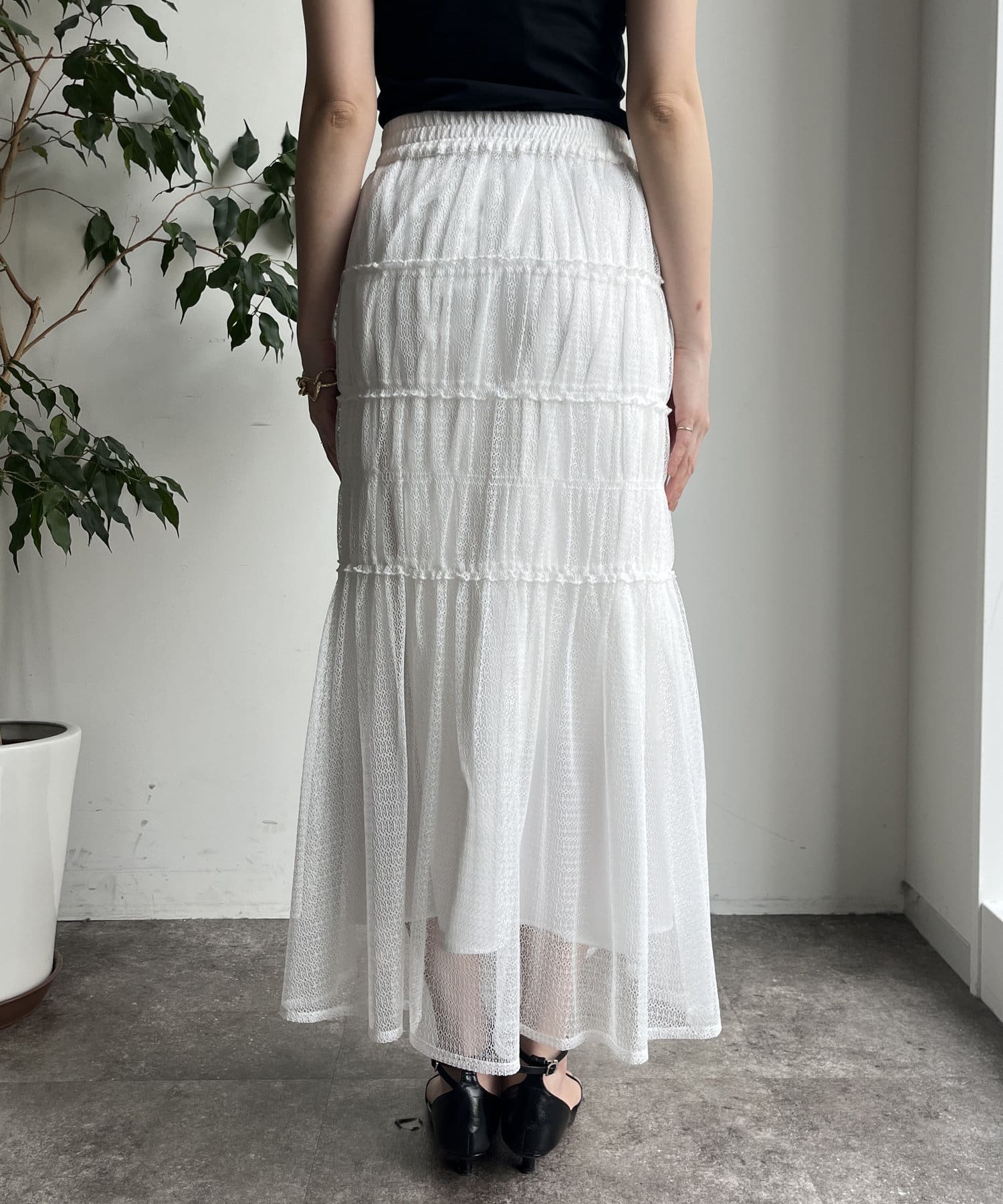 シャーリング×レースが新鮮な印象を与えてくれるスカート。