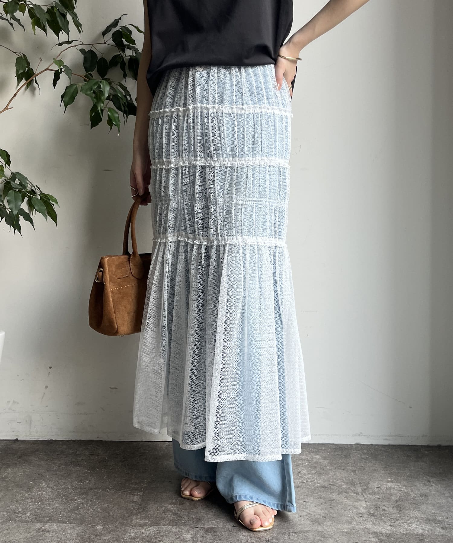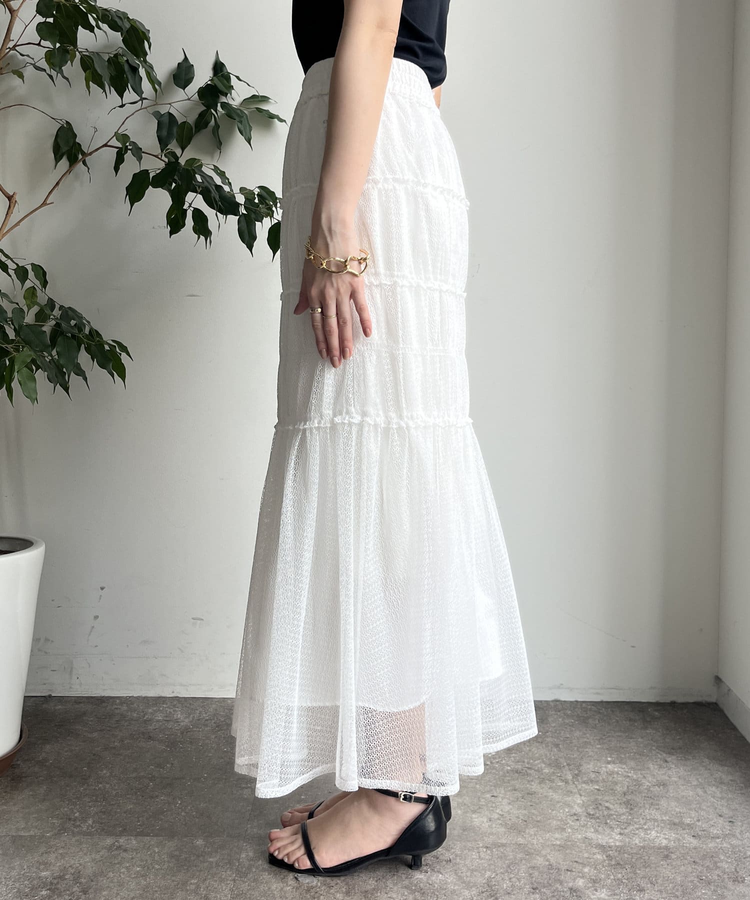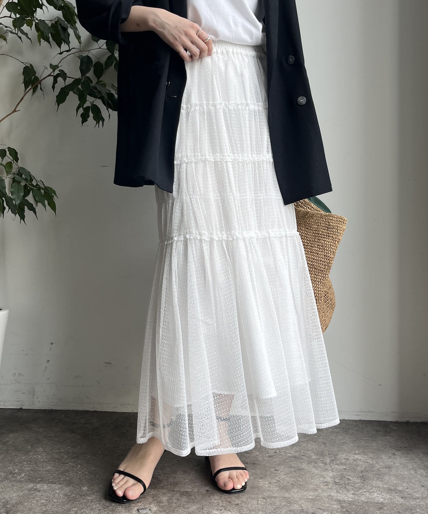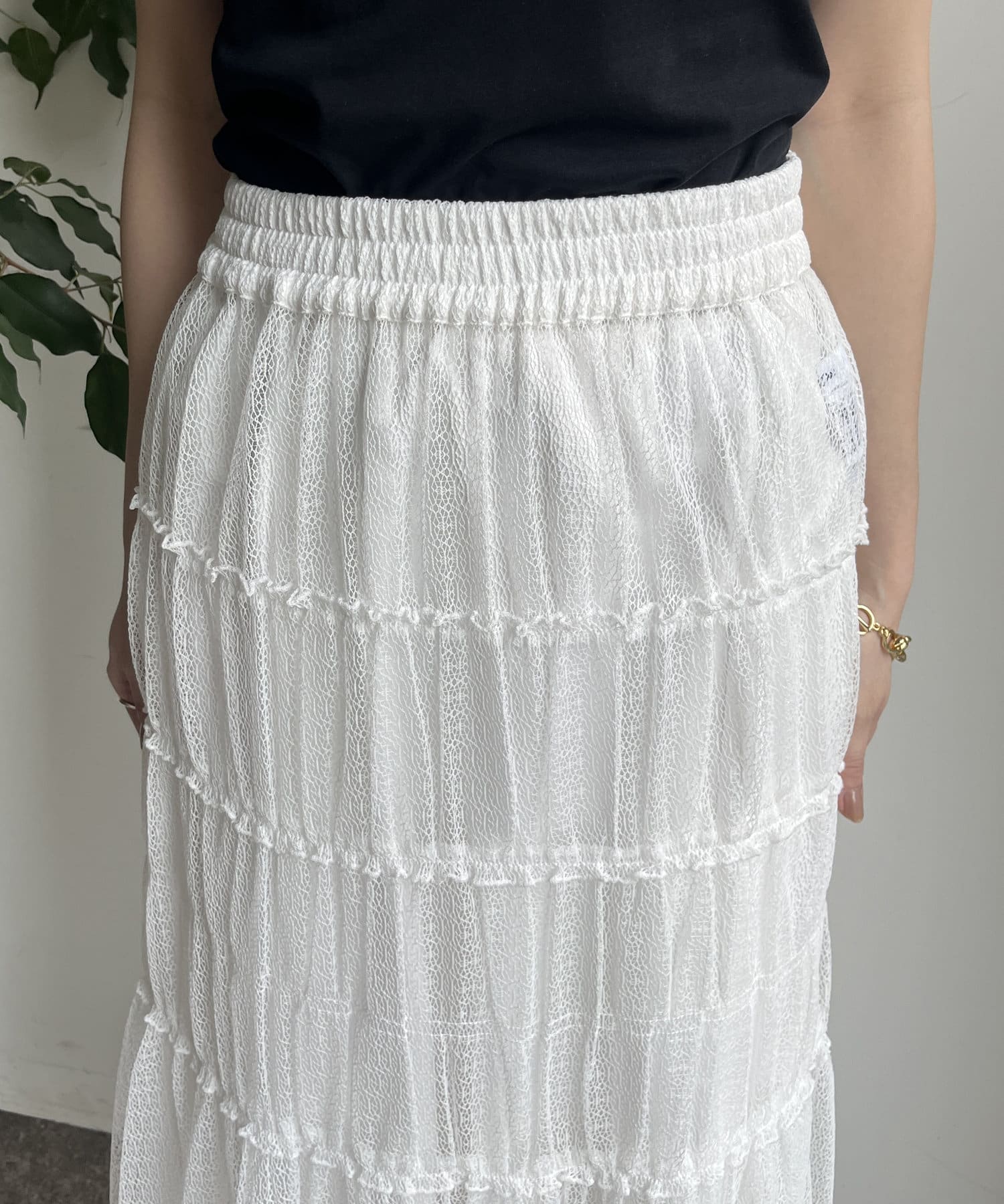 シャーリング×レースが新鮮な印象を与えてくれるスカート。