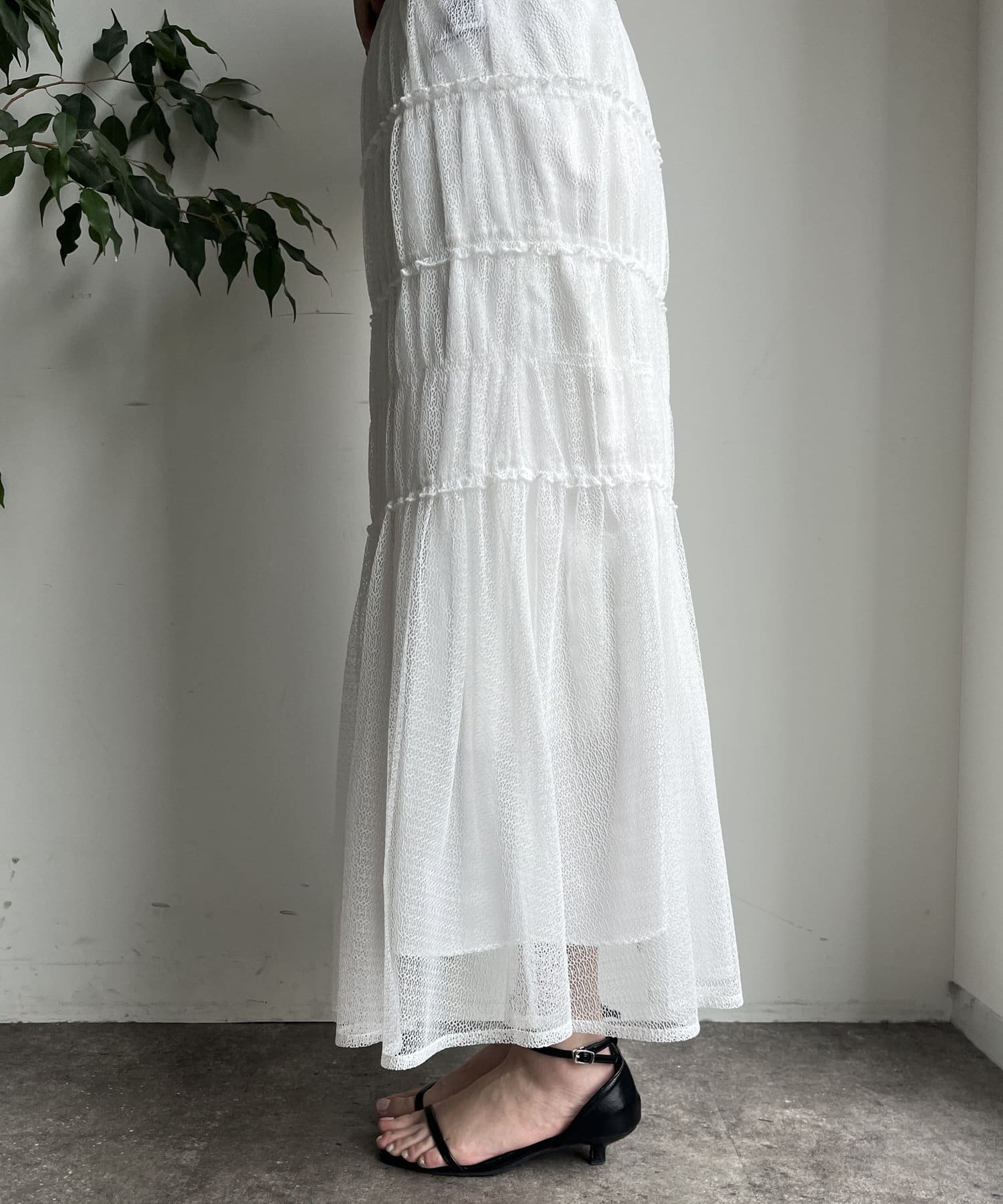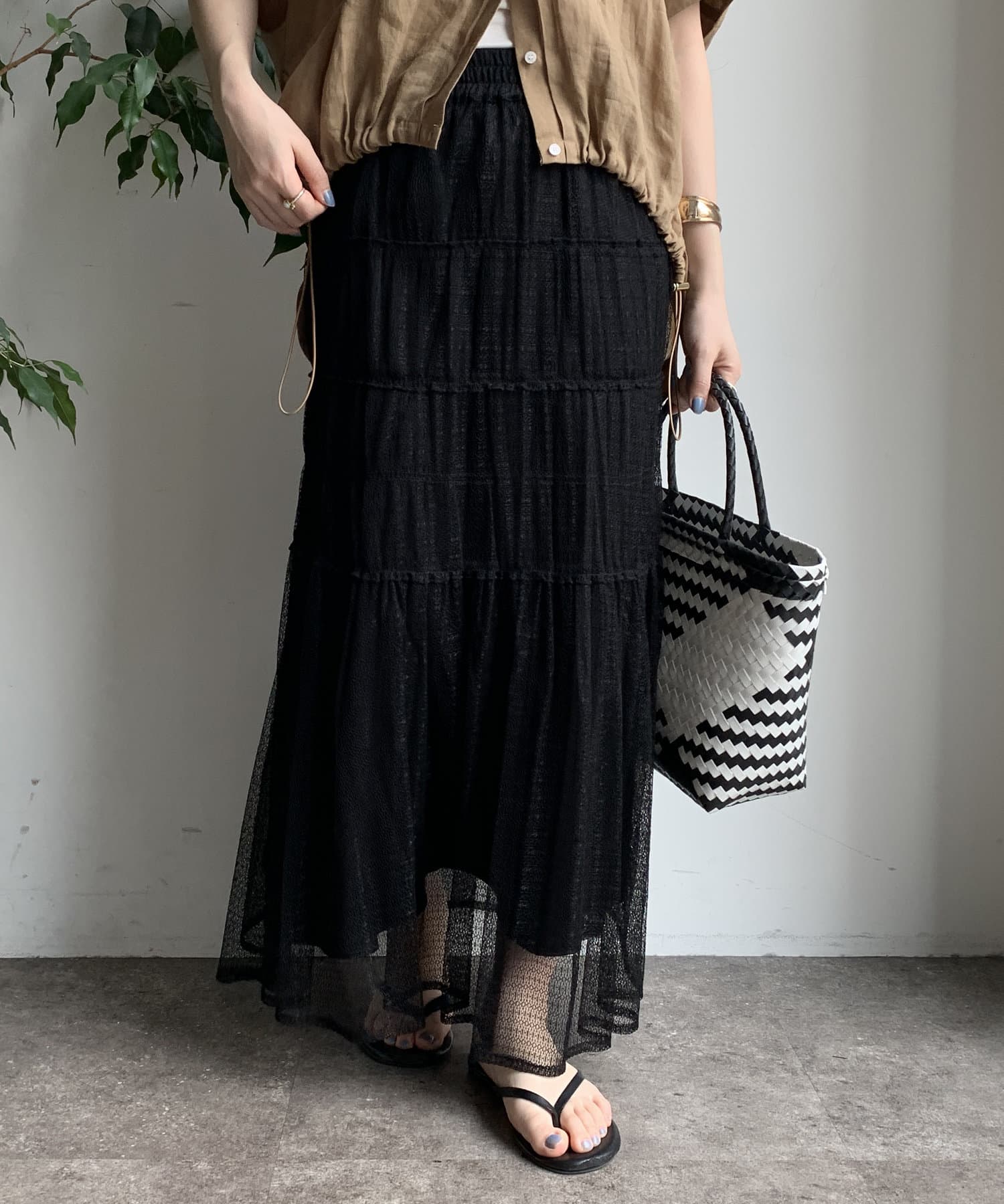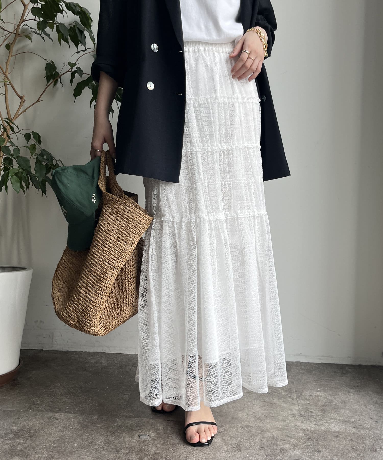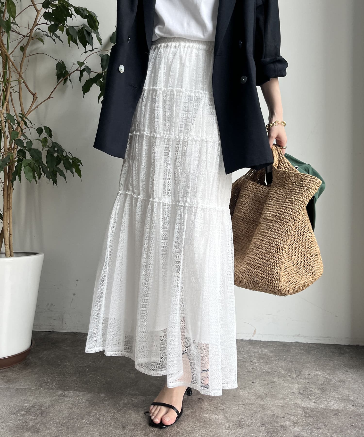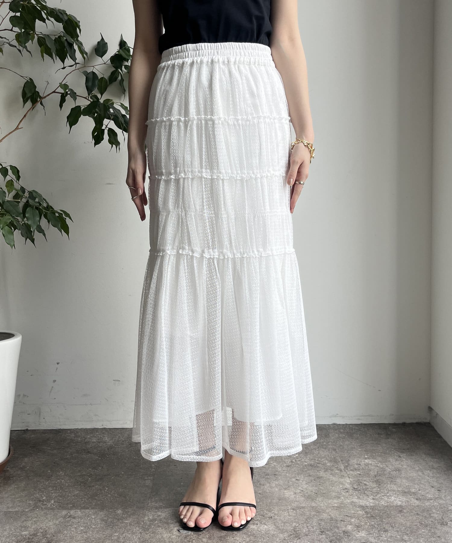 シャーリング×レースが新鮮な印象を与えてくれるスカート。