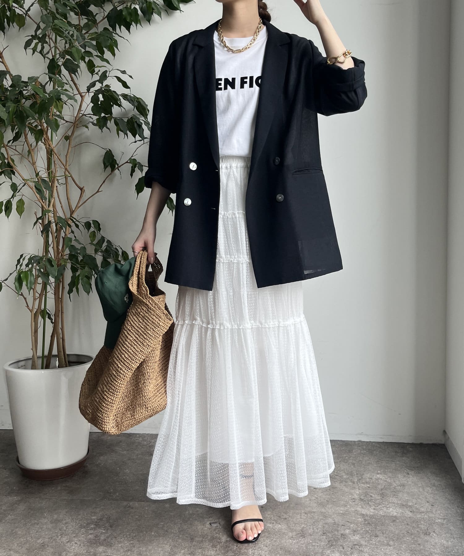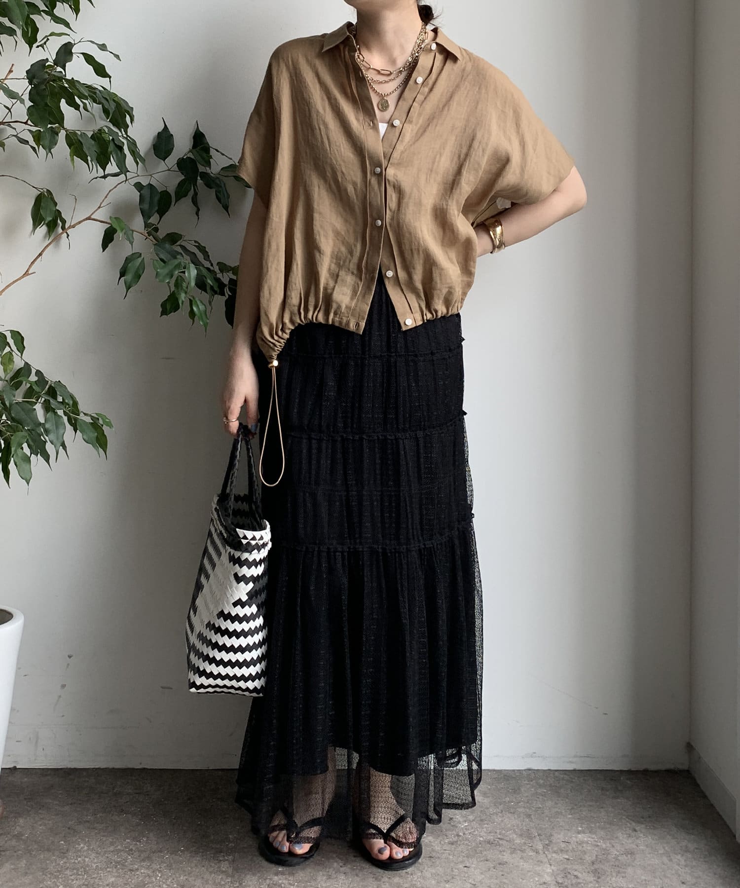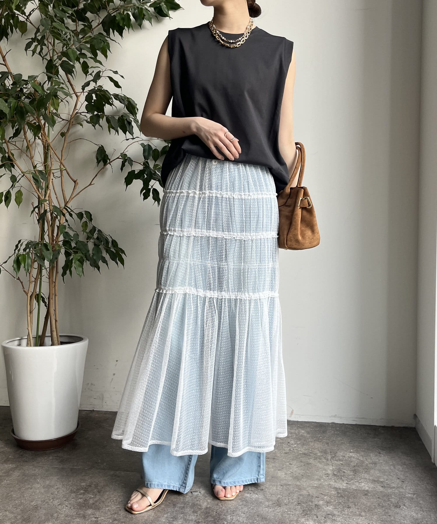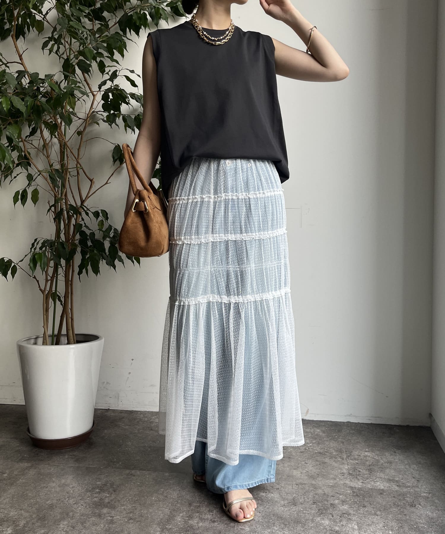 シャーリング×レースが新鮮な印象を与えてくれるスカート。