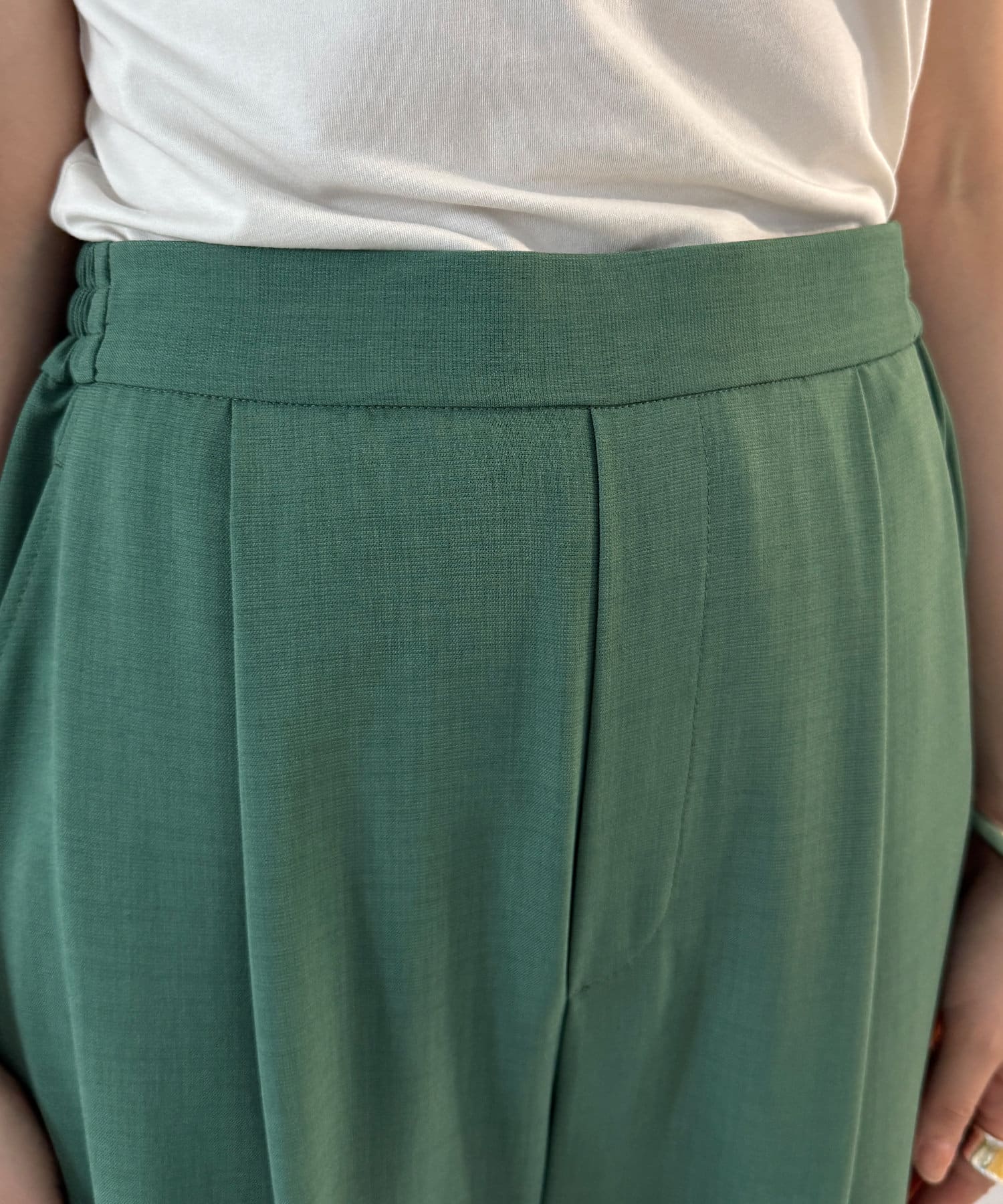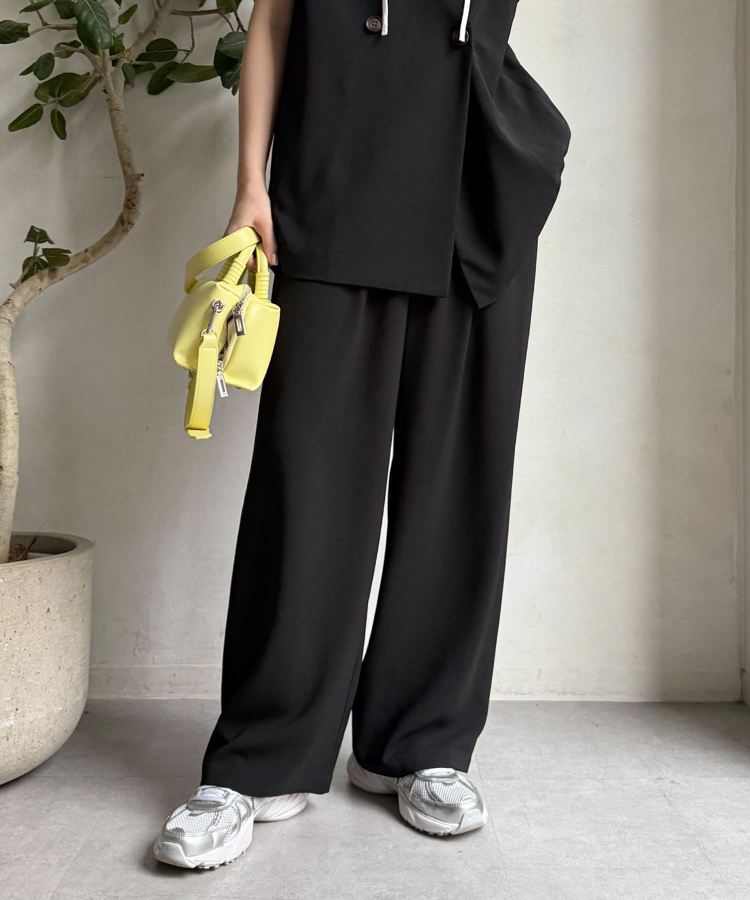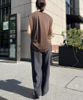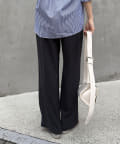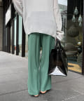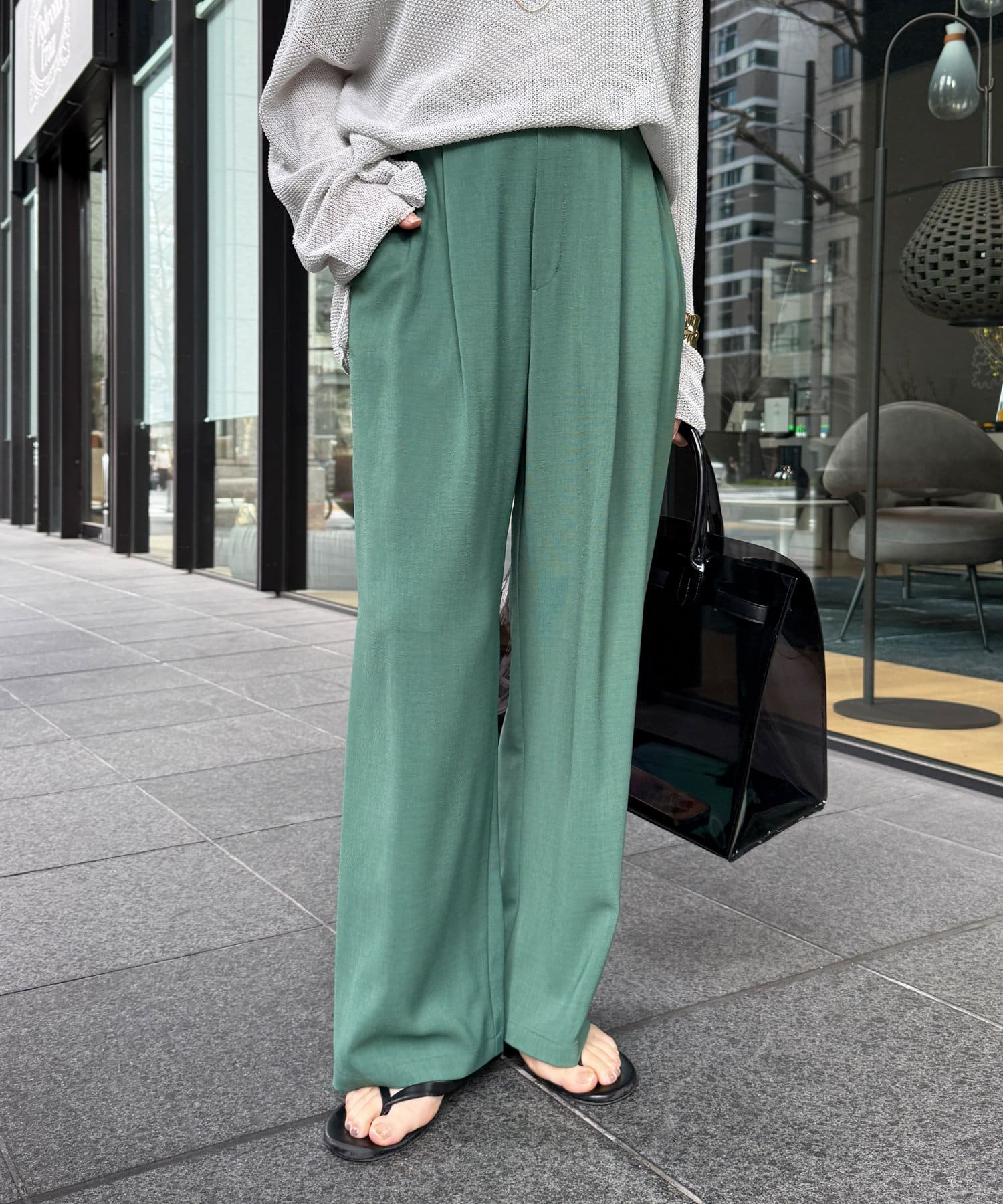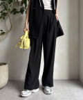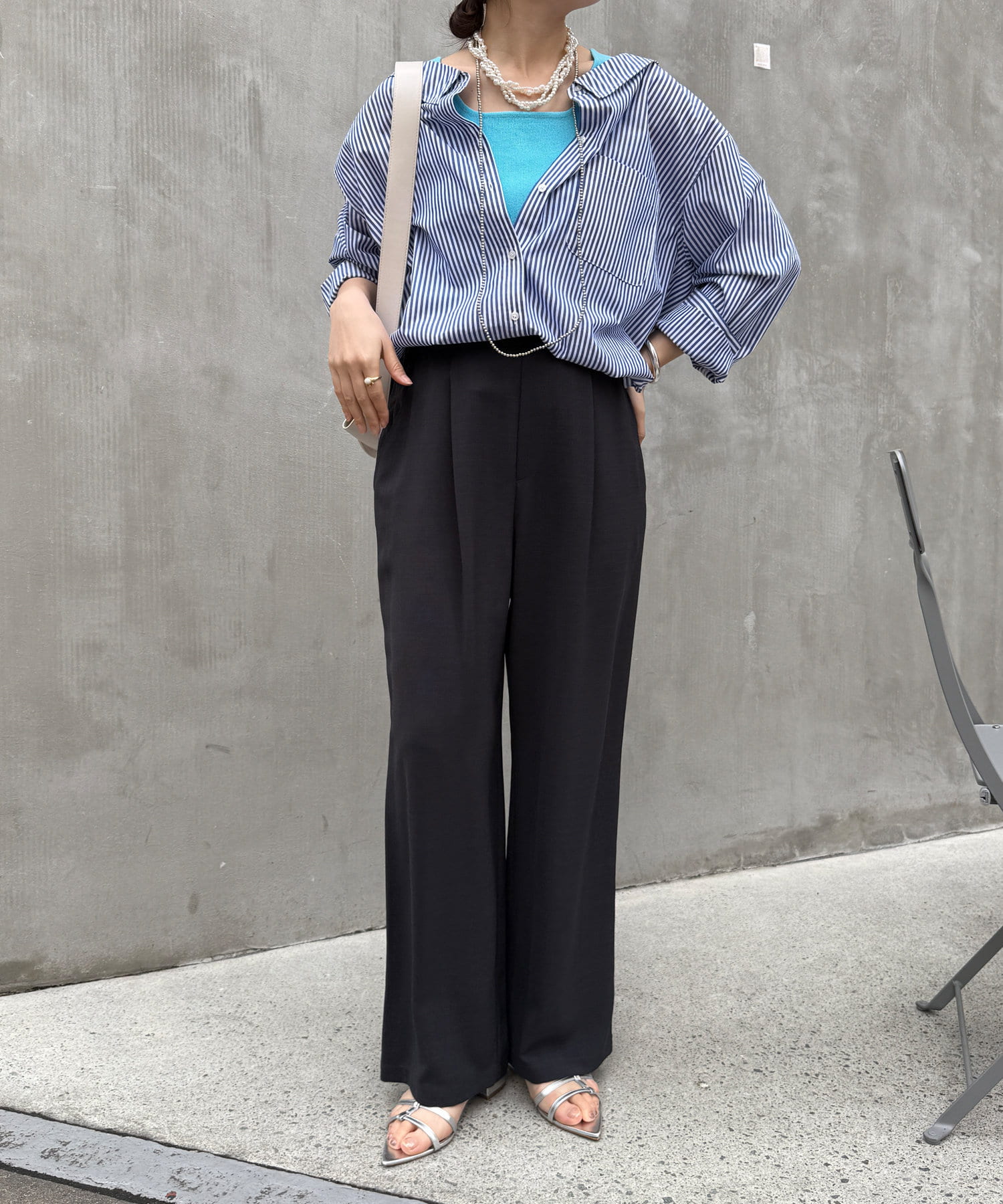 ワイドなシルエットは、脚のラインを拾わずイージー。