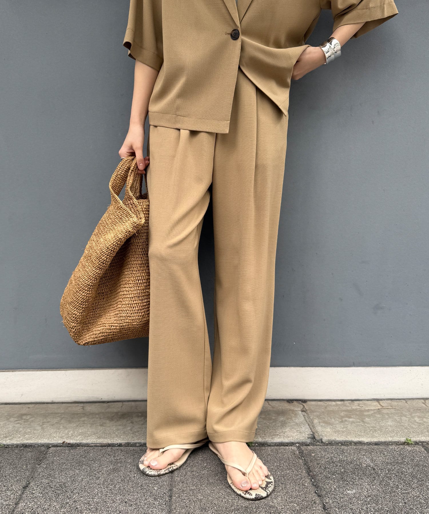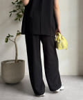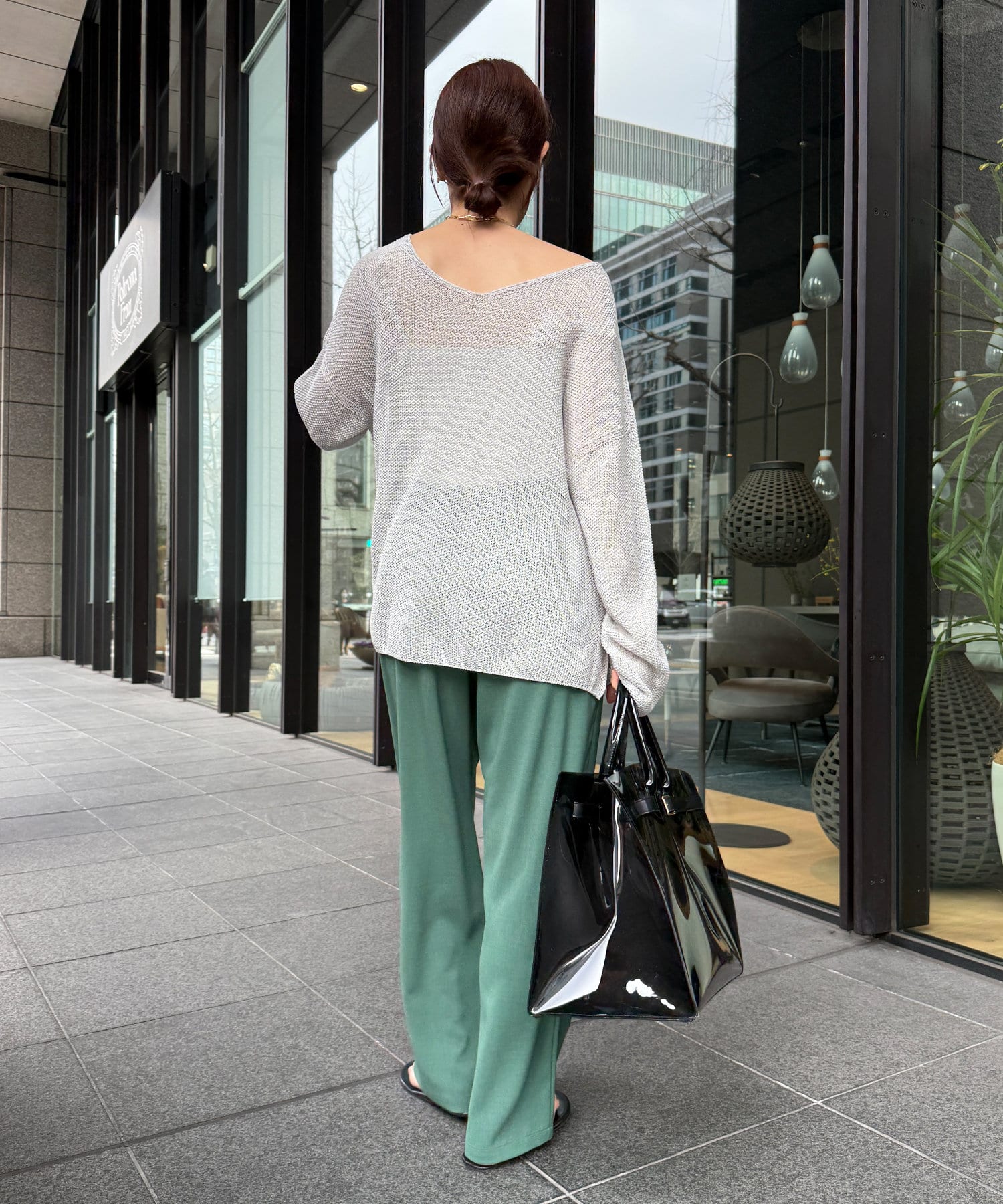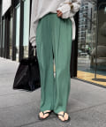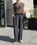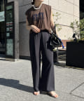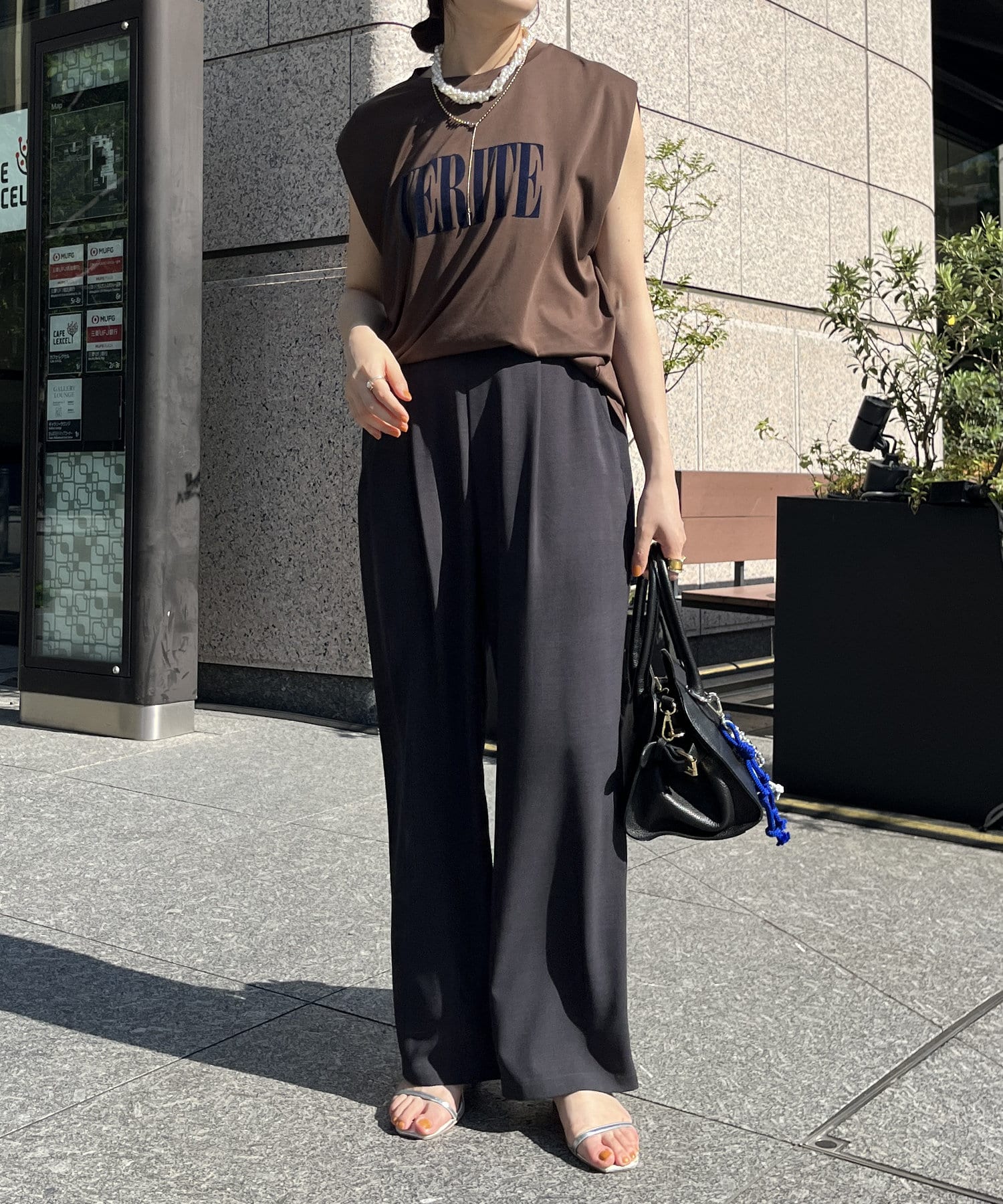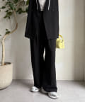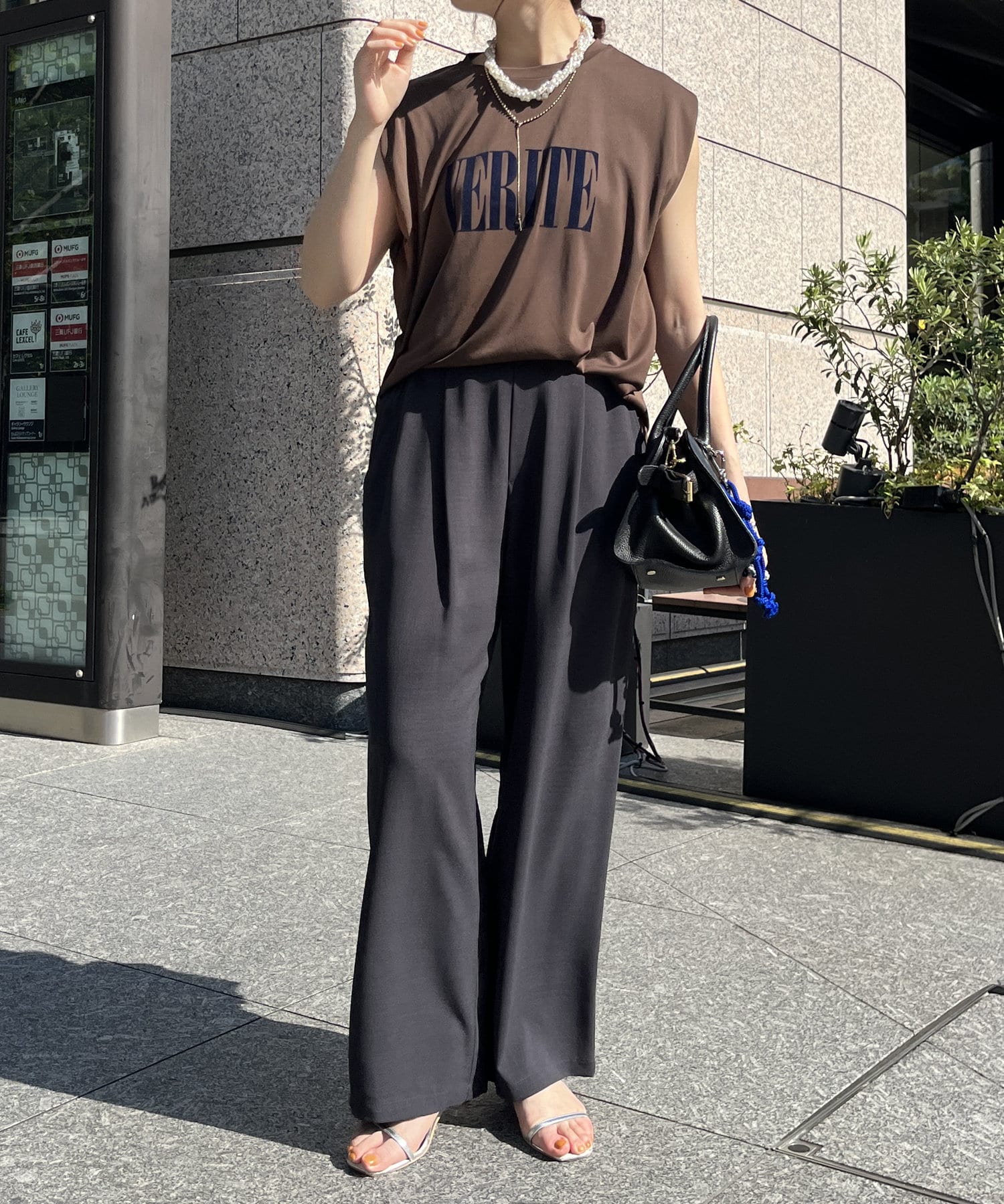 ワイドなシルエットは、脚のラインを拾わずイージー。