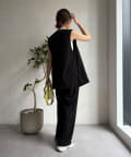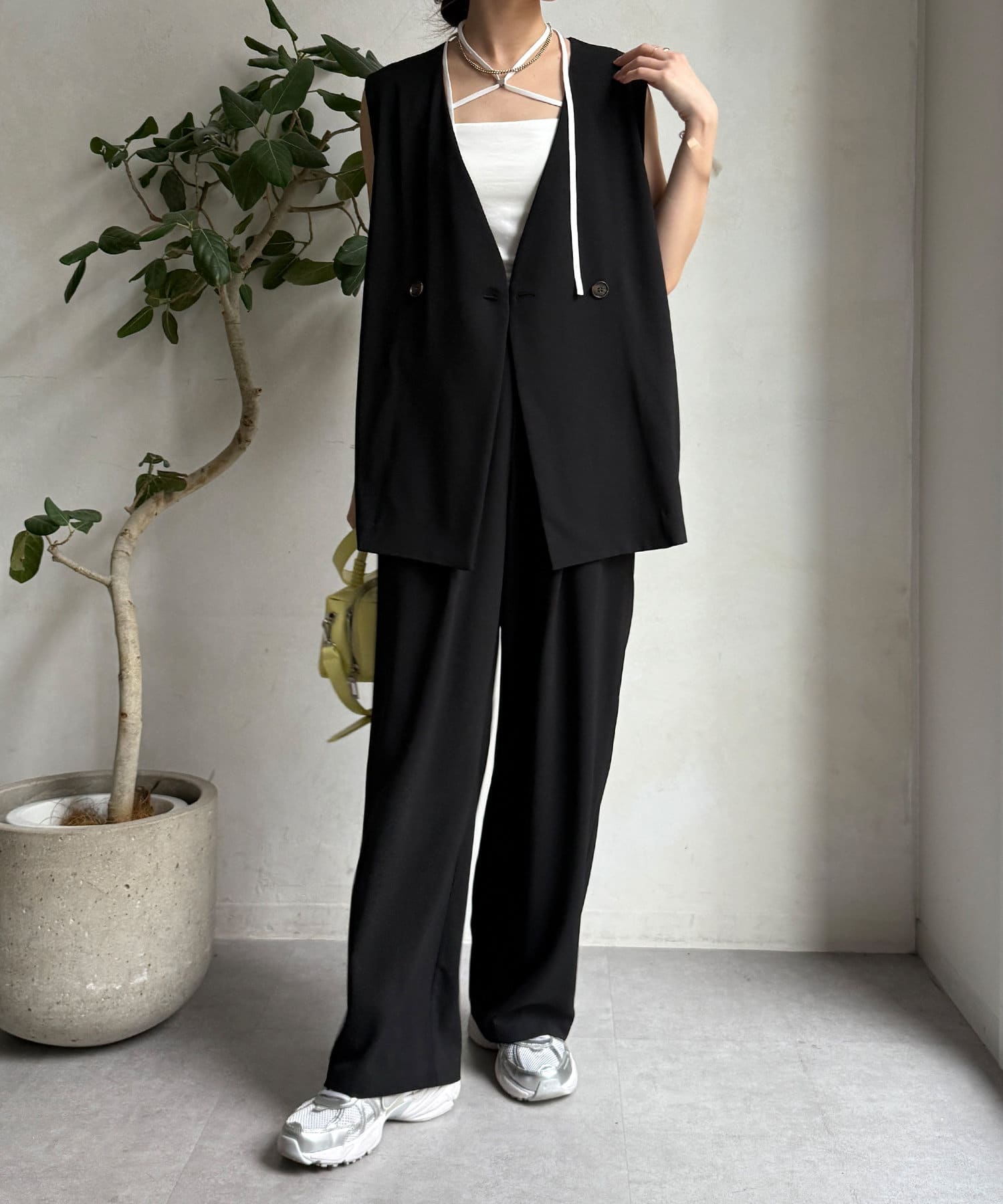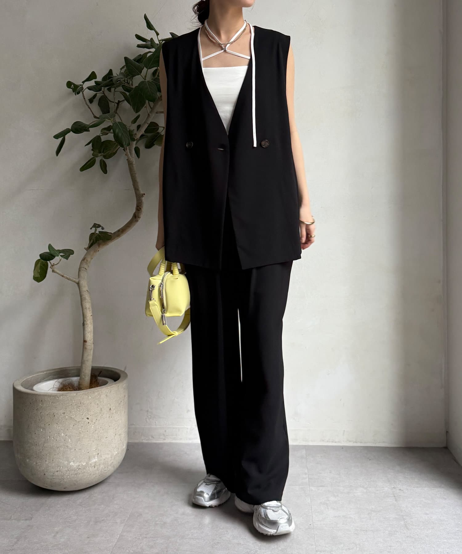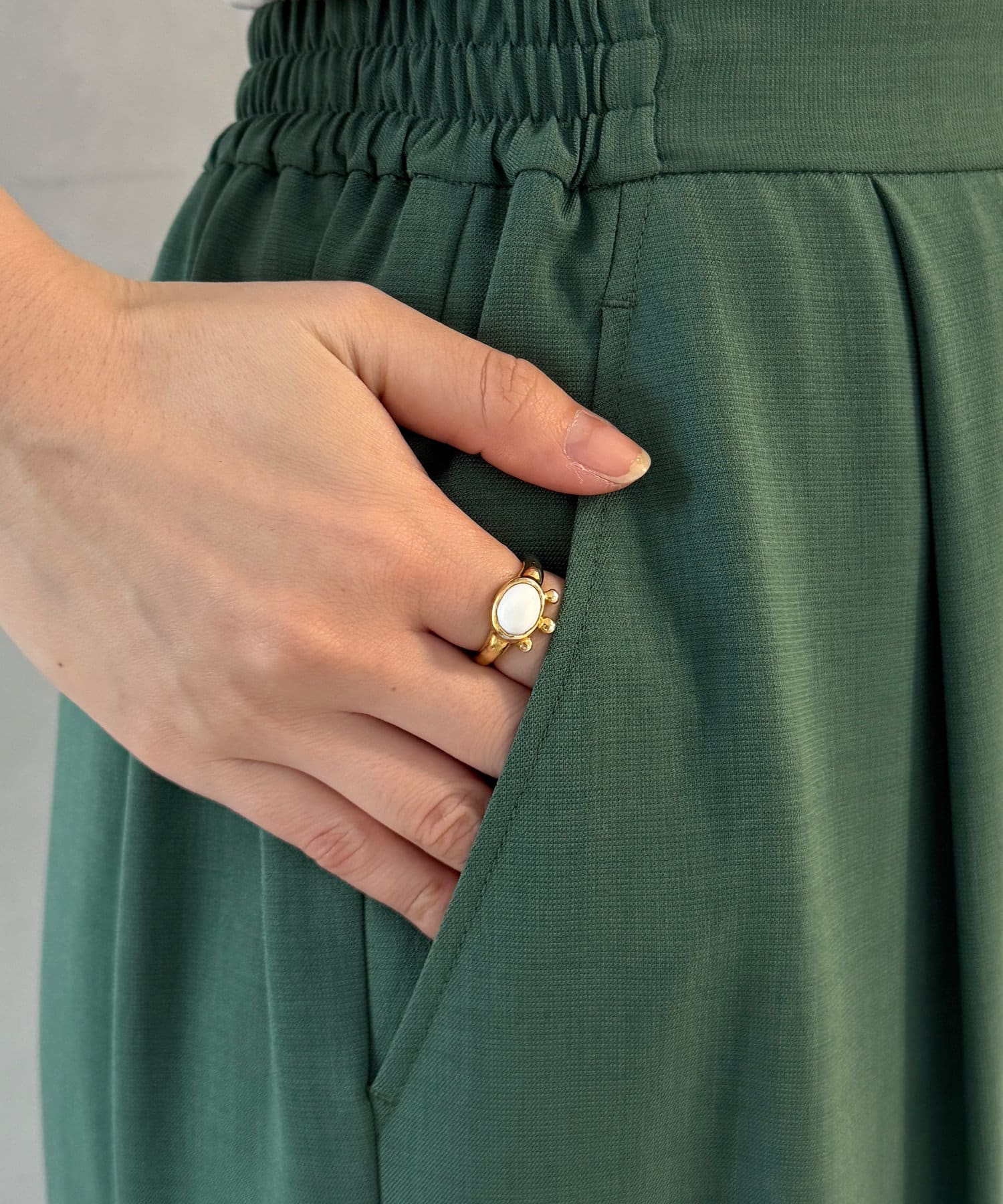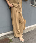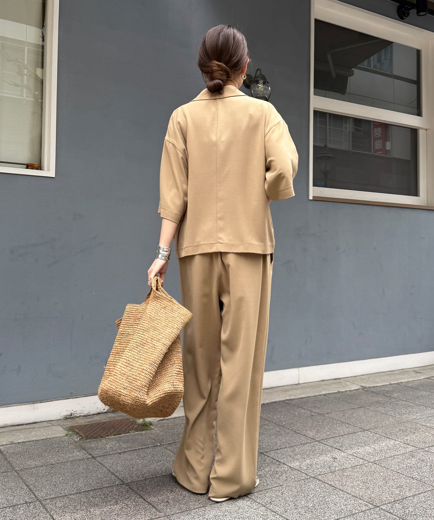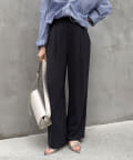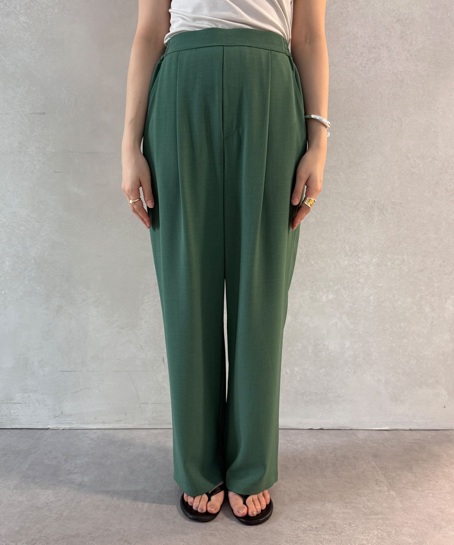 ワイドなシルエットは、脚のラインを拾わずイージー。