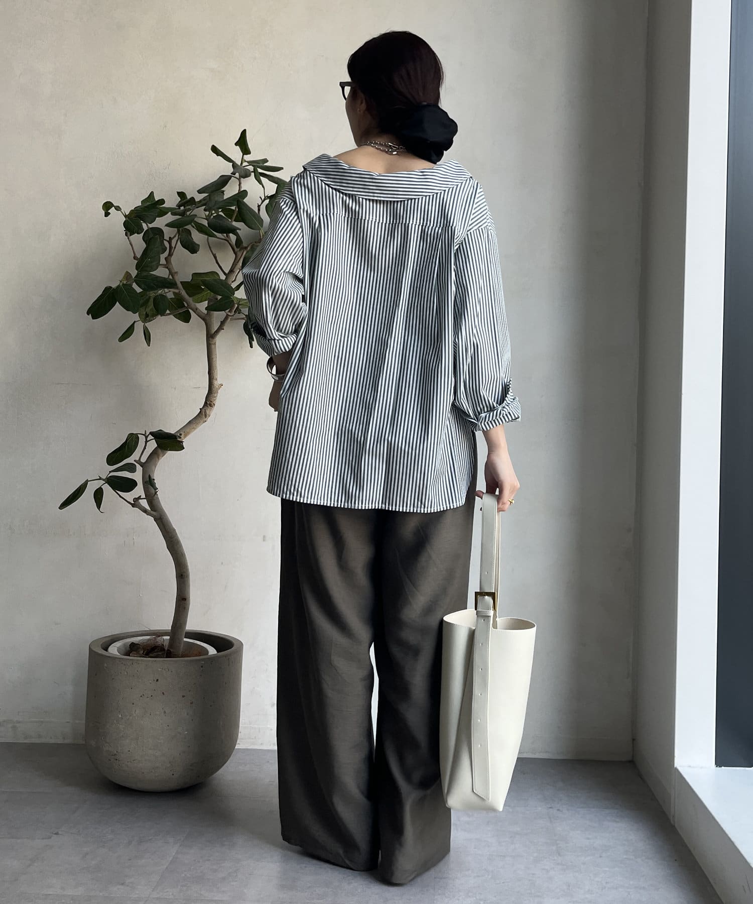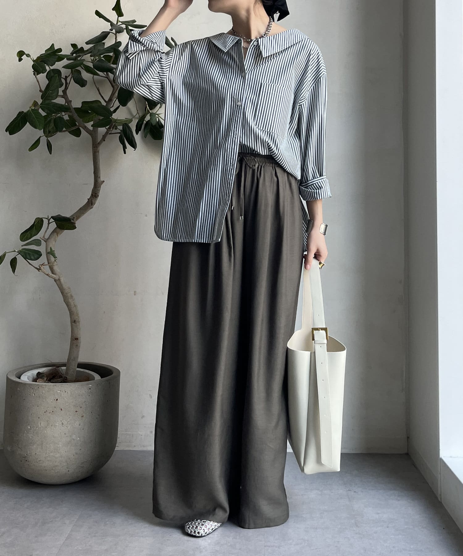 程よくゆとりを持たせたワイドシルエットは、脚のラインをカバーし、体型を気にせず着られますよ。