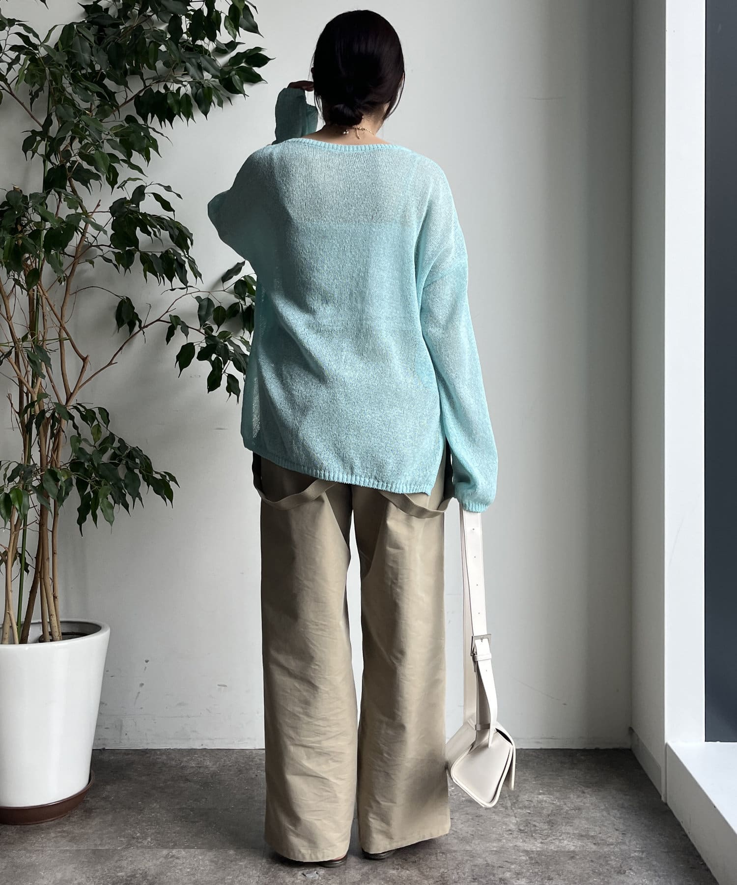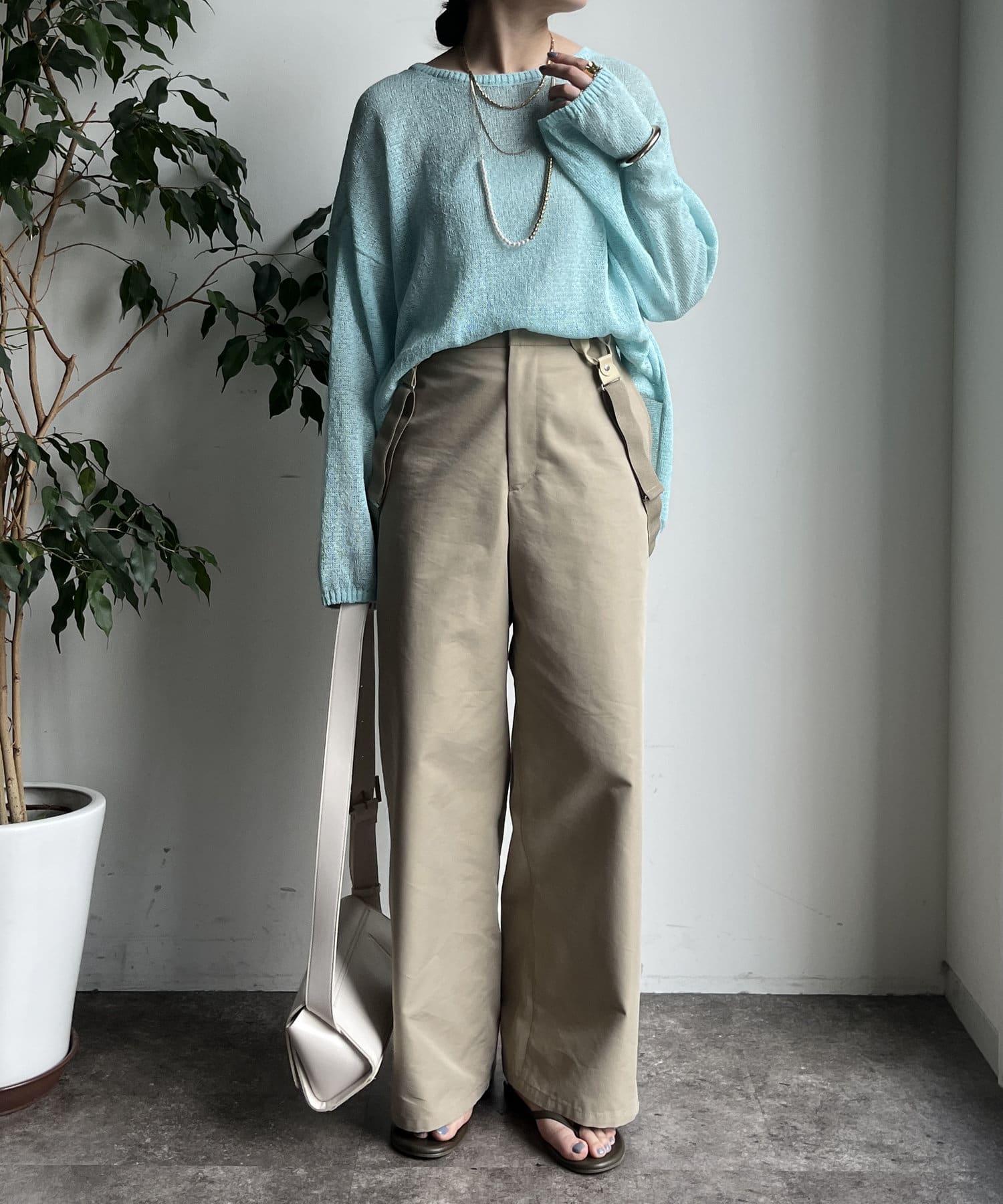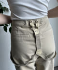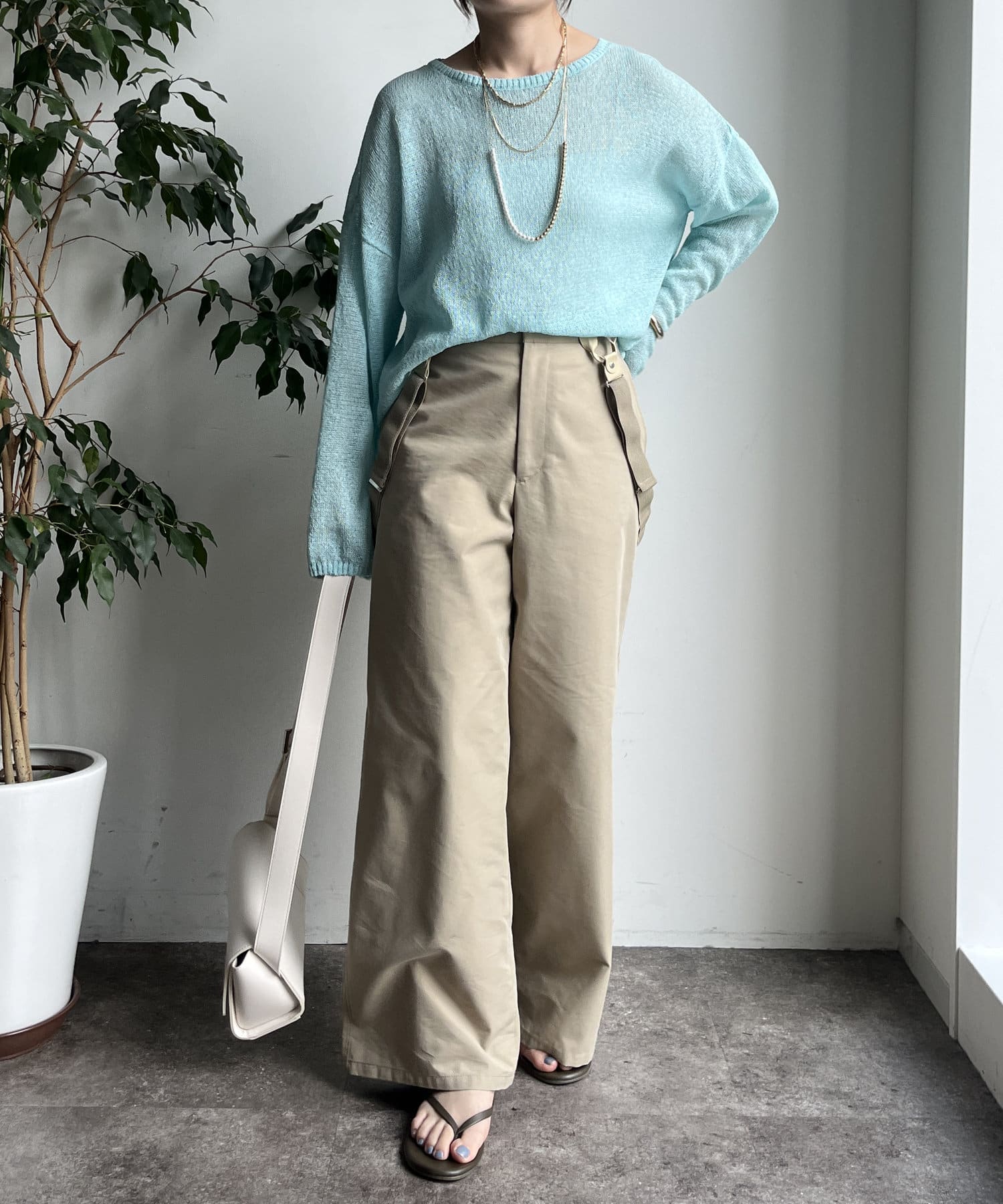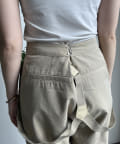ウエストバック部分にホックがついているため、サスペンダーを肩から下しても着用可能。2wayの着こなしが叶います。