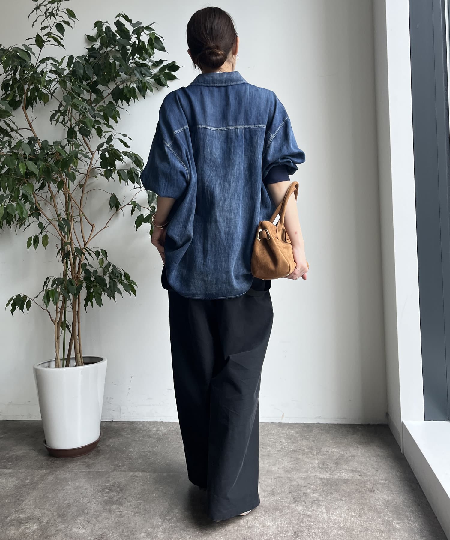 ややハリ感のあるツイルの素材でカジュアルな雰囲気を醸します。