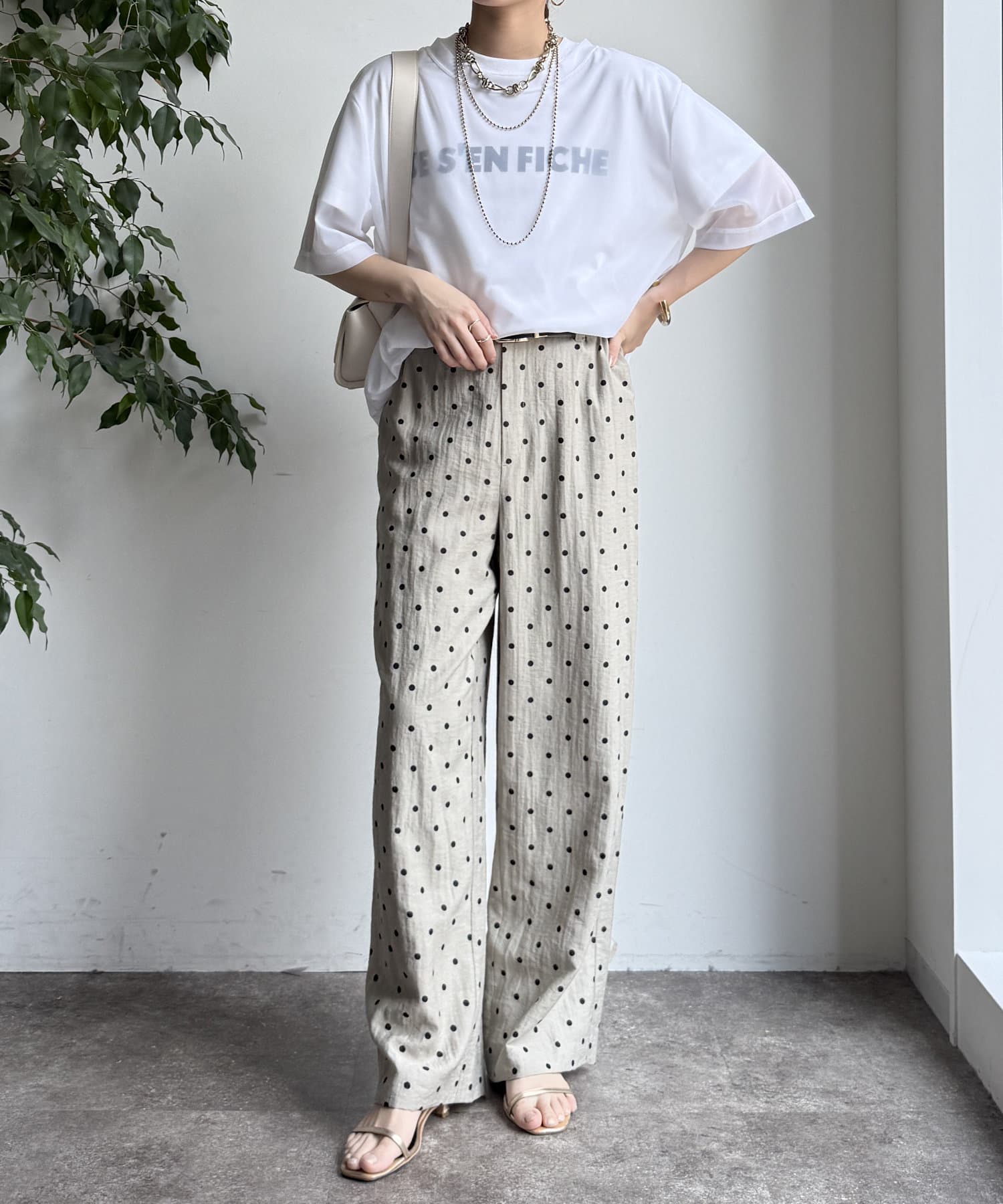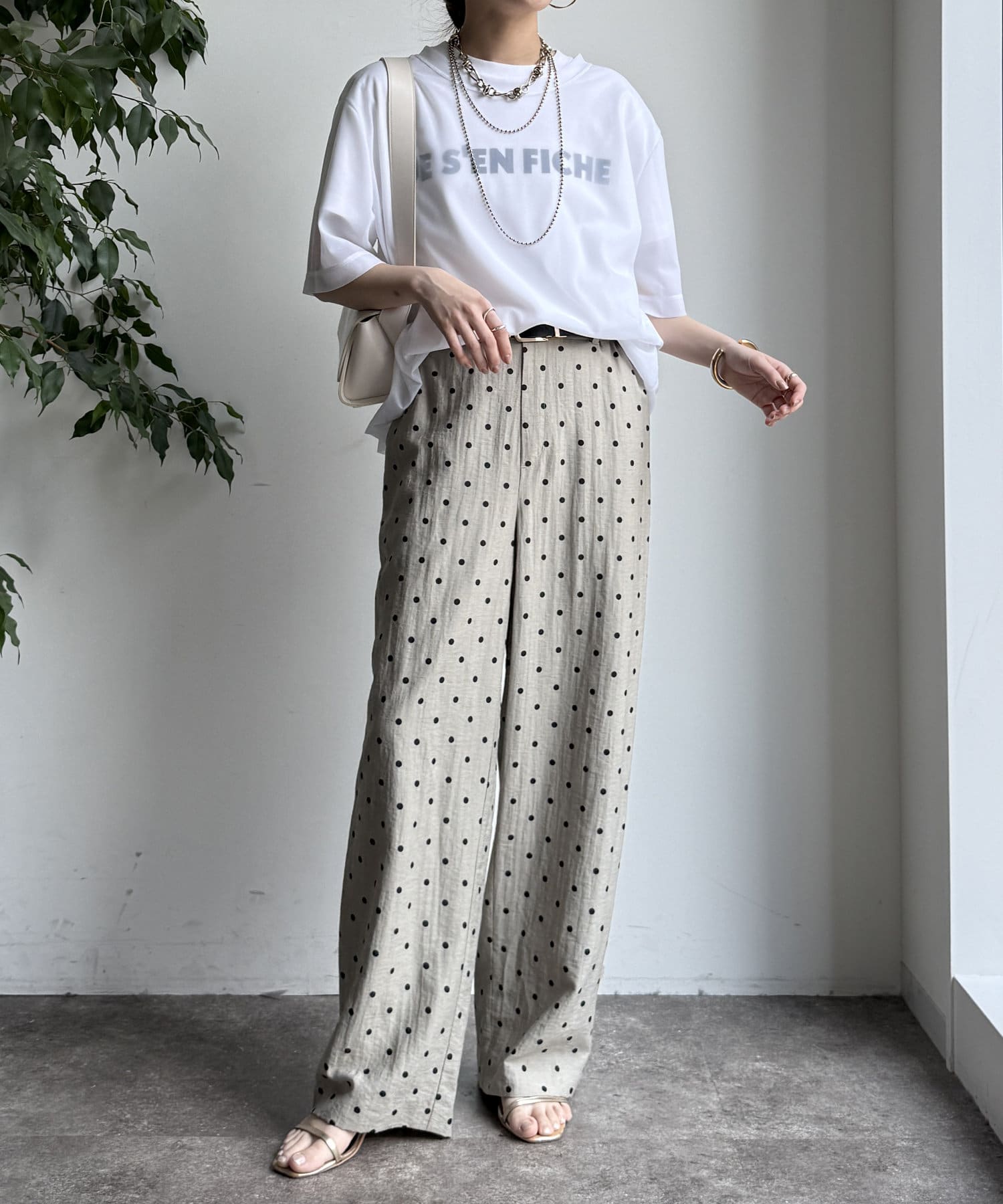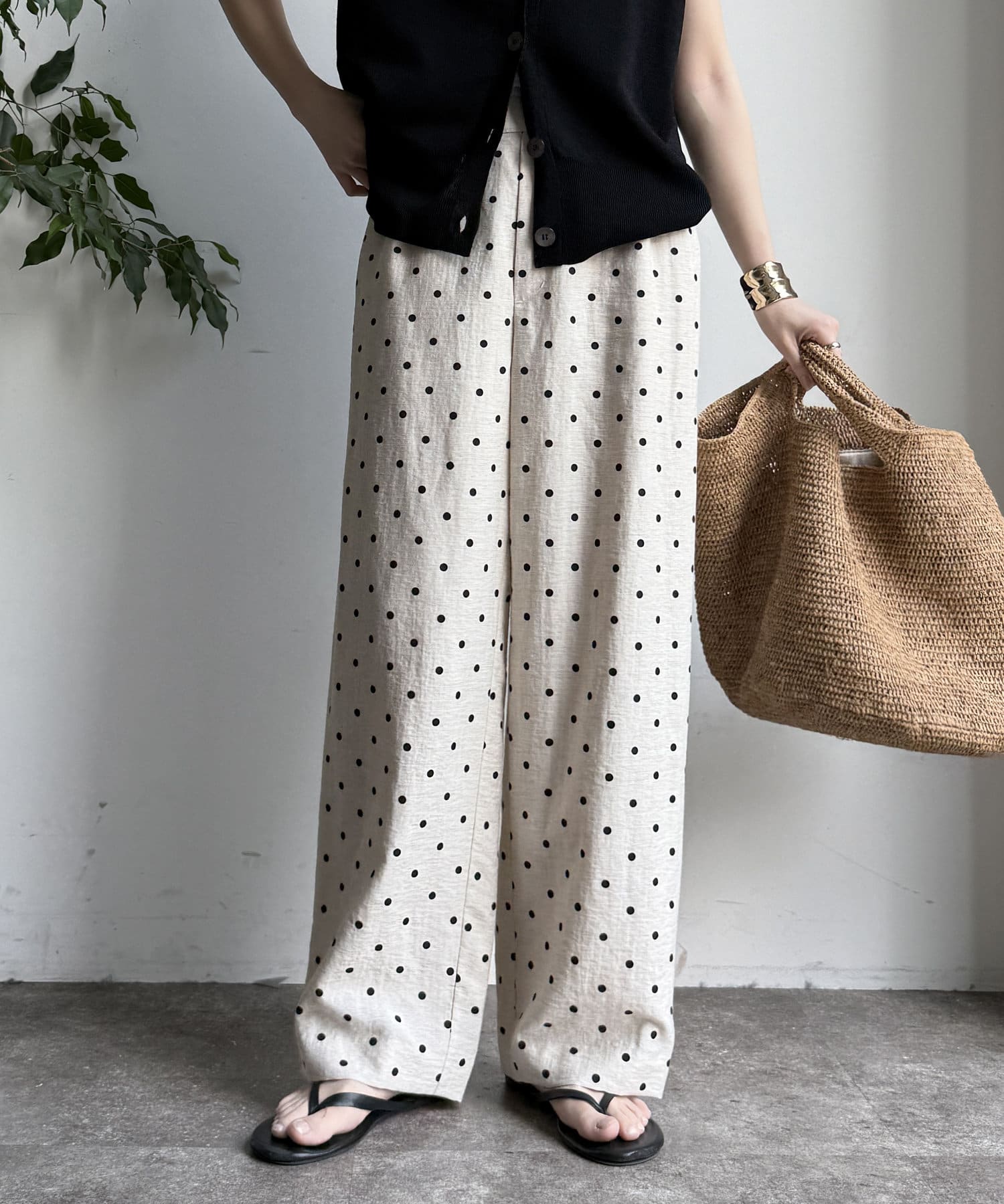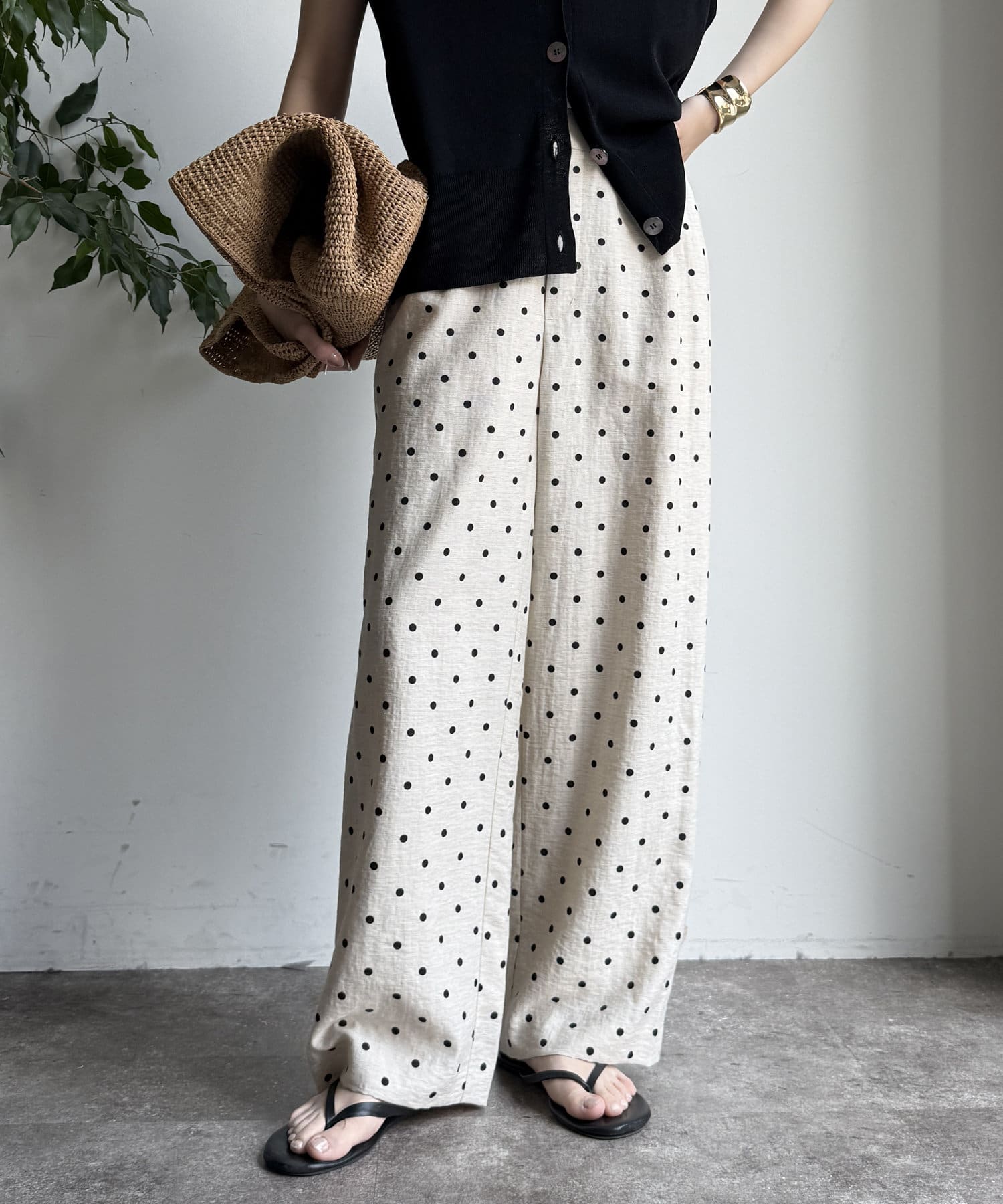 オトナカワイイ着こなしが叶う、ドット柄ワイドパンツ!