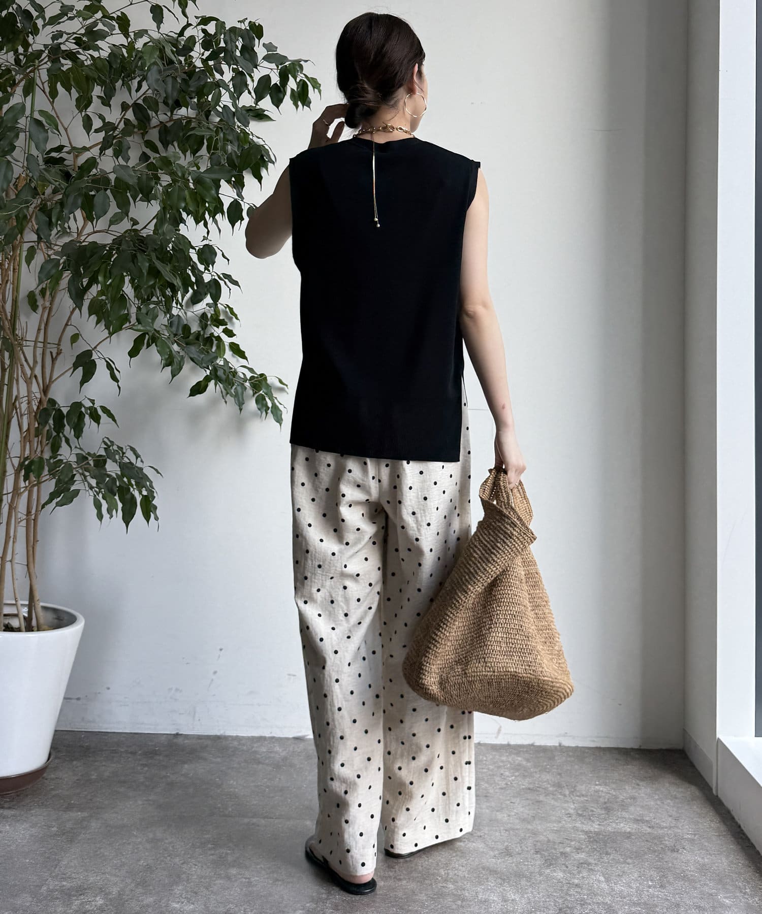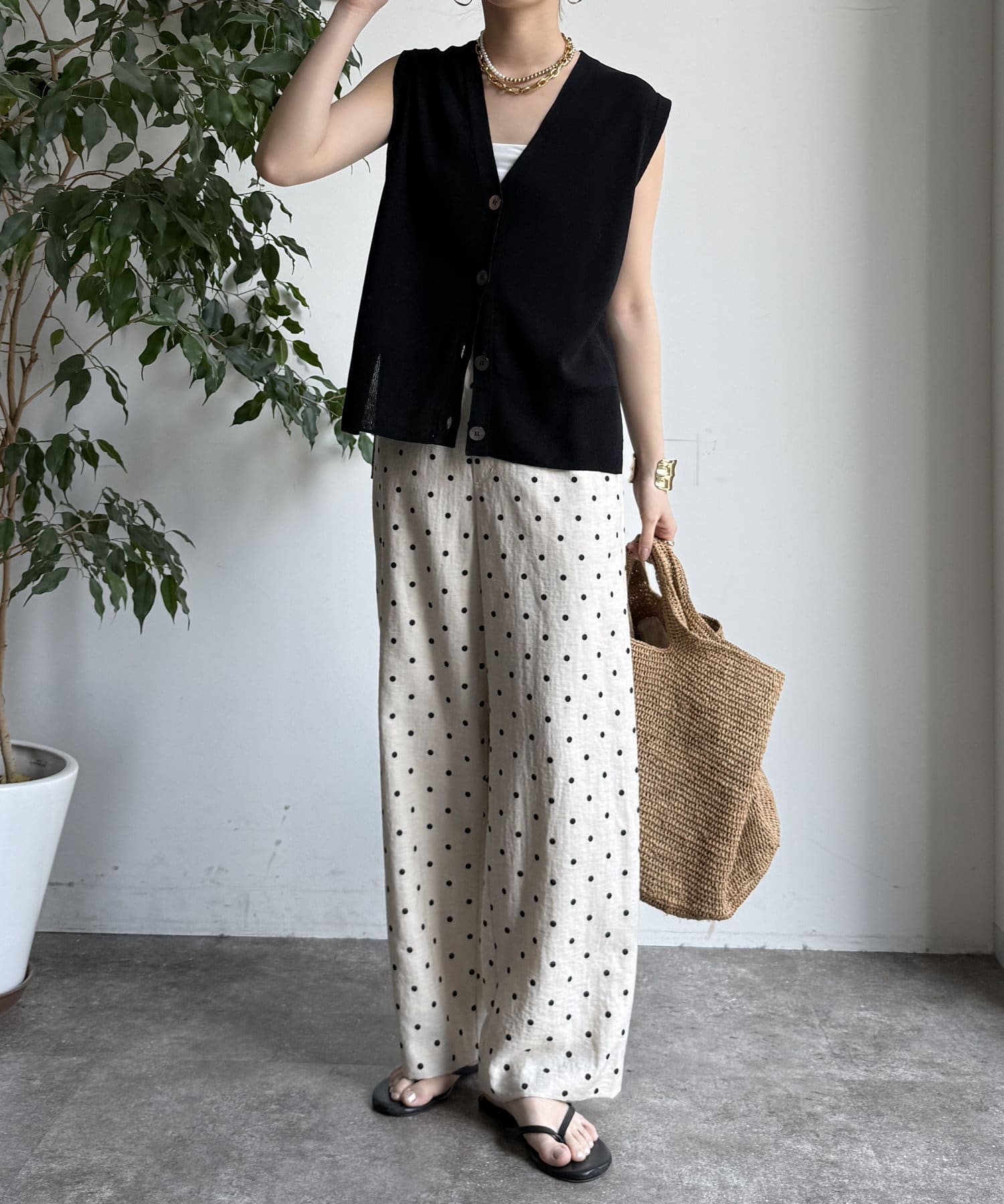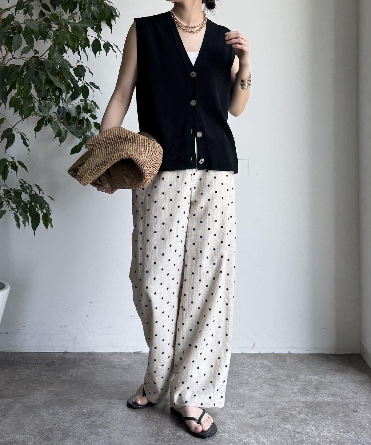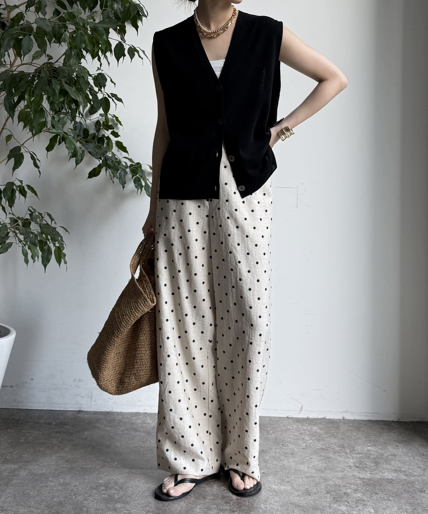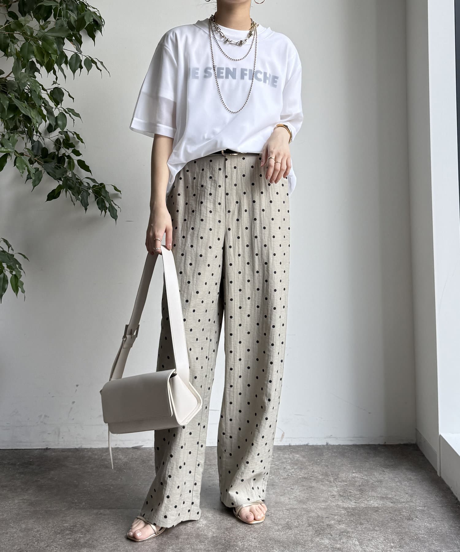 オトナカワイイ着こなしが叶う、ドット柄ワイドパンツ!