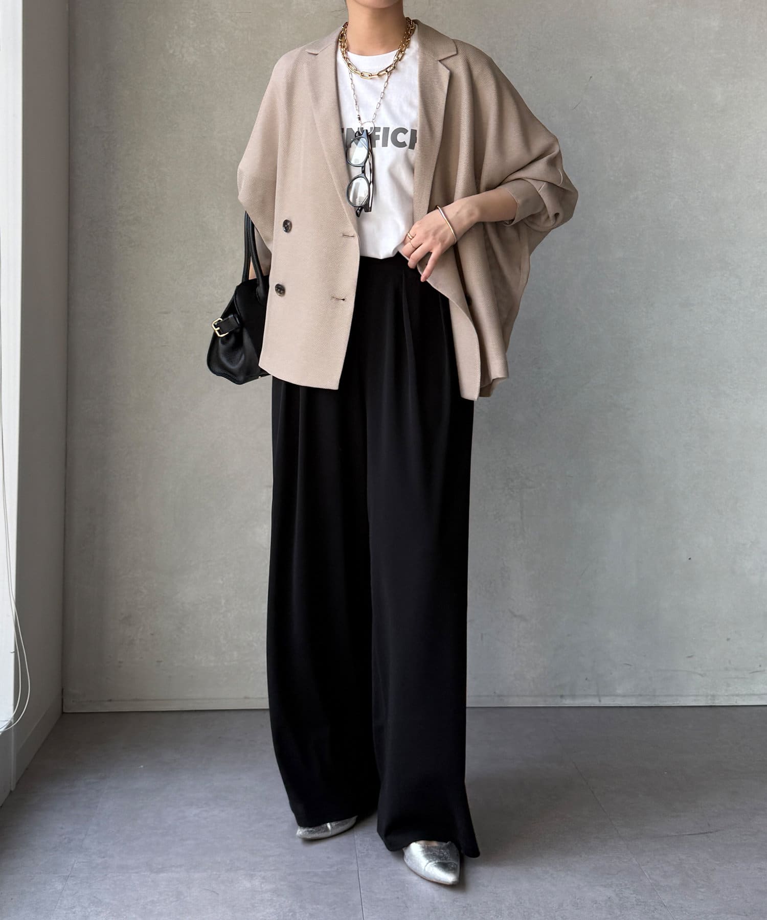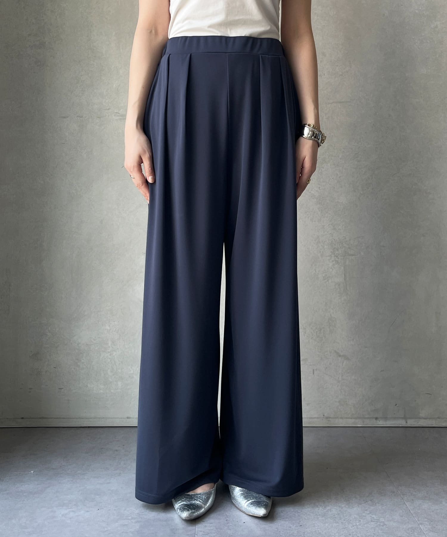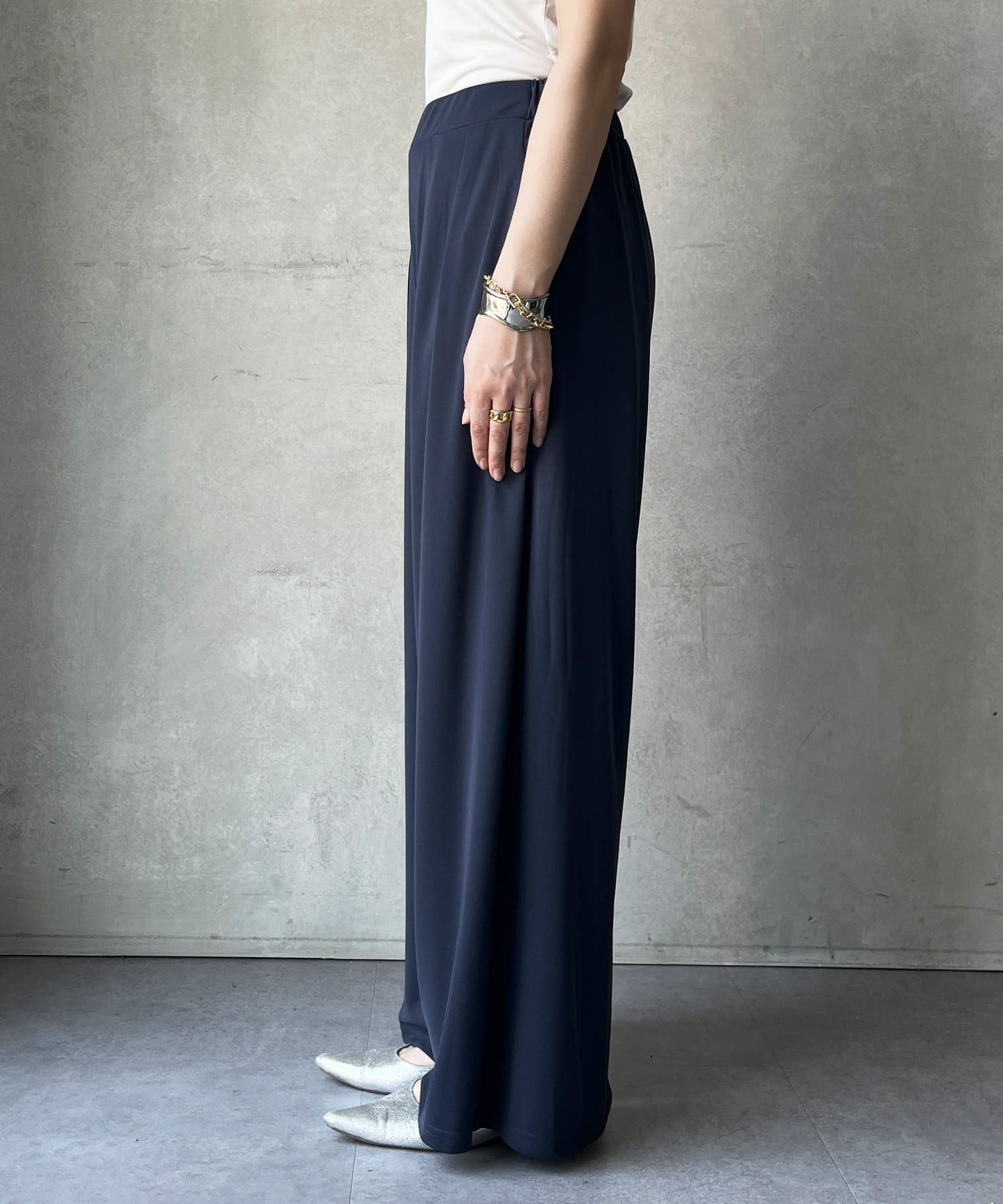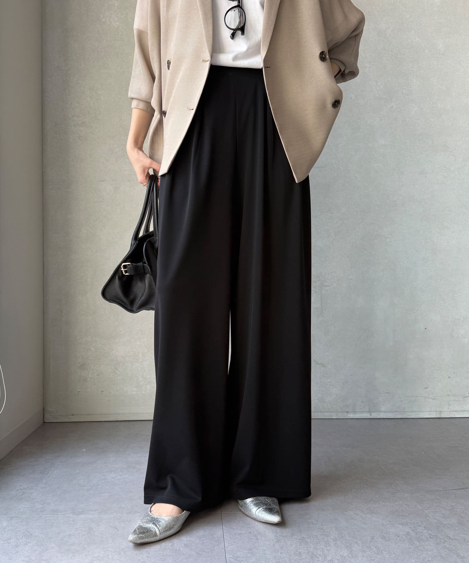 洗練された大人の余裕を演出する、贅沢なワイドパンツ
