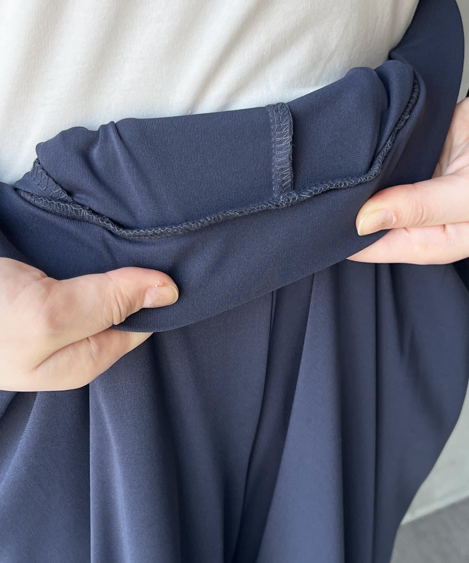 肌当たりのいいテロンとしたジョーゼットの素材で、着心地の良さと上品な落ち感を演出。