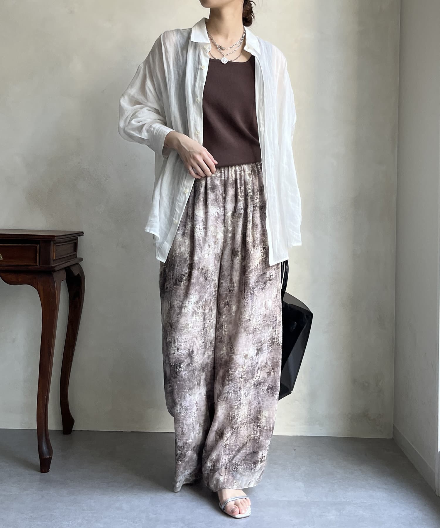 表面感のあるカットジャガードにプリントされていて、なおかつシアーなので 軽やかさがありながら、