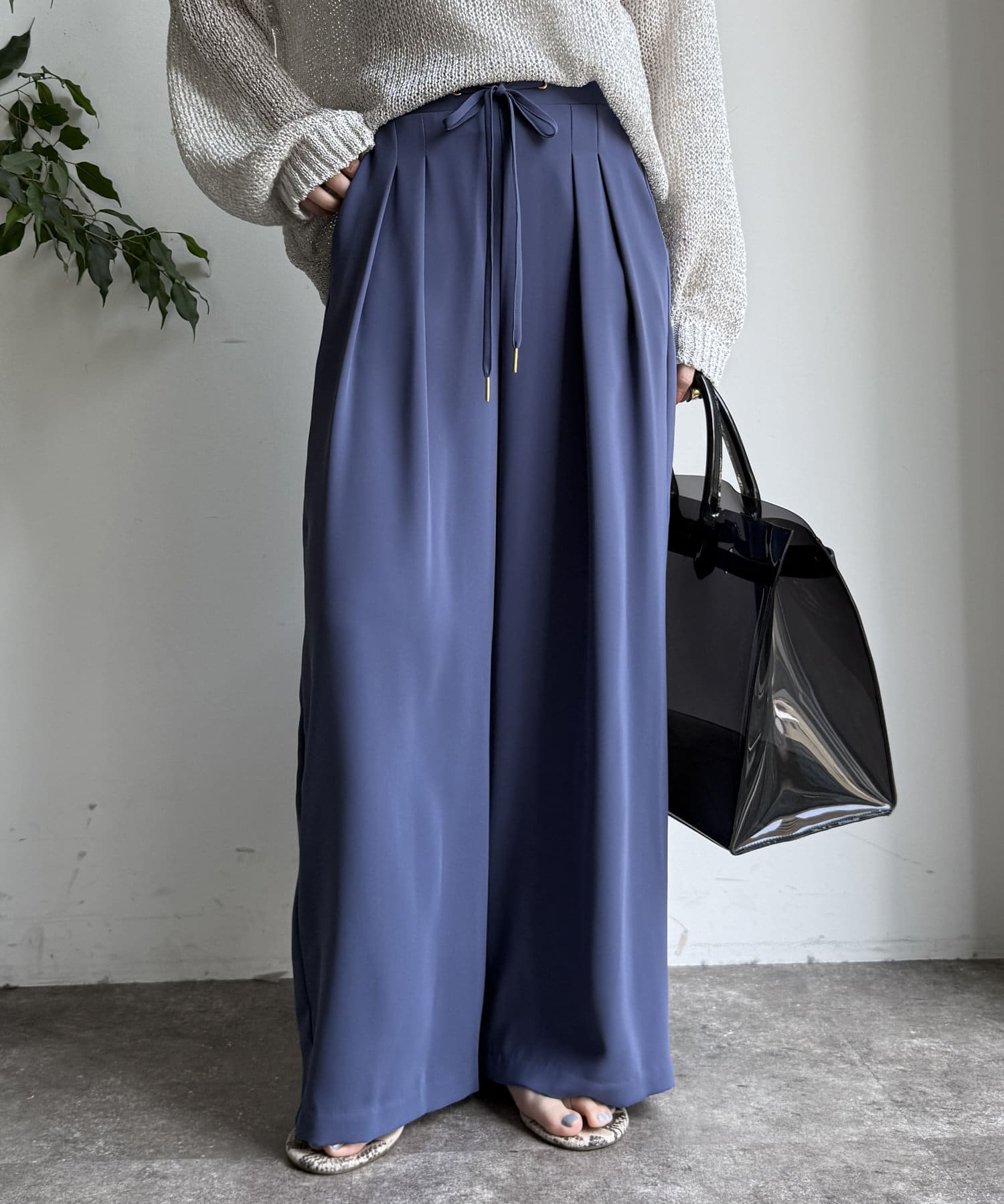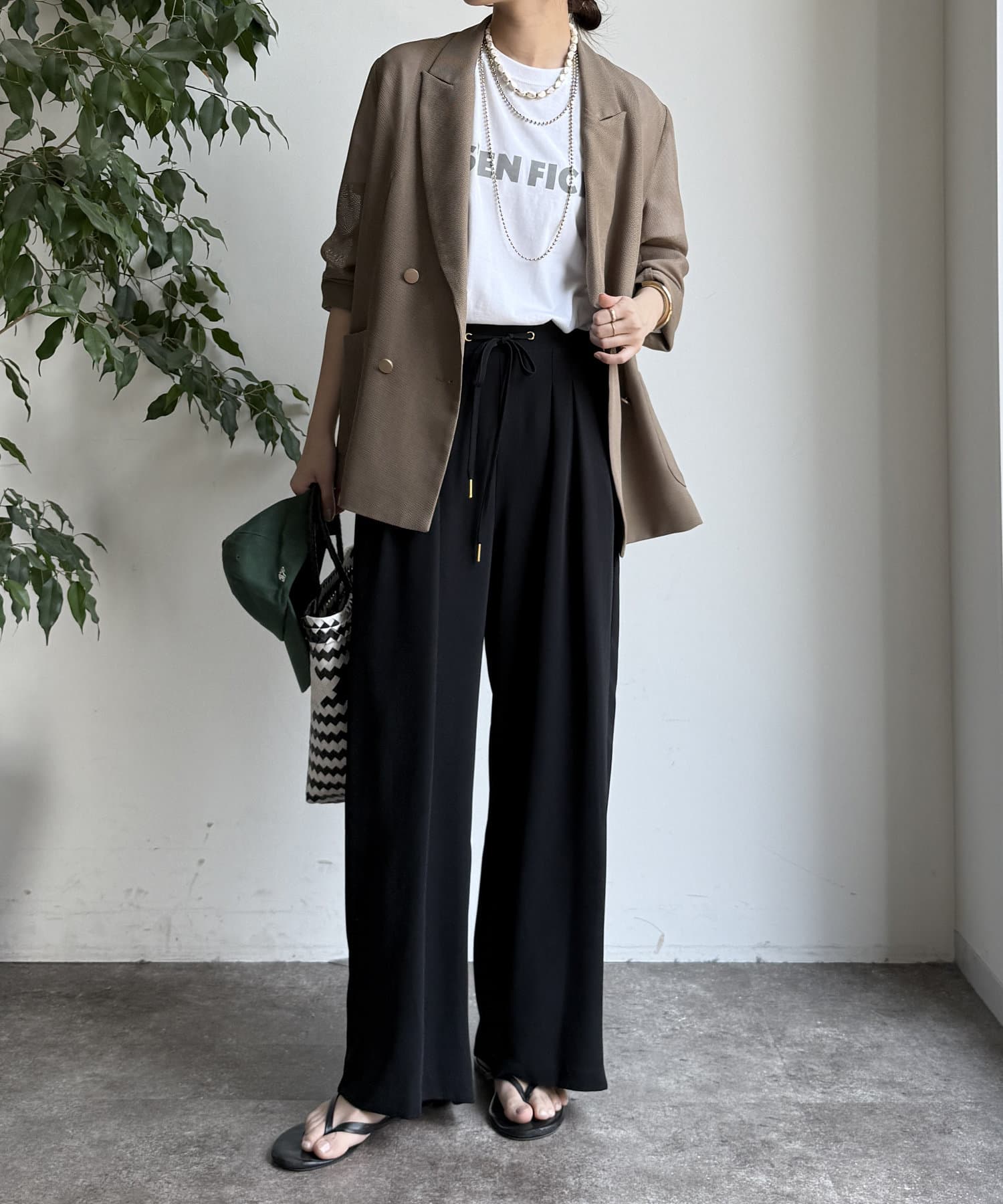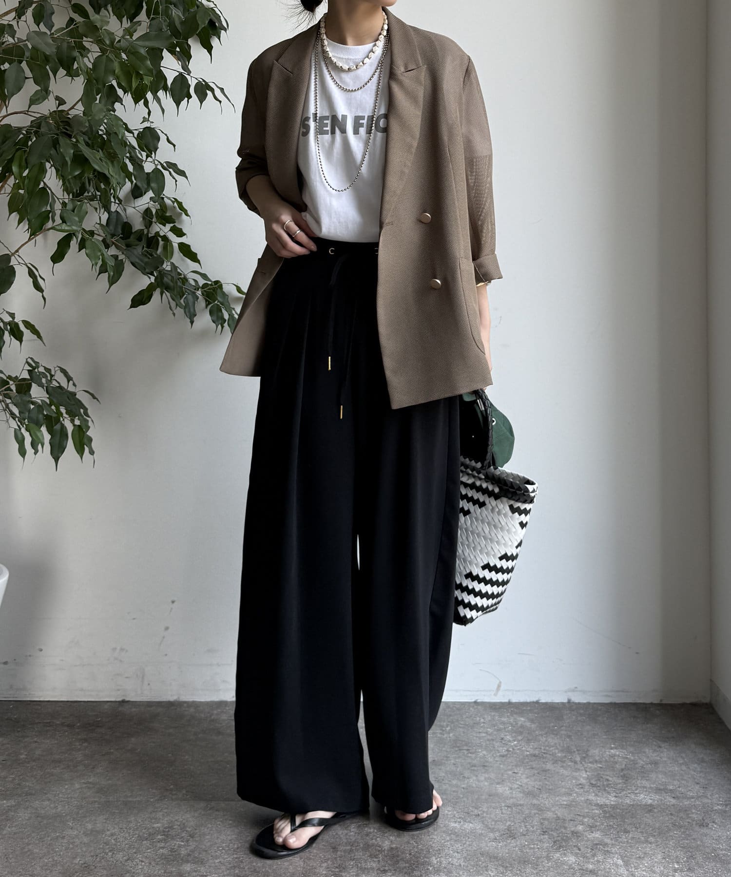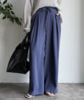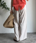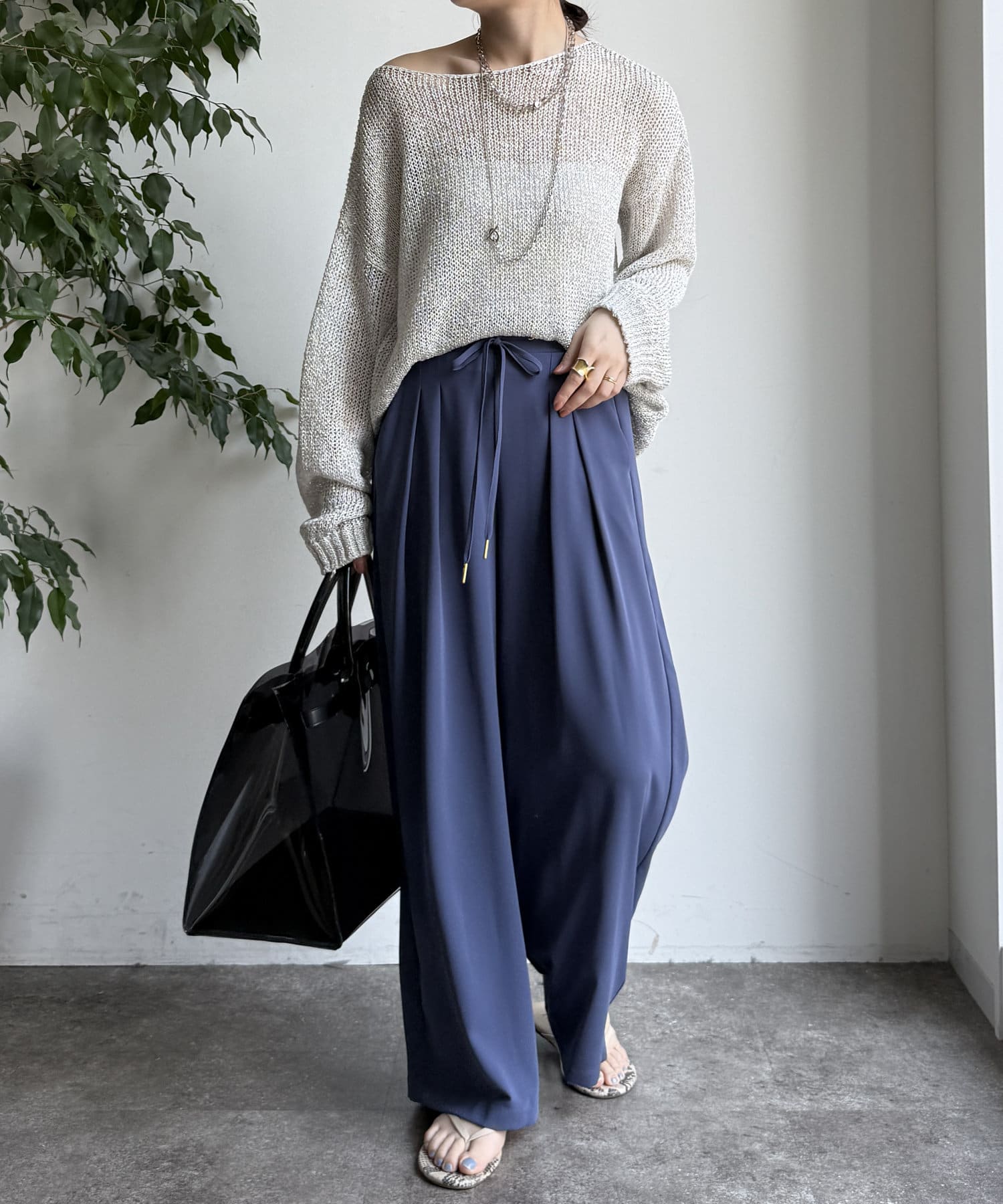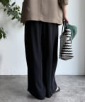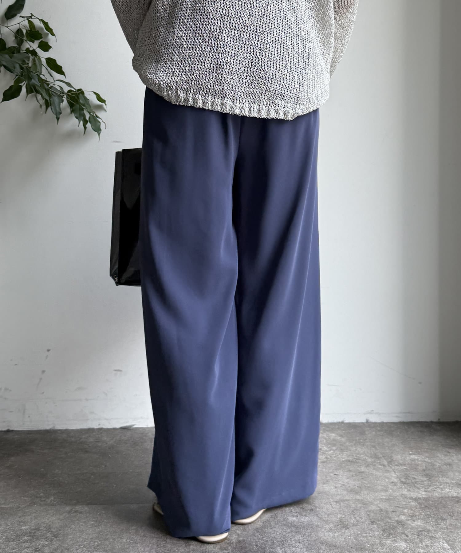 ワイドなシルエットは、脚のラインを拾わずイージー。