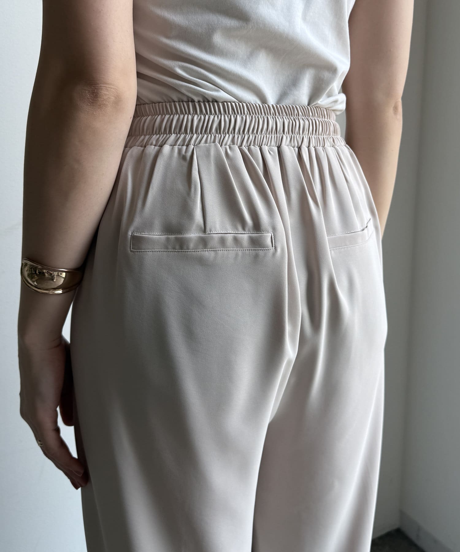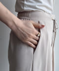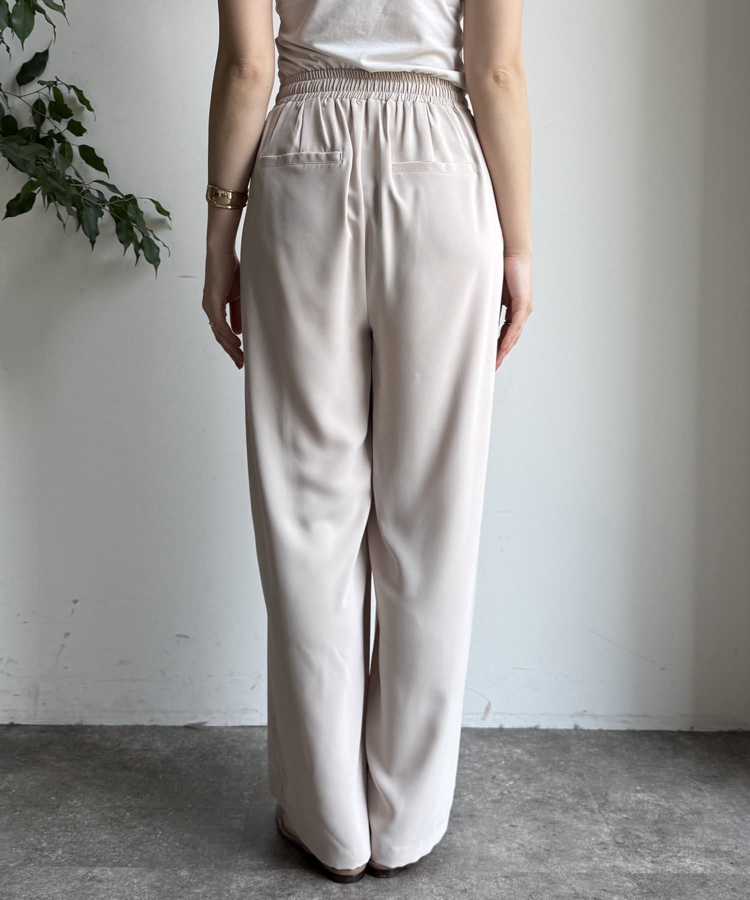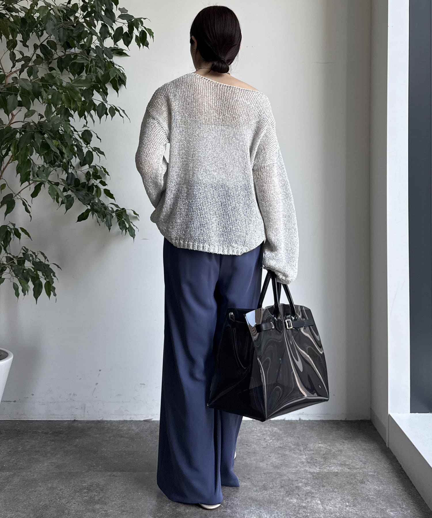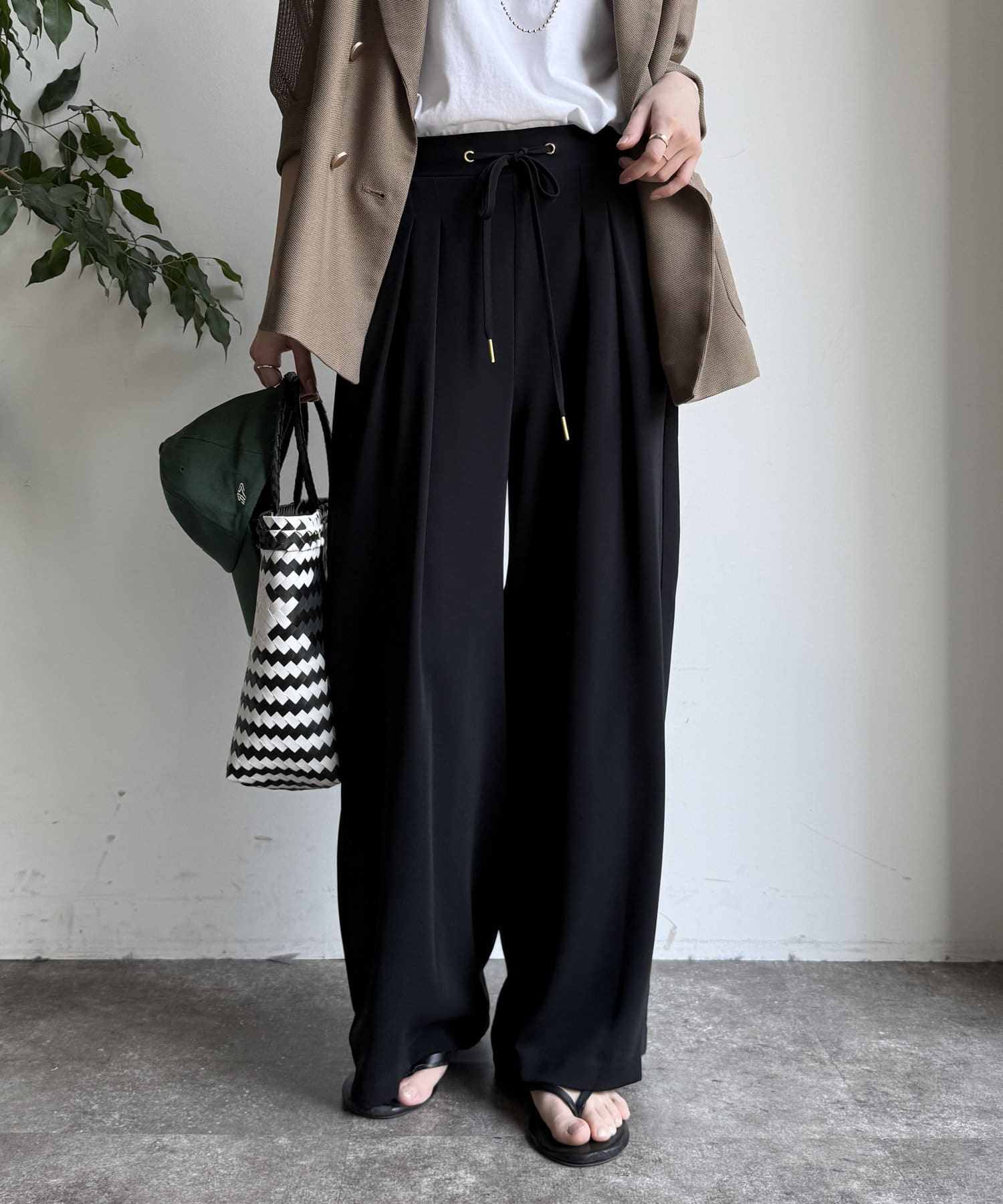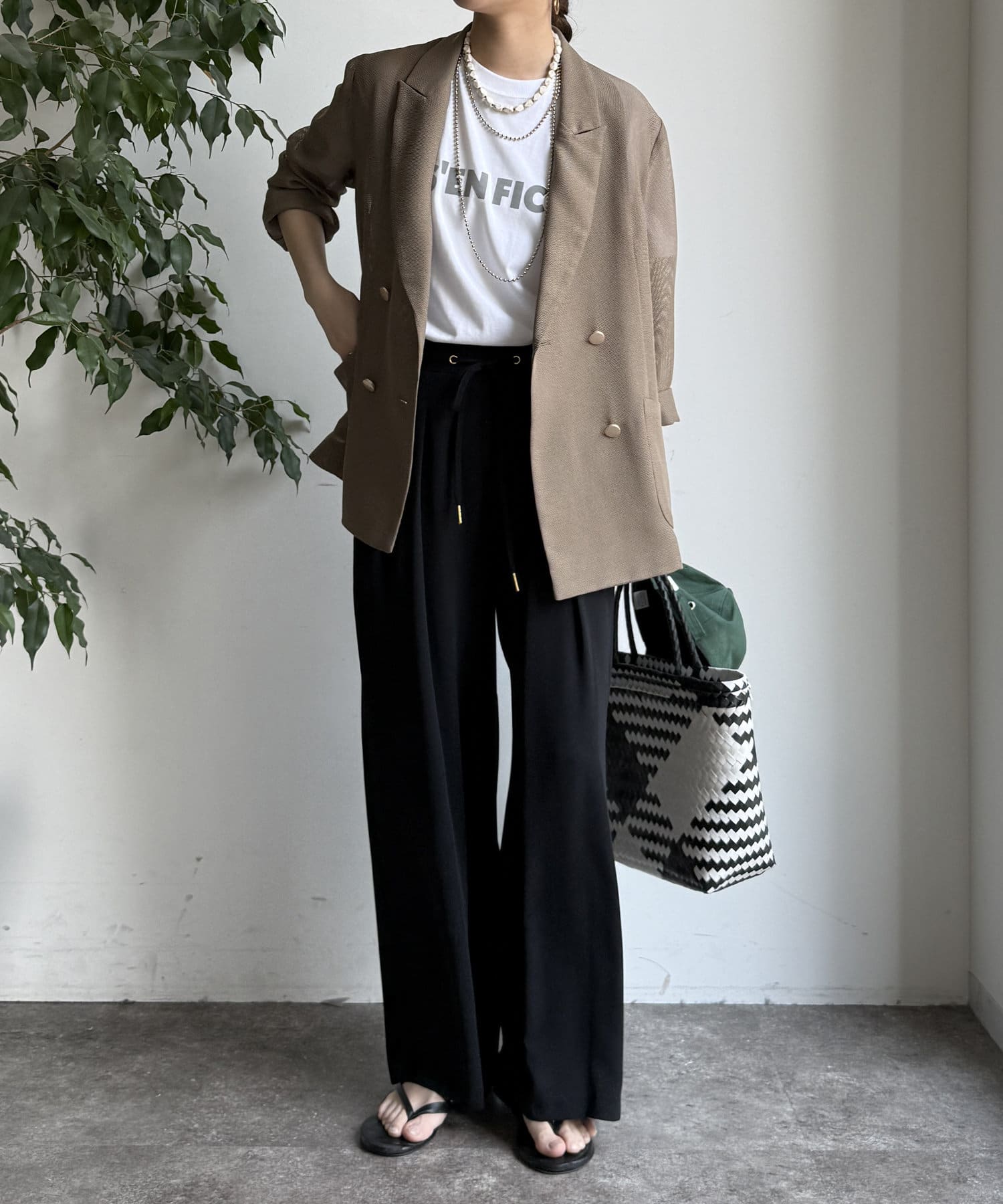 ワイドなシルエットは、脚のラインを拾わずイージー。