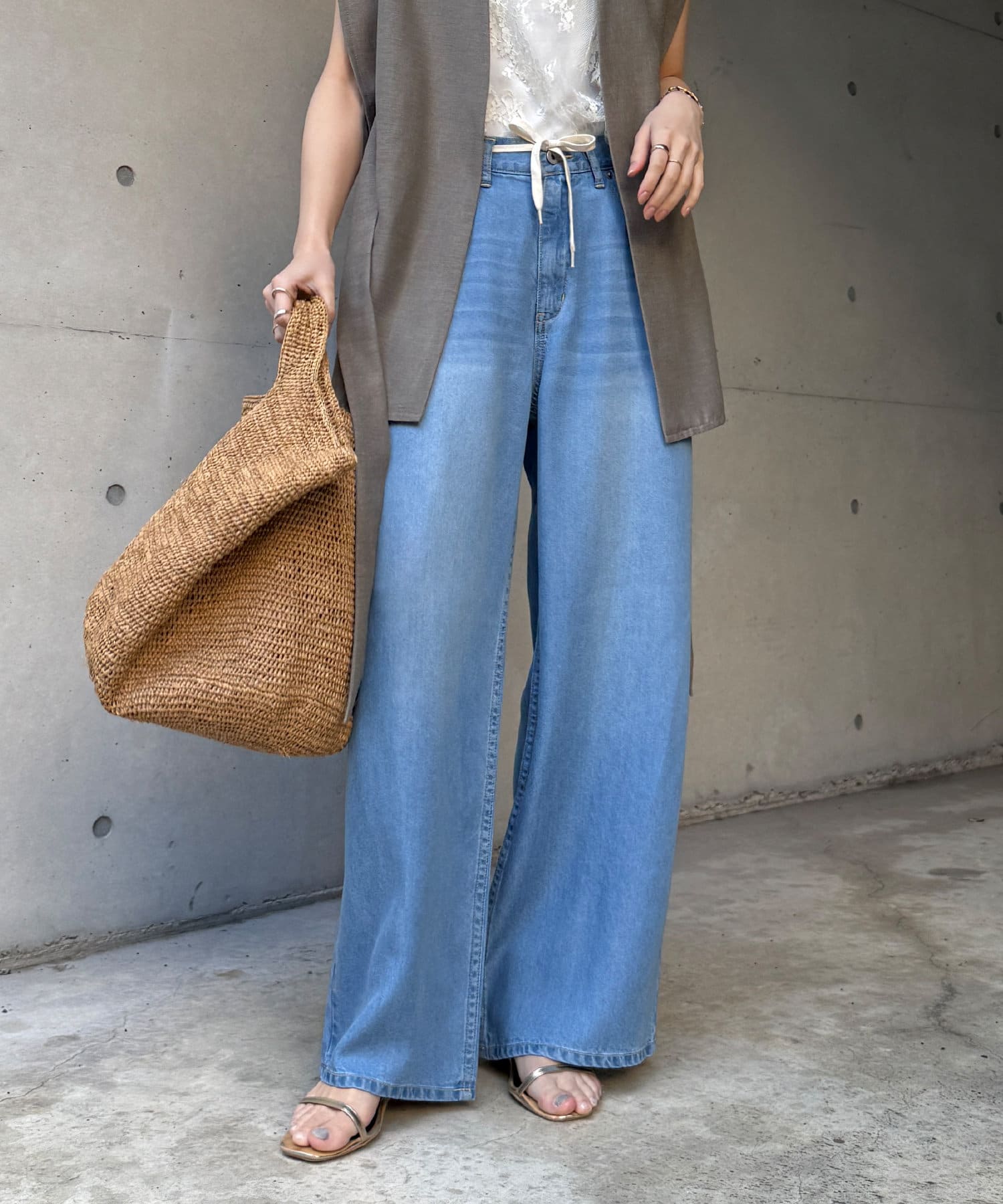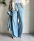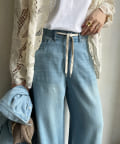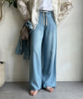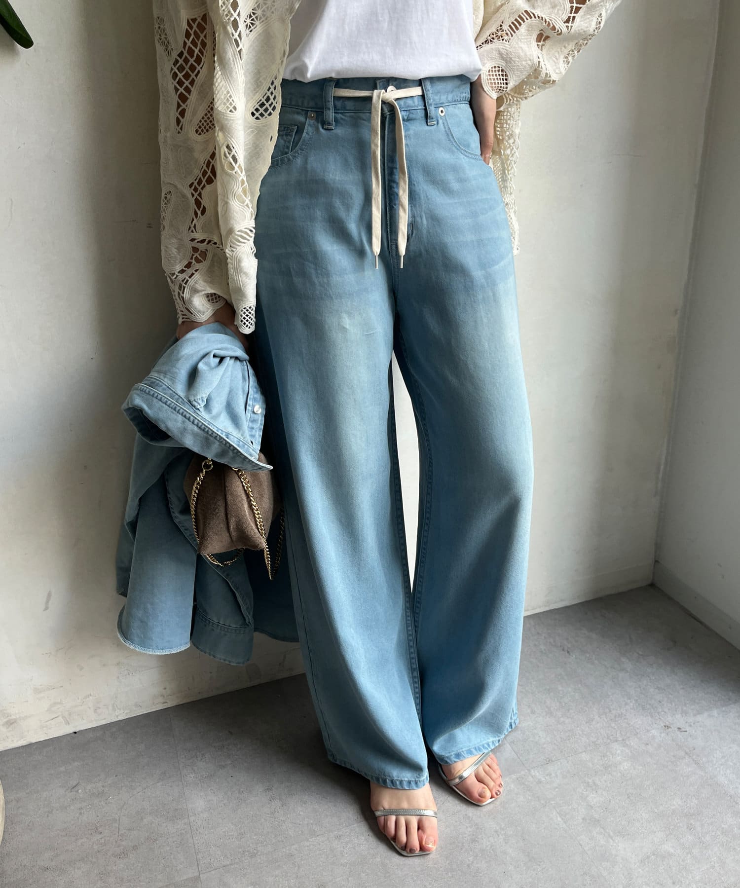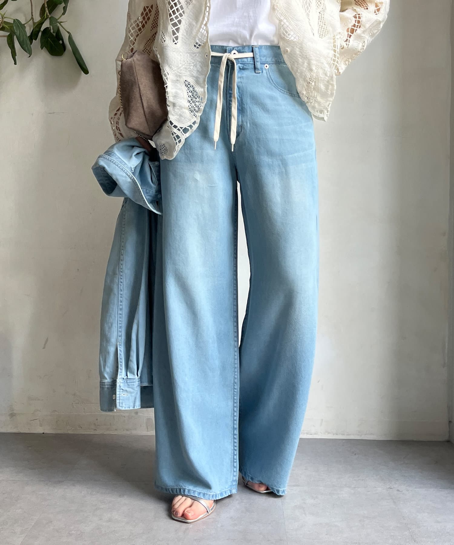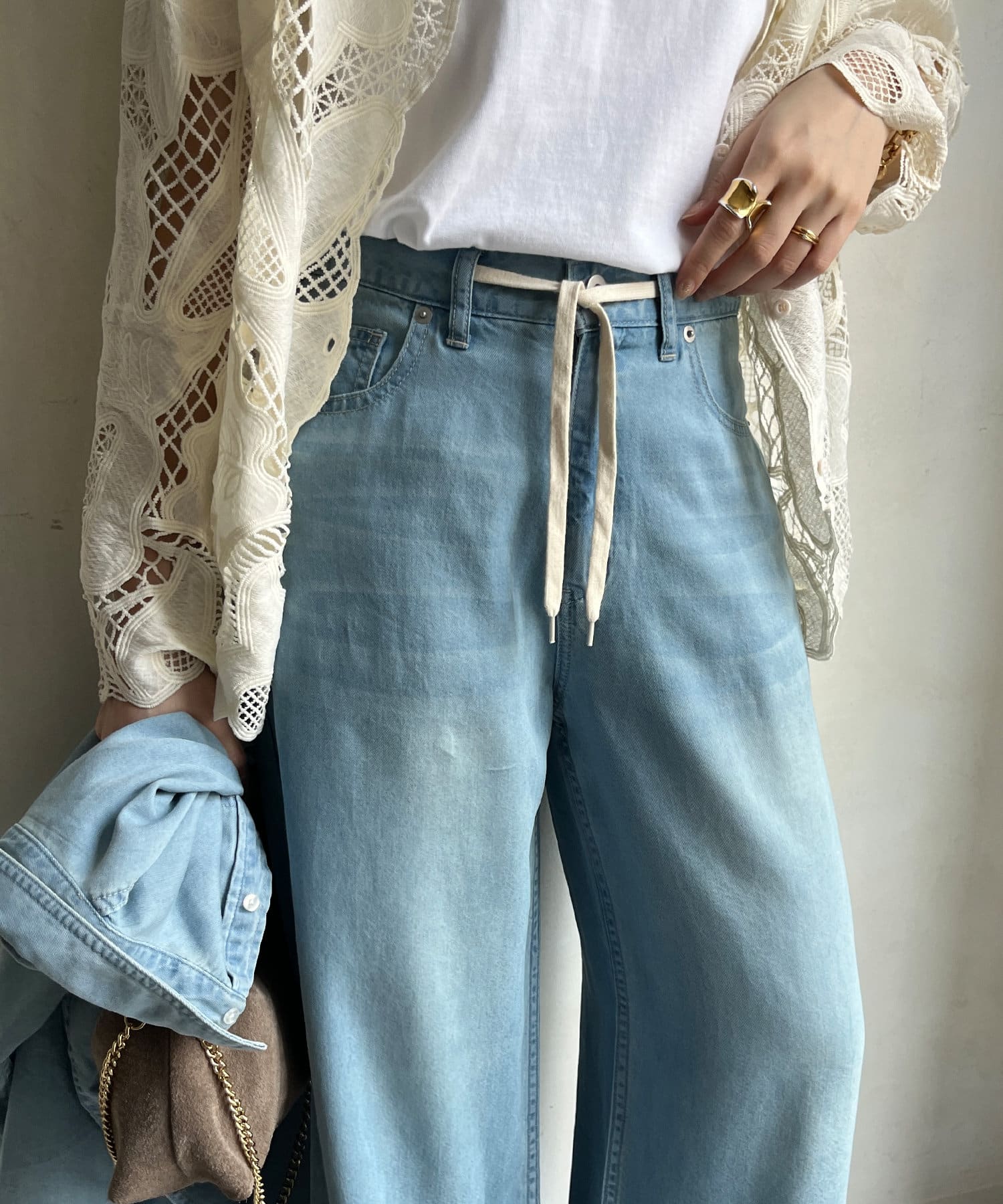 ウエストのドロストデザインがポイントのデニムパンツ。