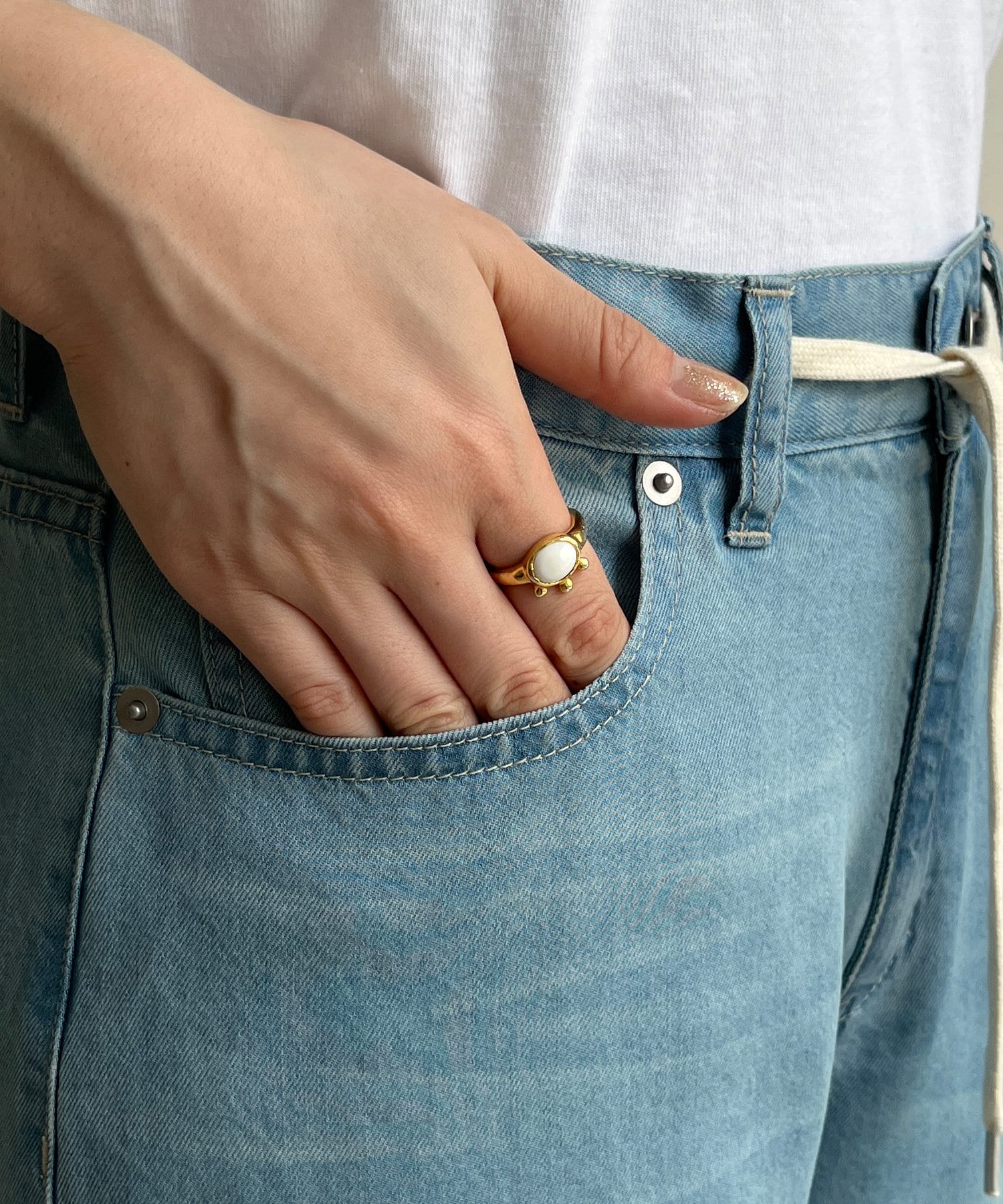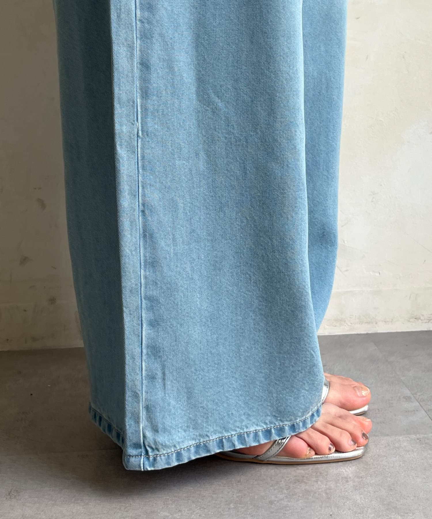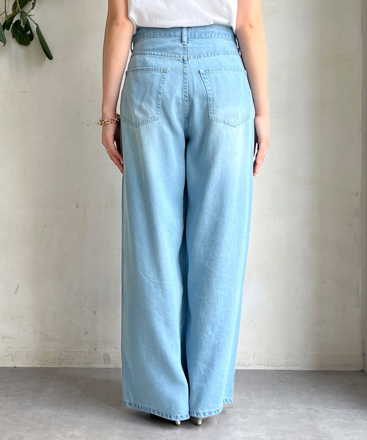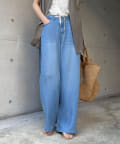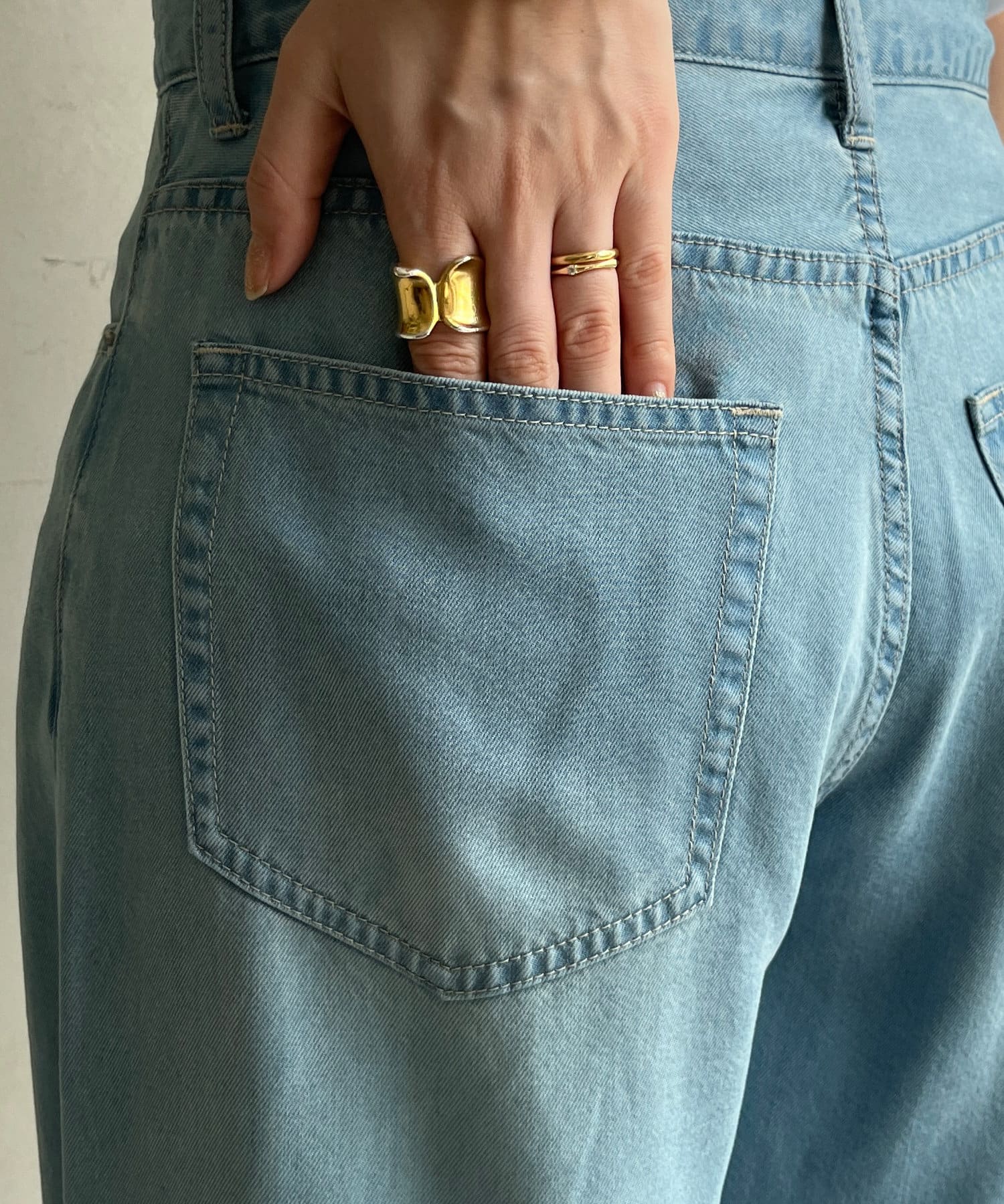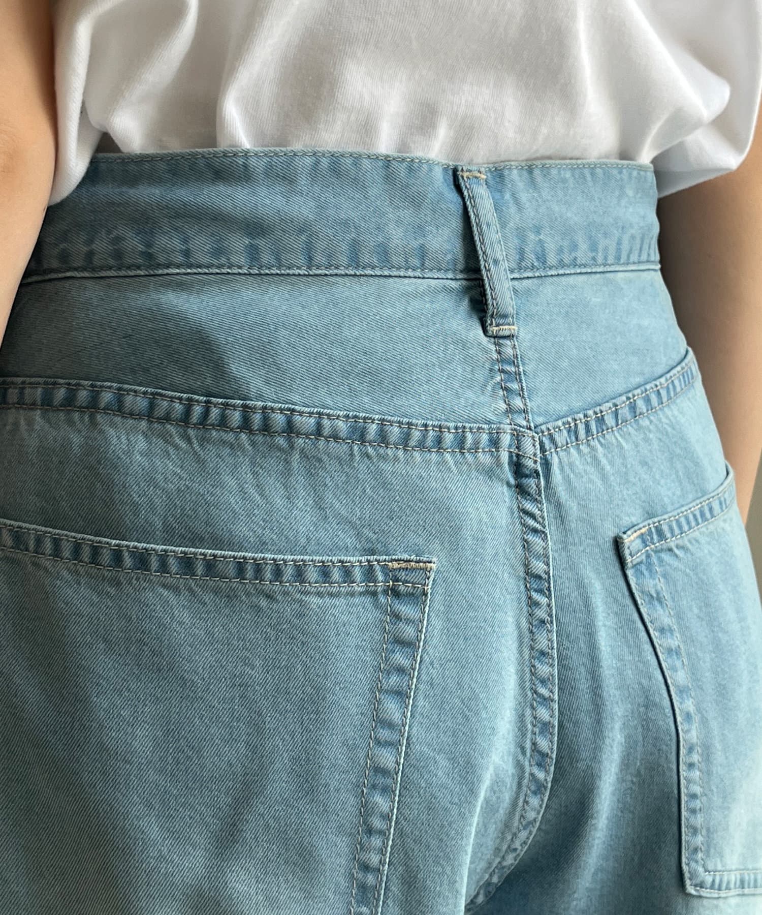 ウエストのドロストデザインがポイントのデニムパンツ。