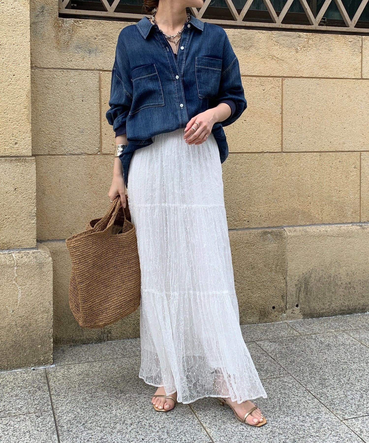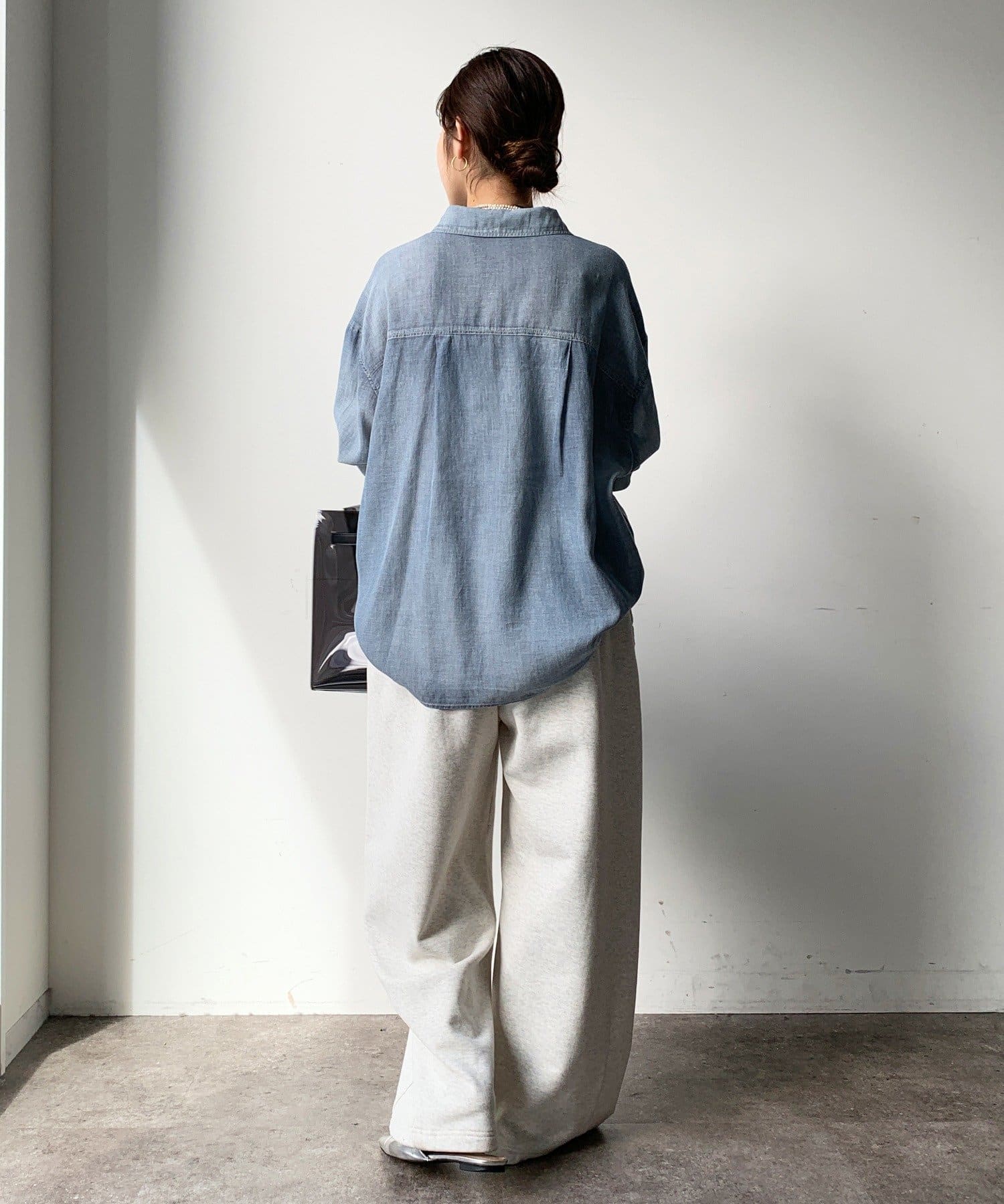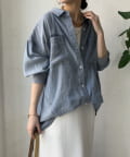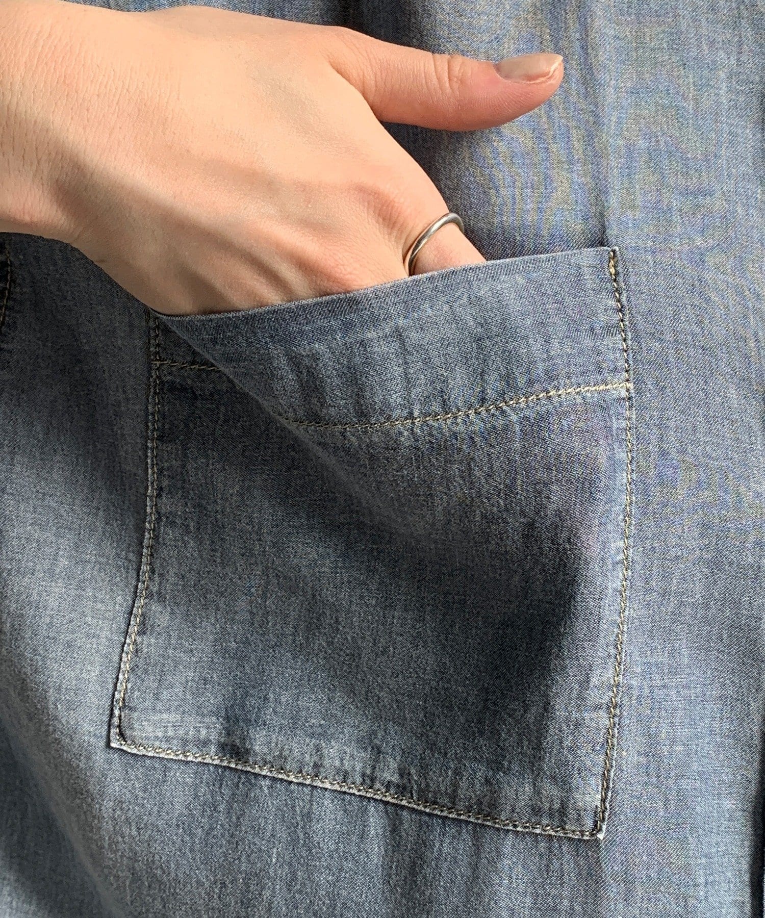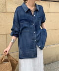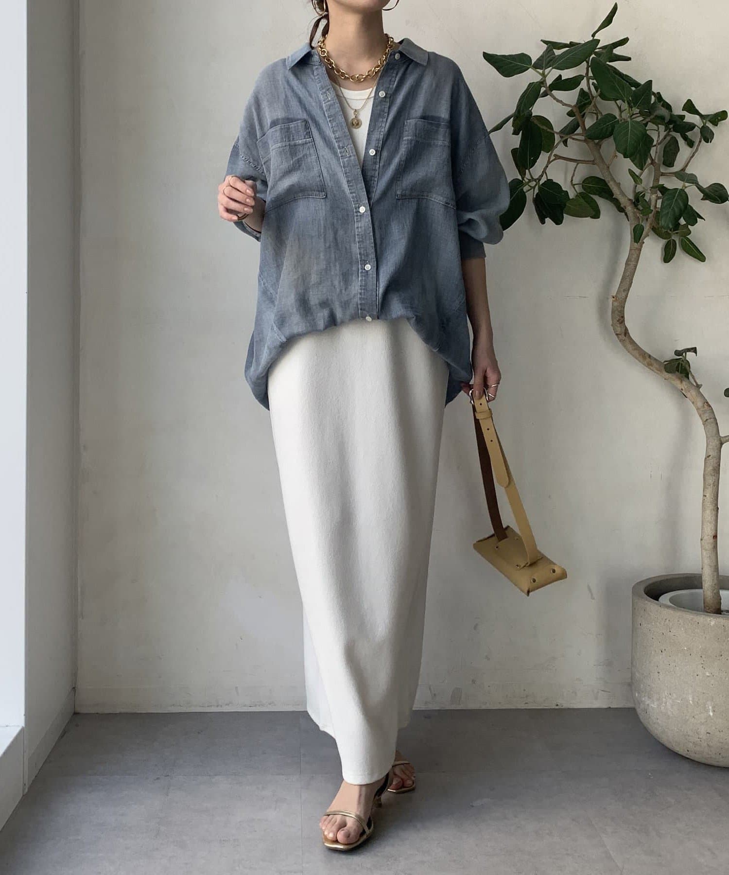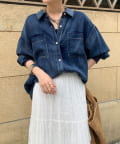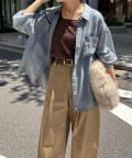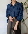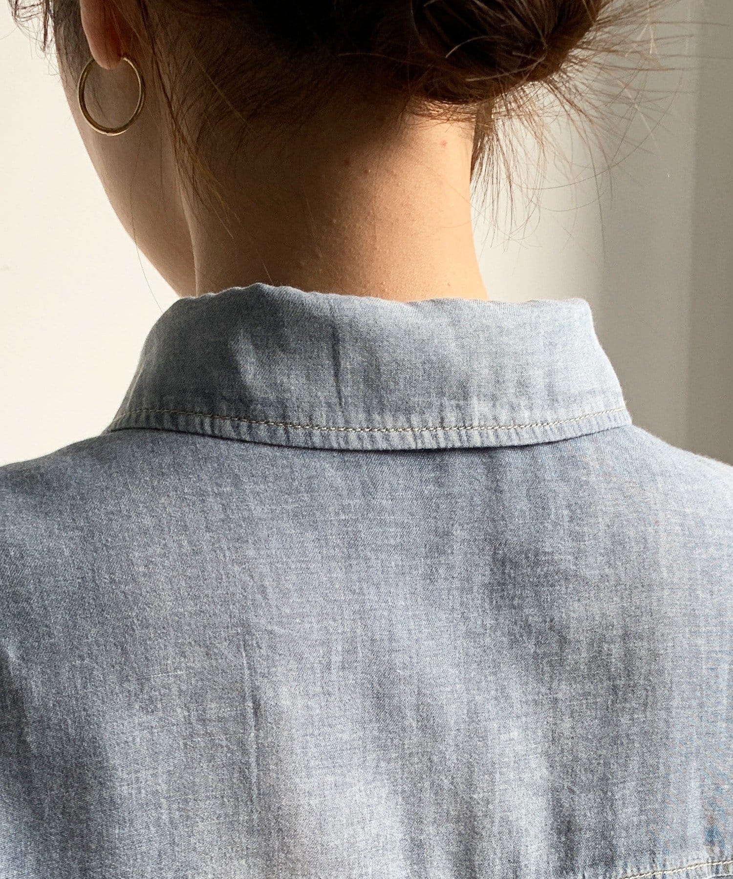 シアー感のあるデニムの素材で、新鮮に見せてくれるデニムシャツ。