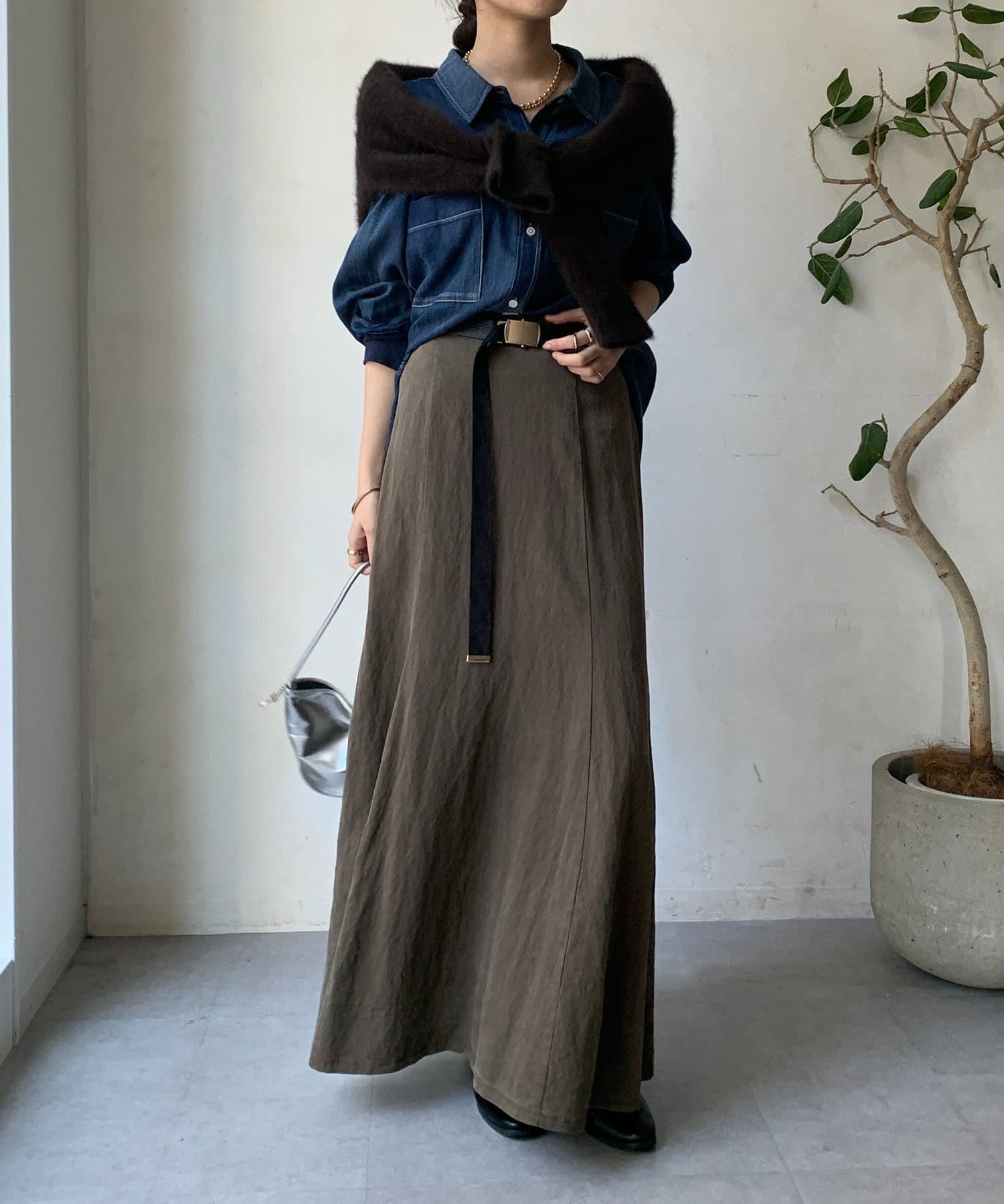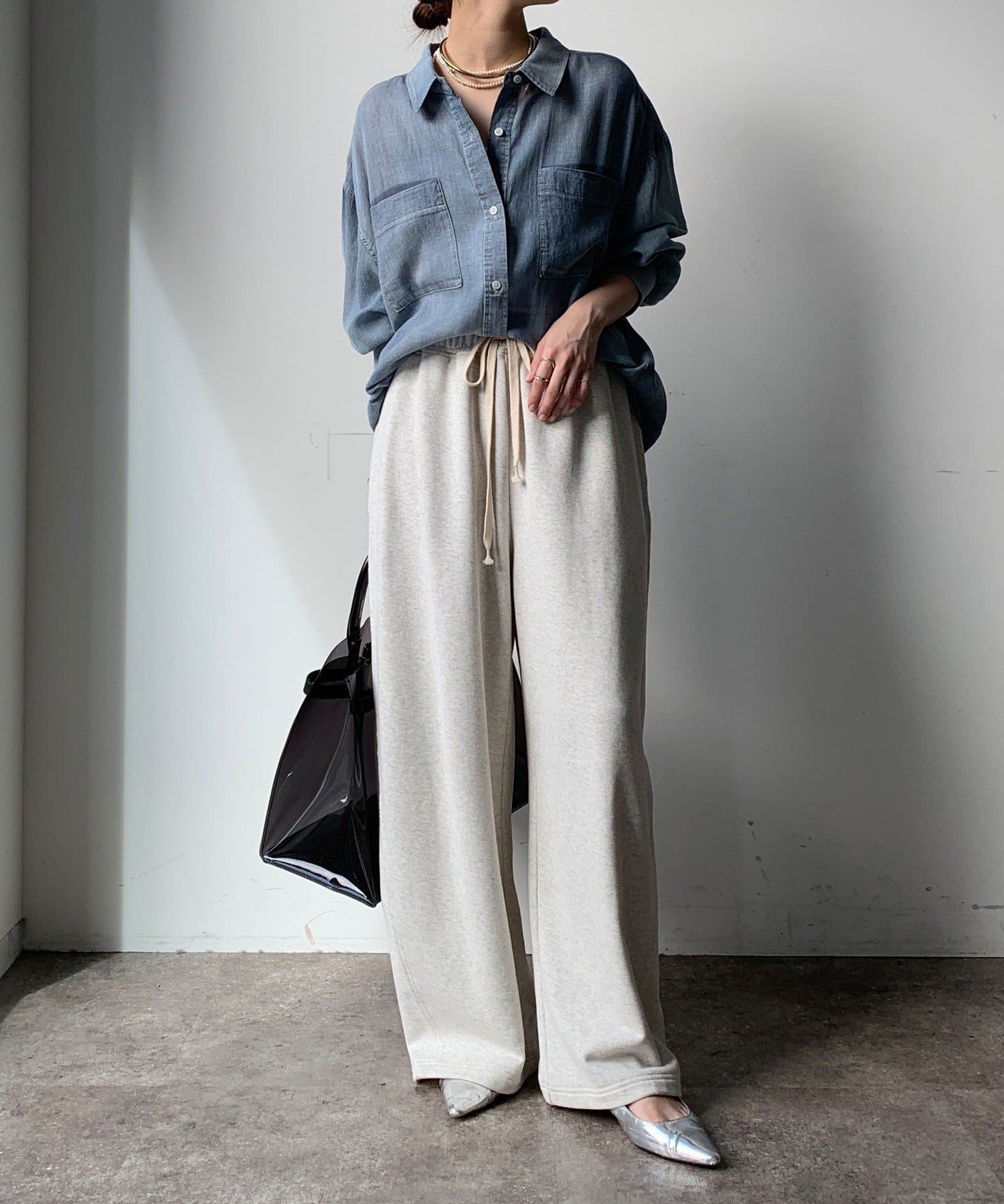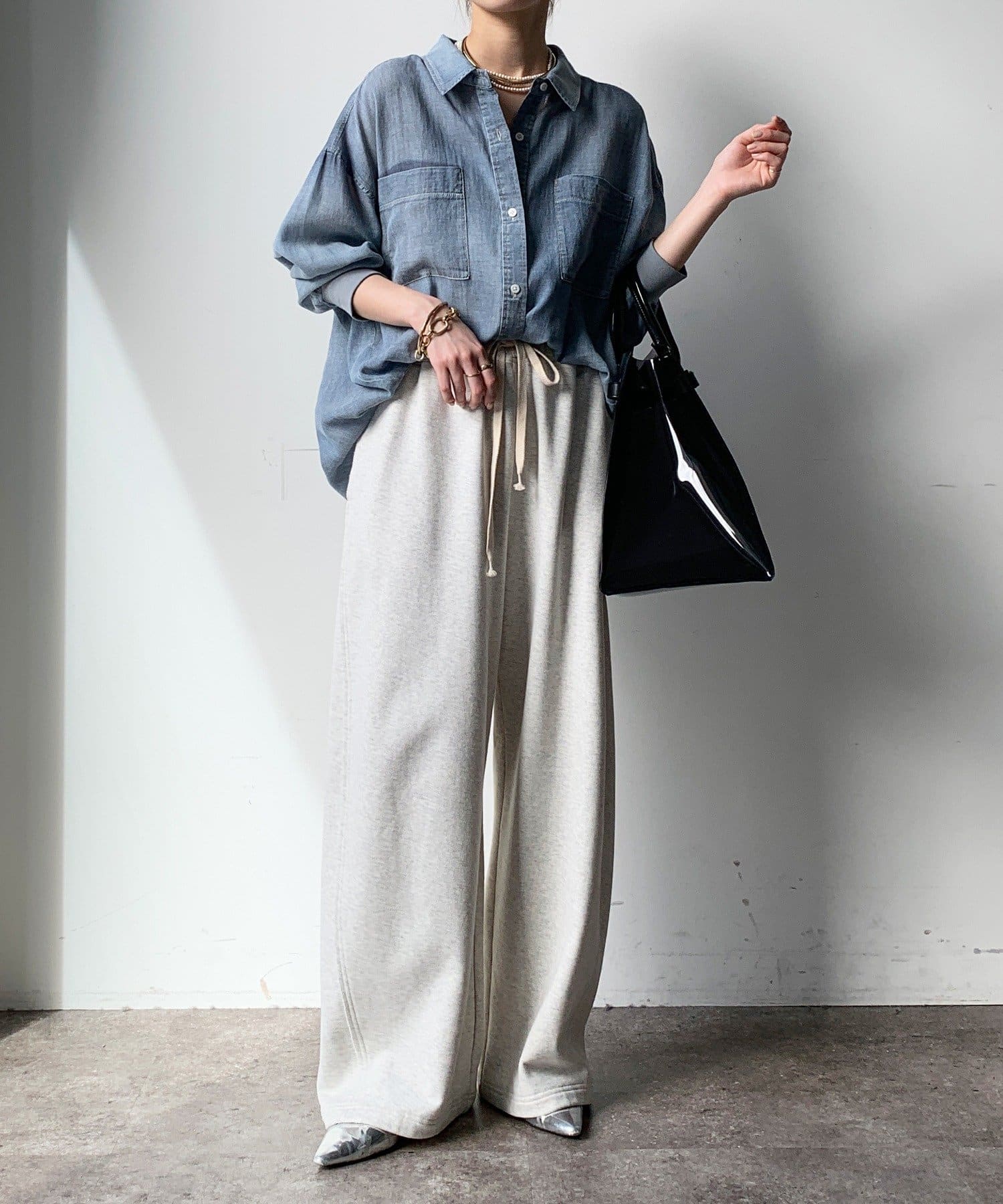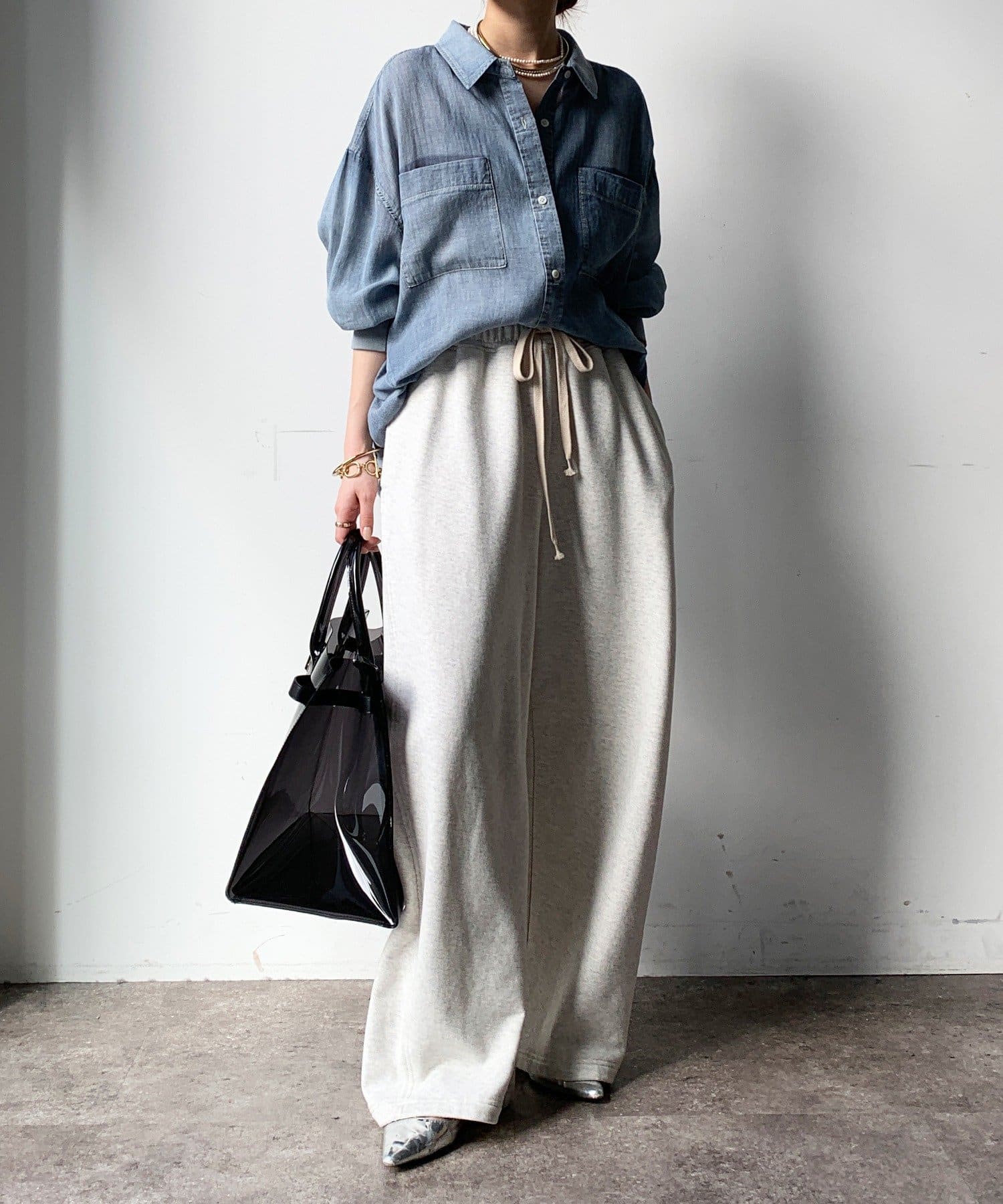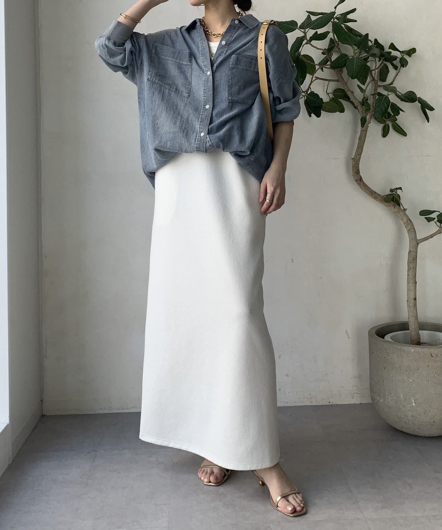 シアー感のあるデニムの素材で、新鮮に見せてくれるデニムシャツ。
