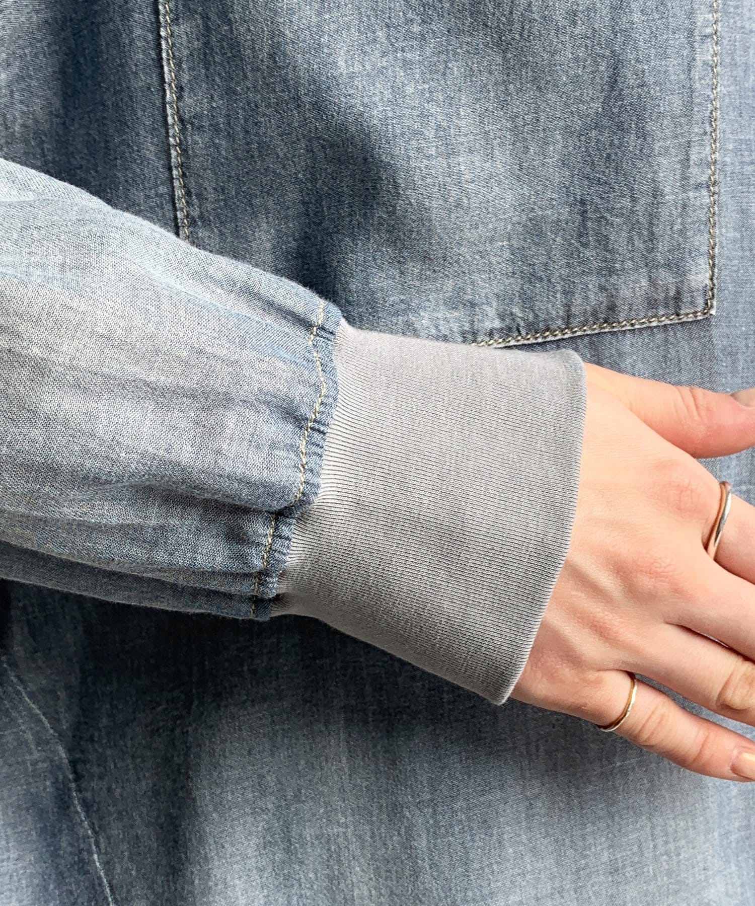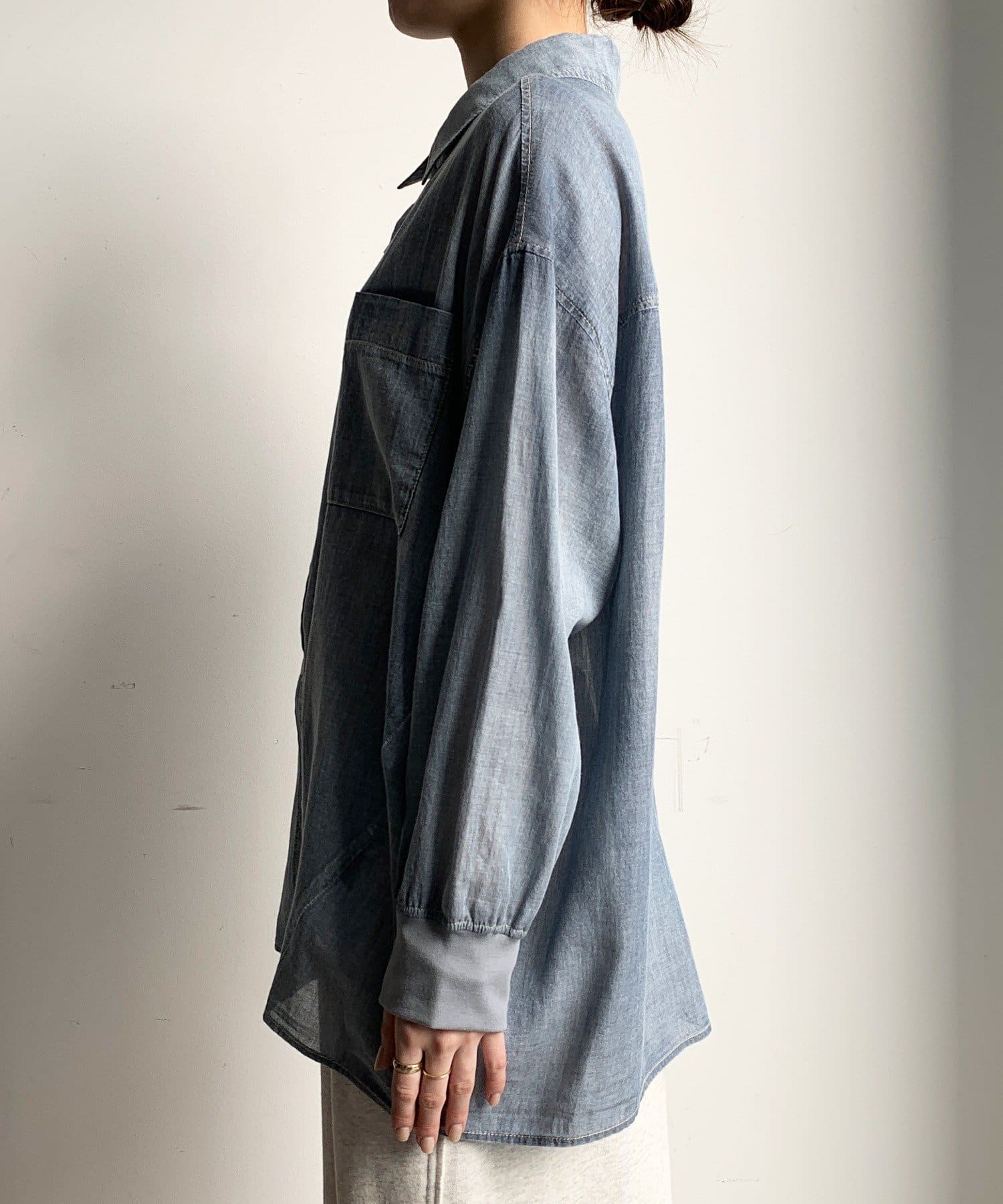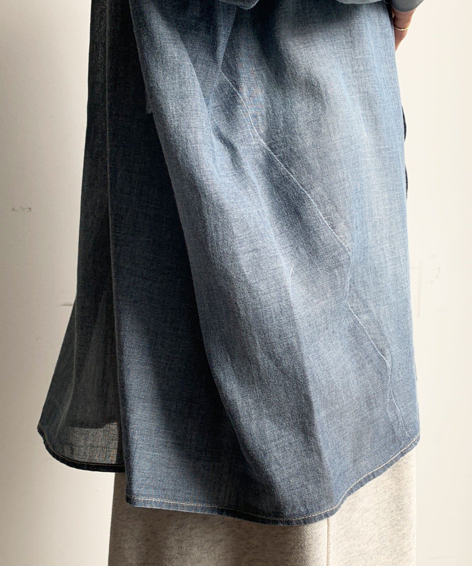 【累計販売数7000枚突破!】【透けデニムシャツ】袖リブシアーデニムシャツ