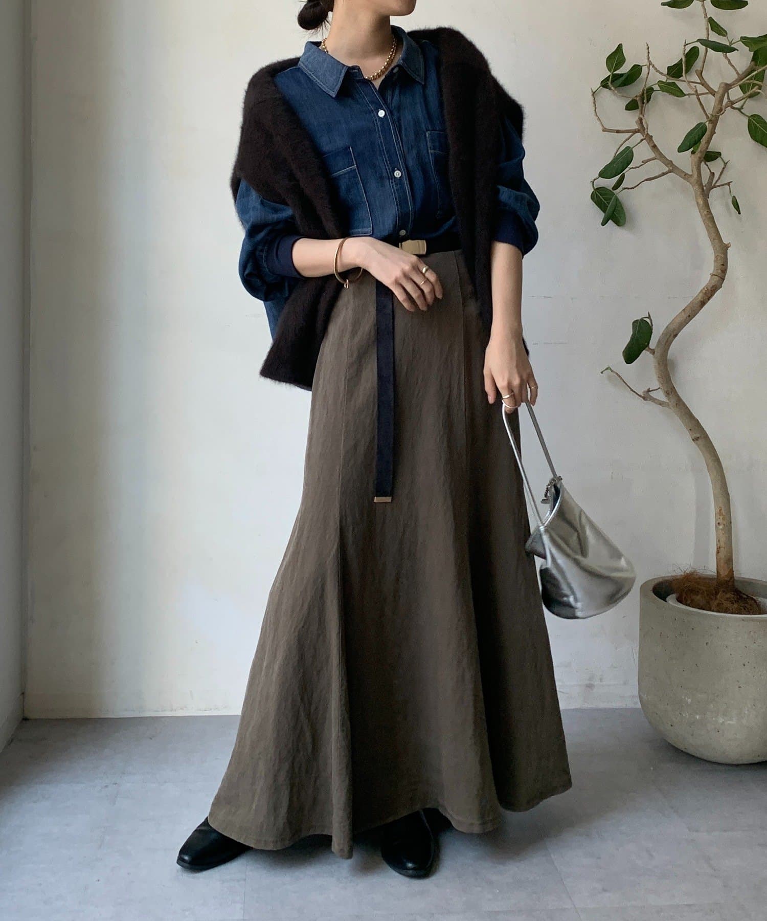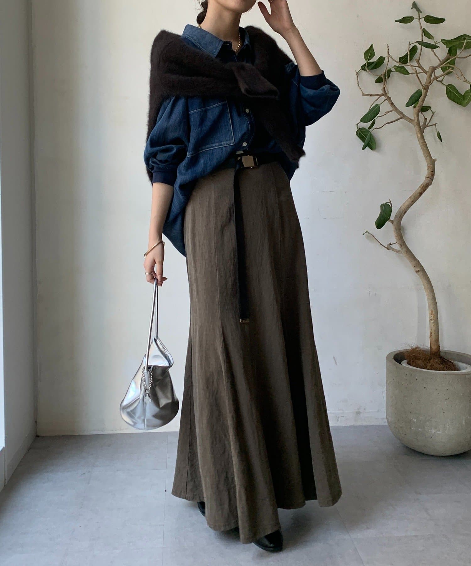 いつものデニムシャツスタイルを新鮮に見せてくれる1着