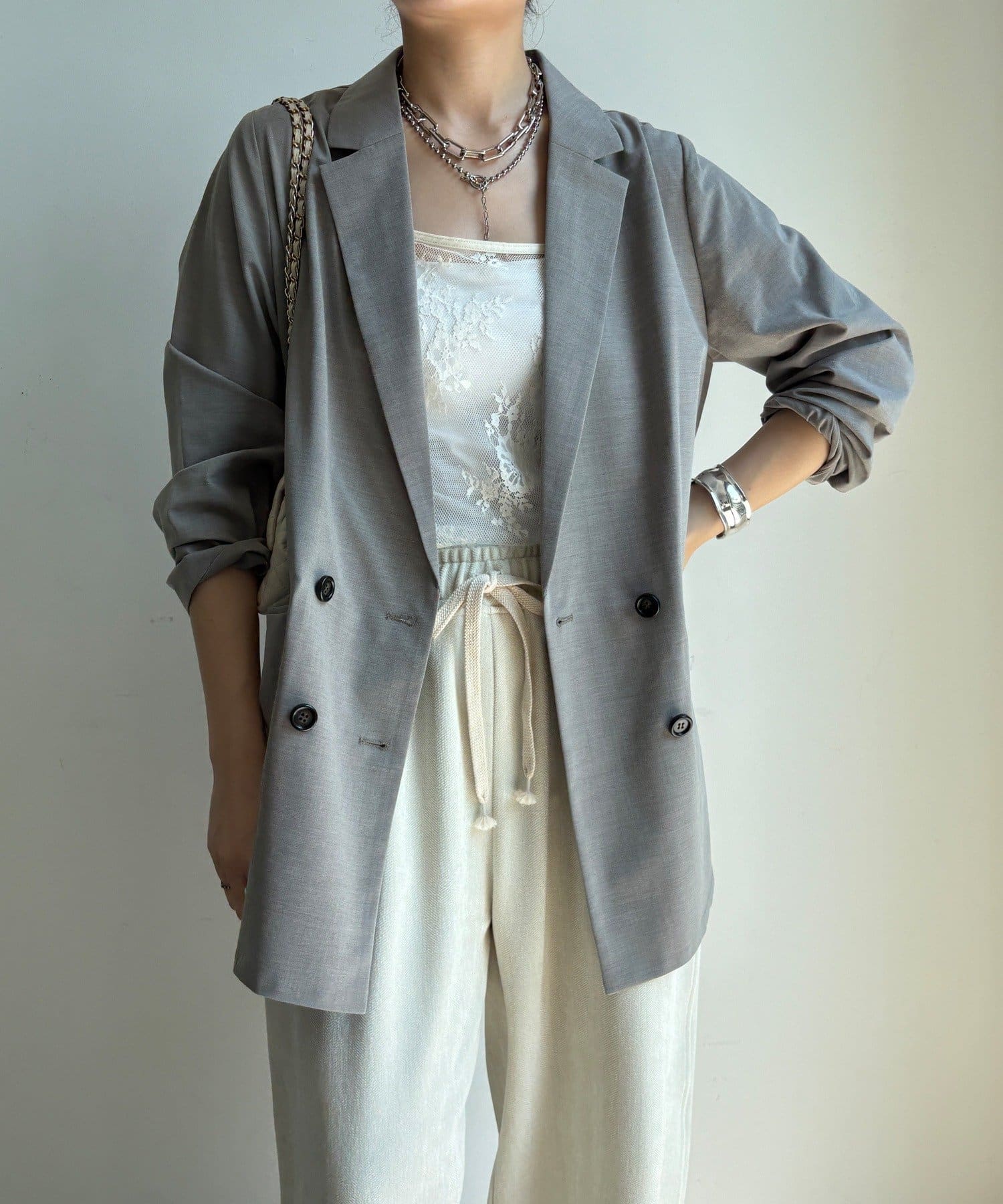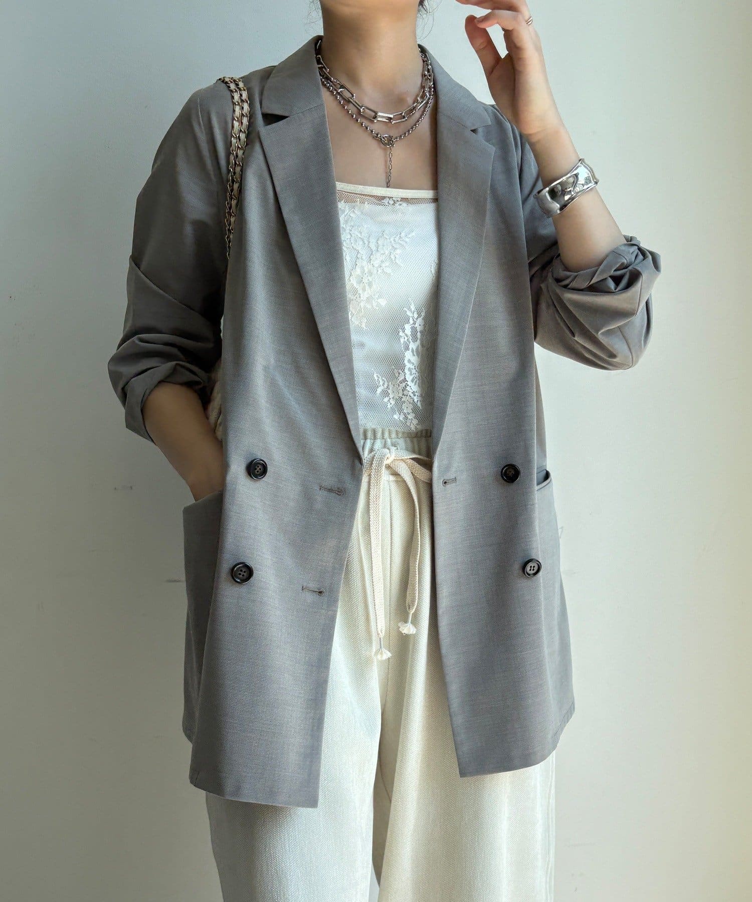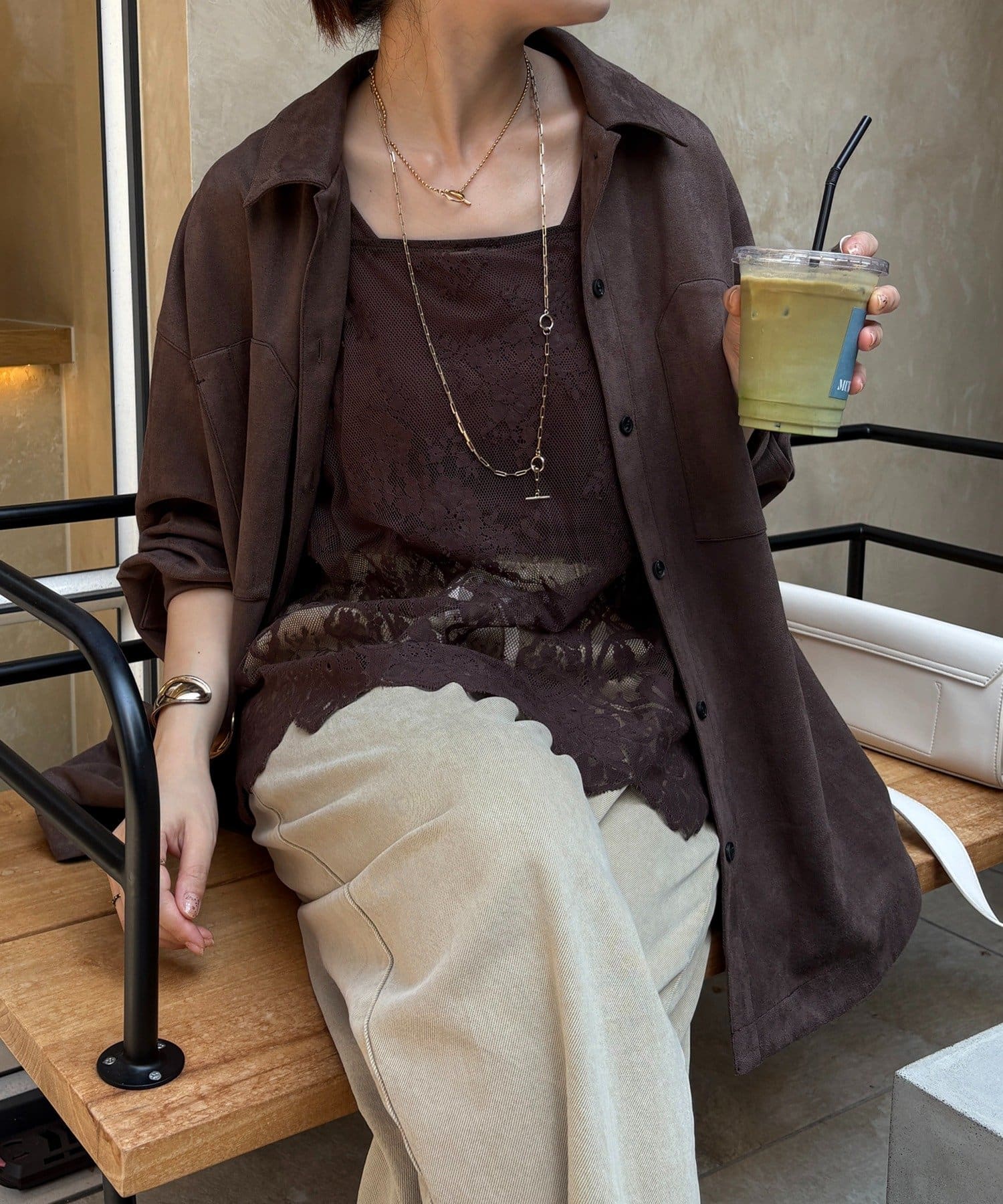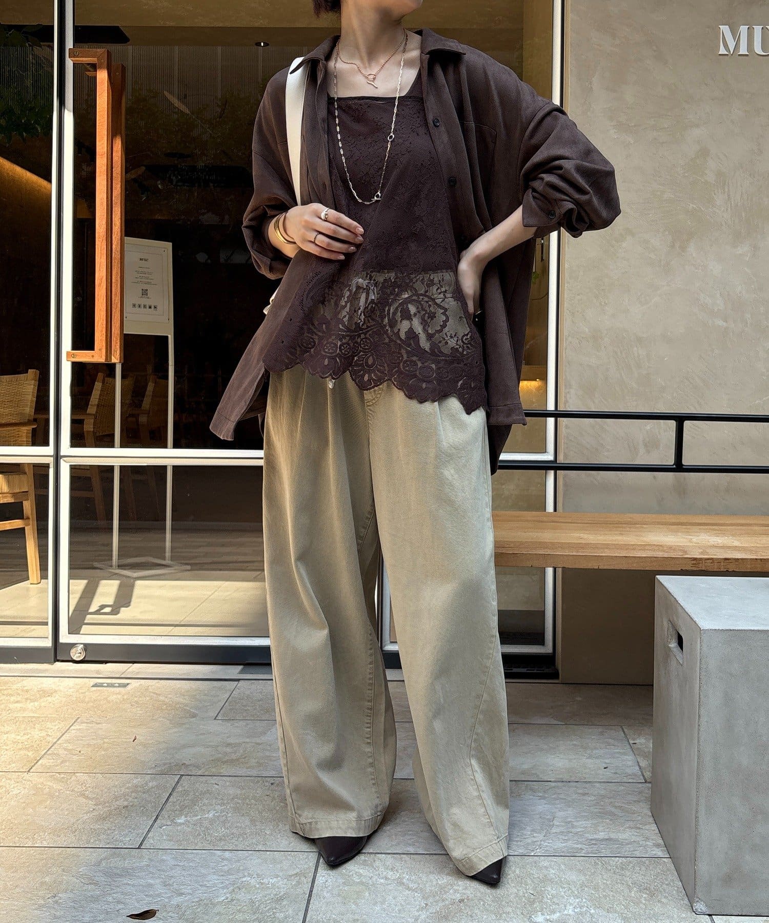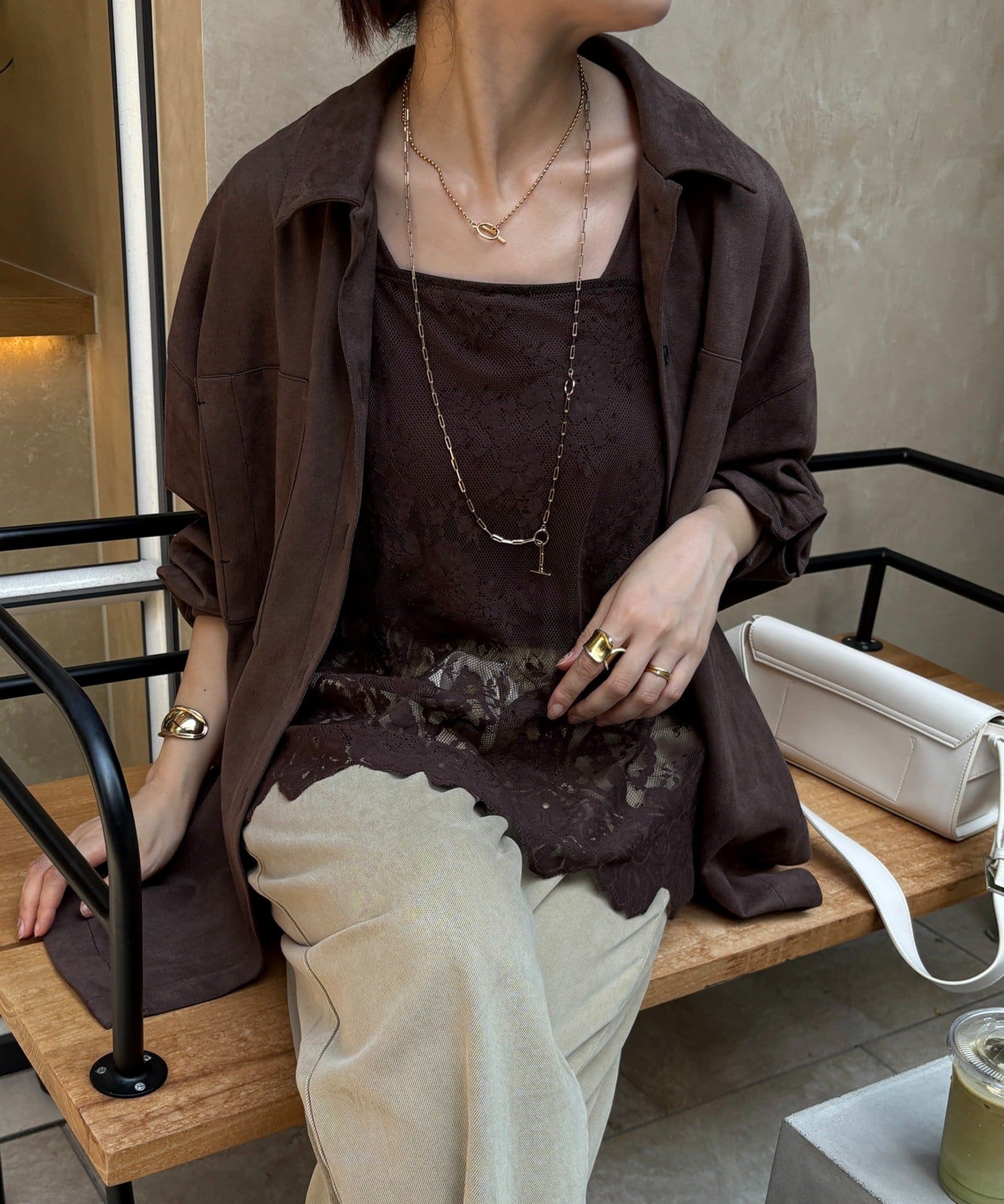 長めの丈がボトムスと被り、透け感のあるレースがスタイリングのアクセントになってくれます!