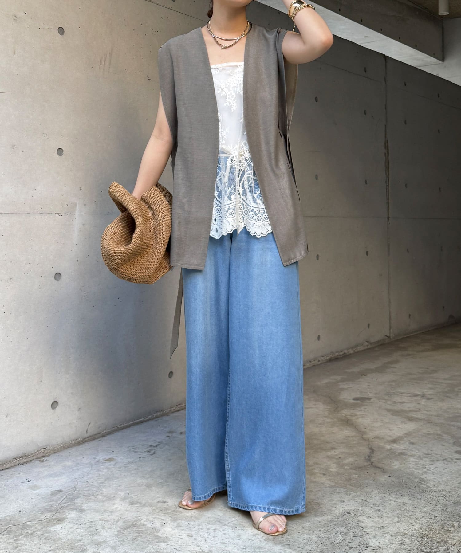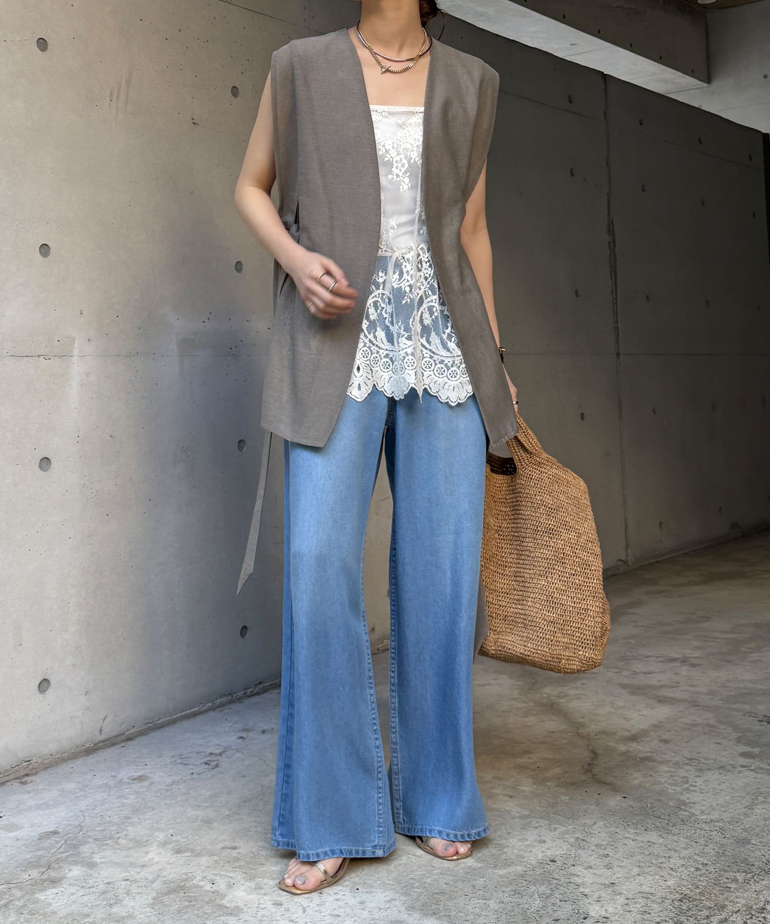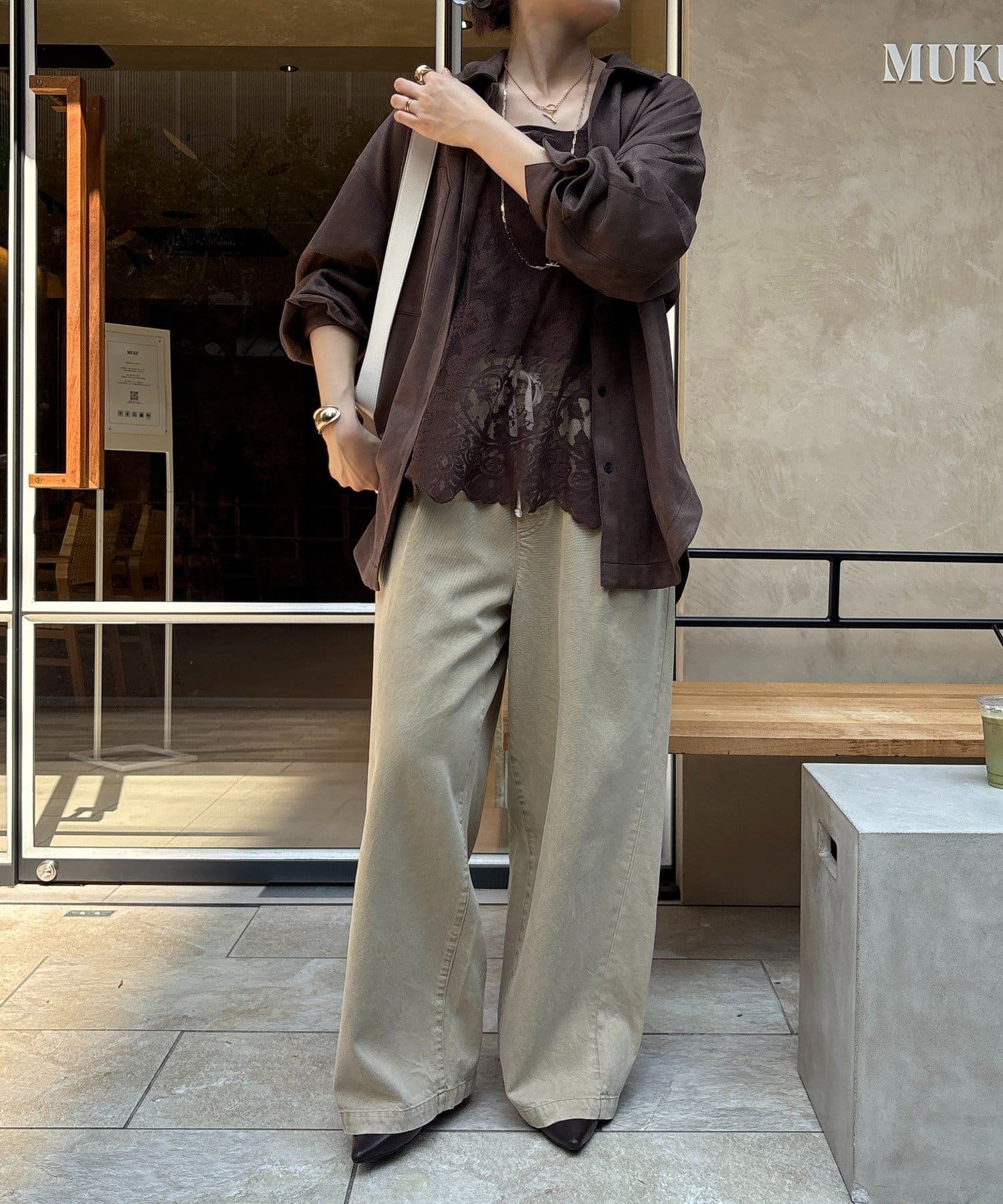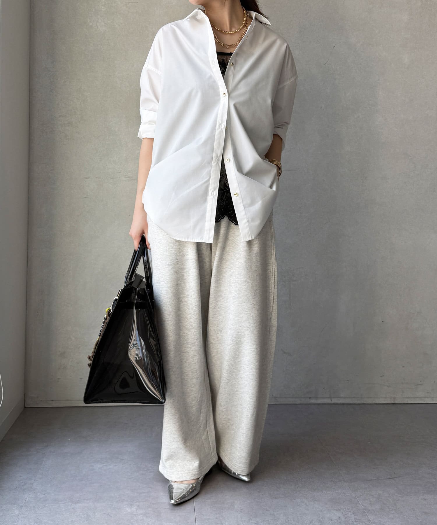 長めの丈がボトムスと被り、透け感のあるレースがスタイリングのアクセントになってくれます!