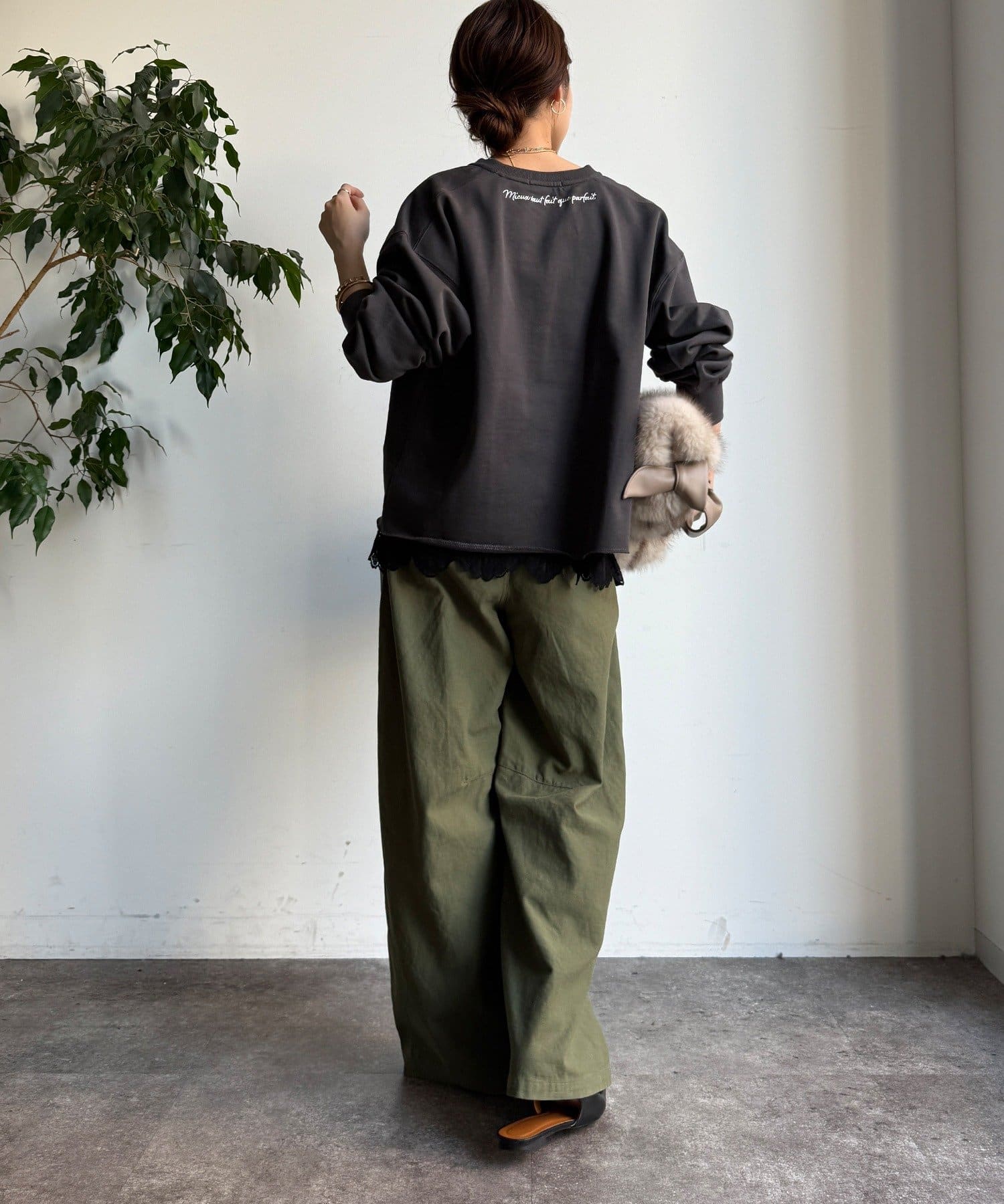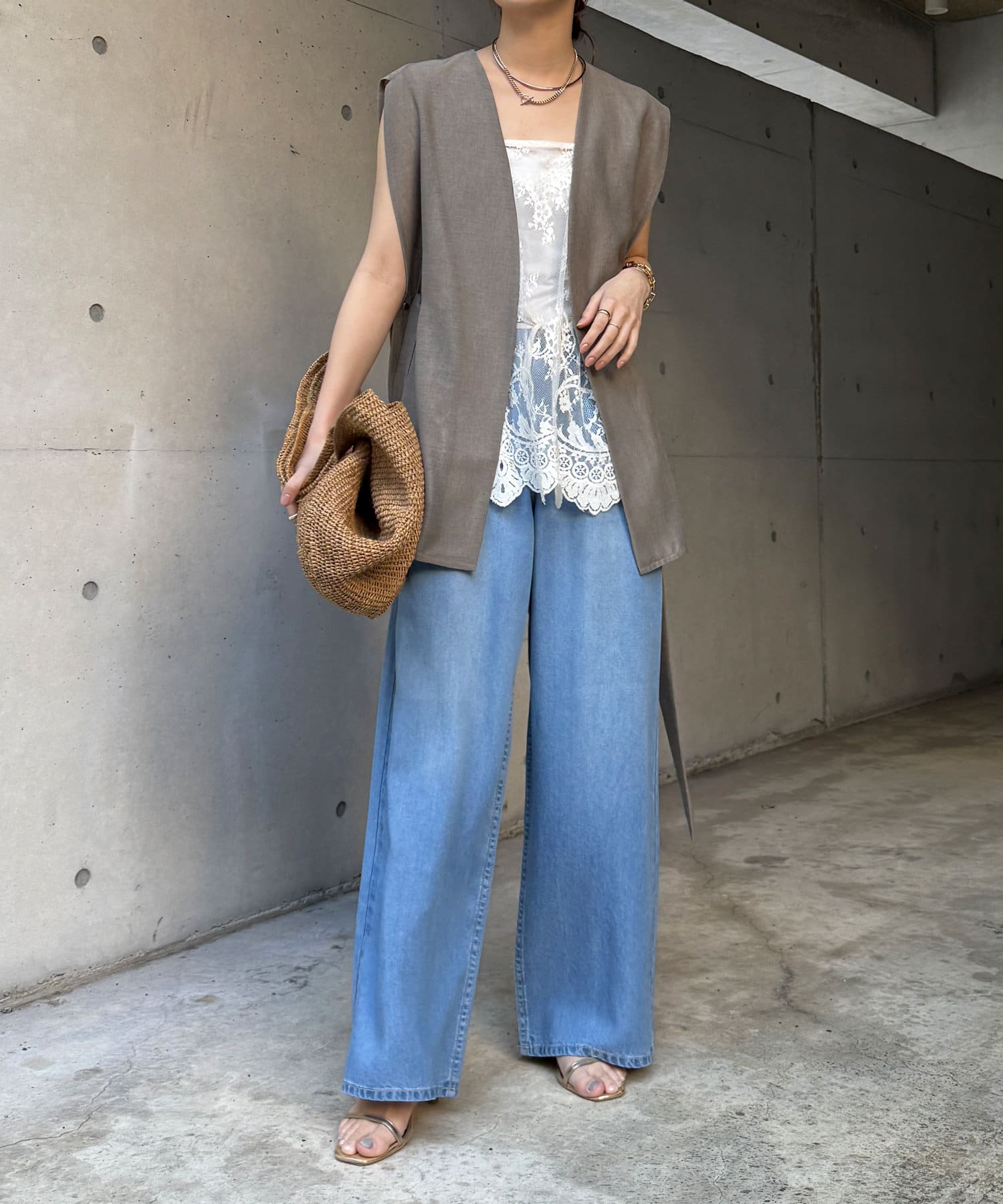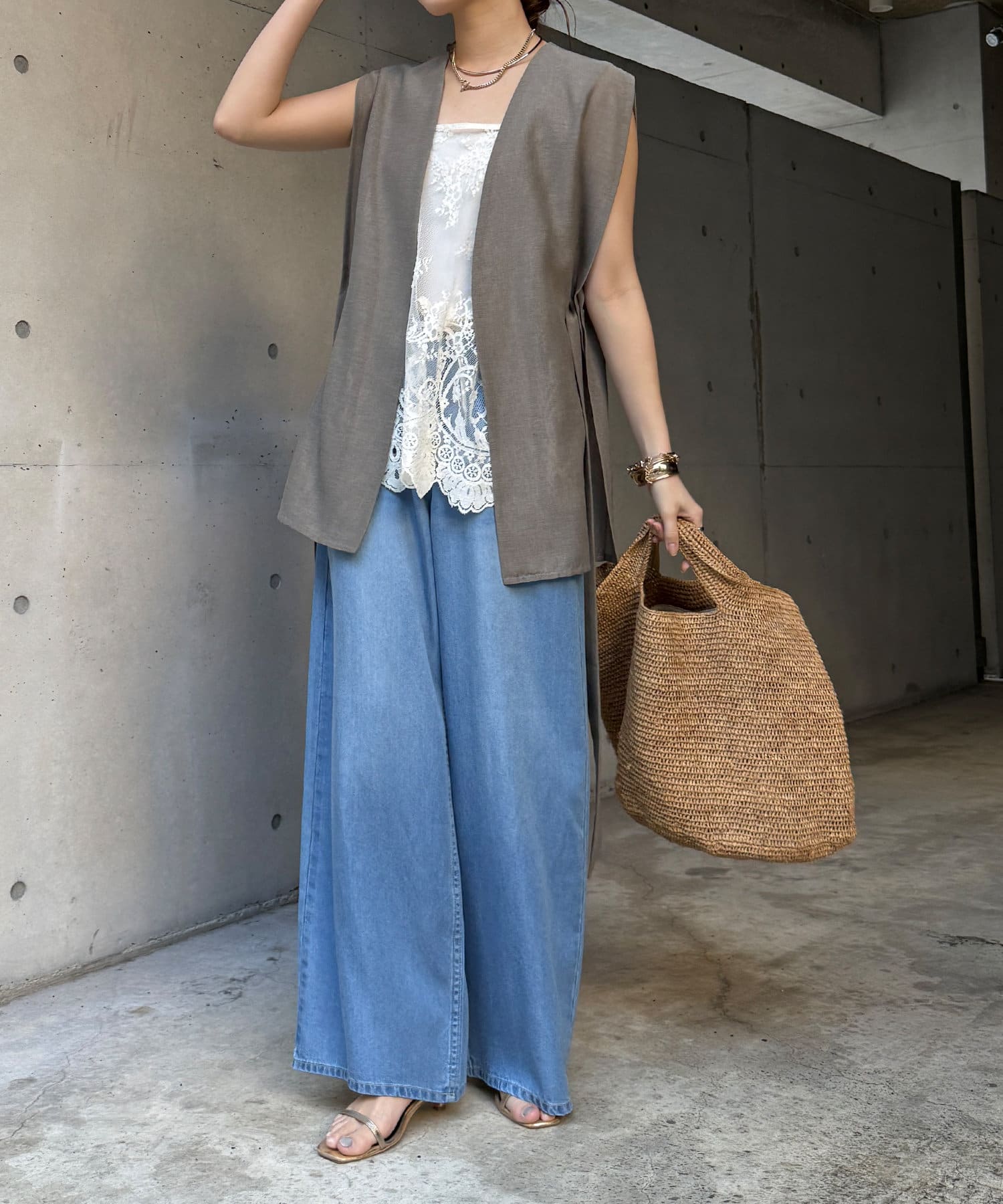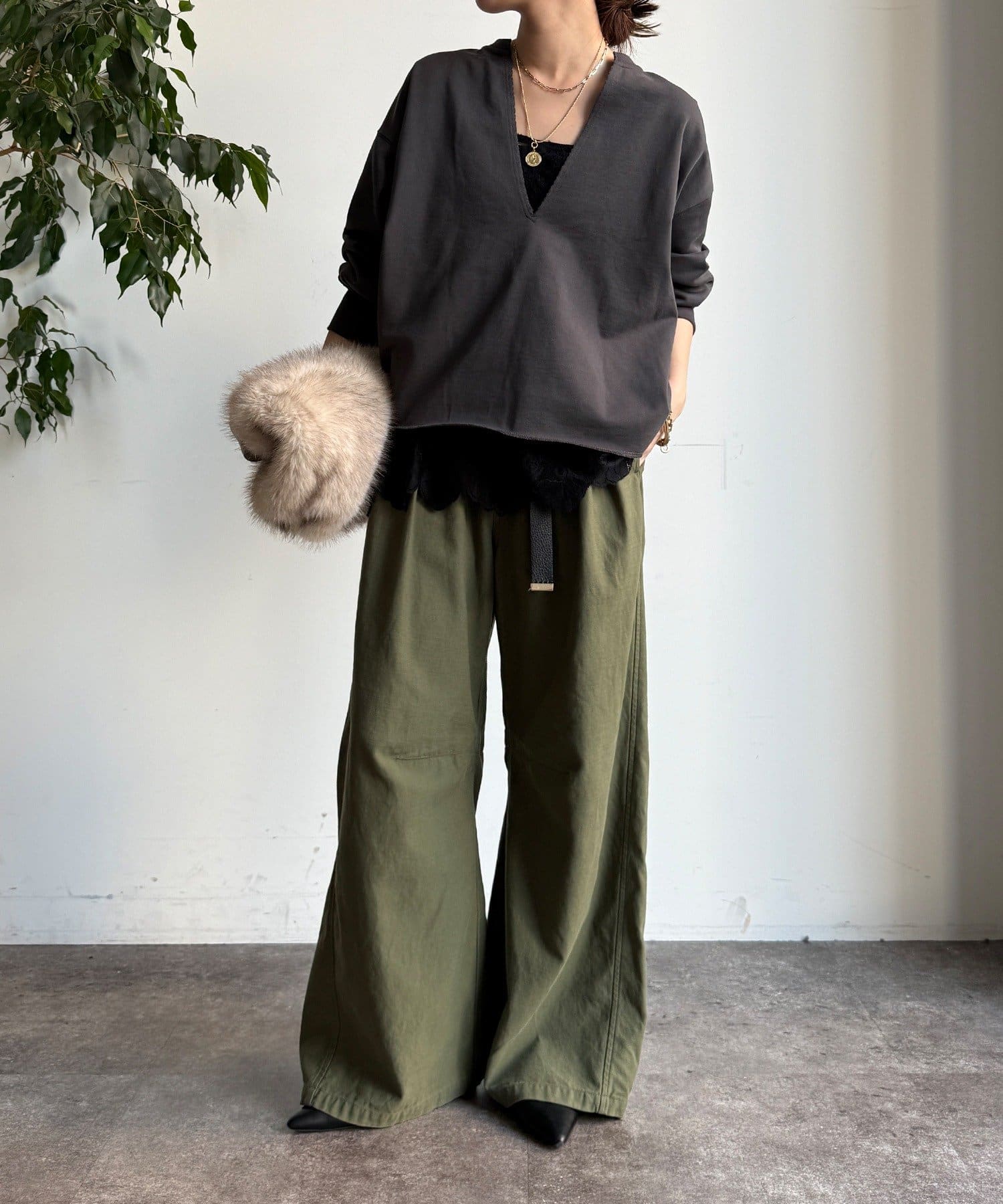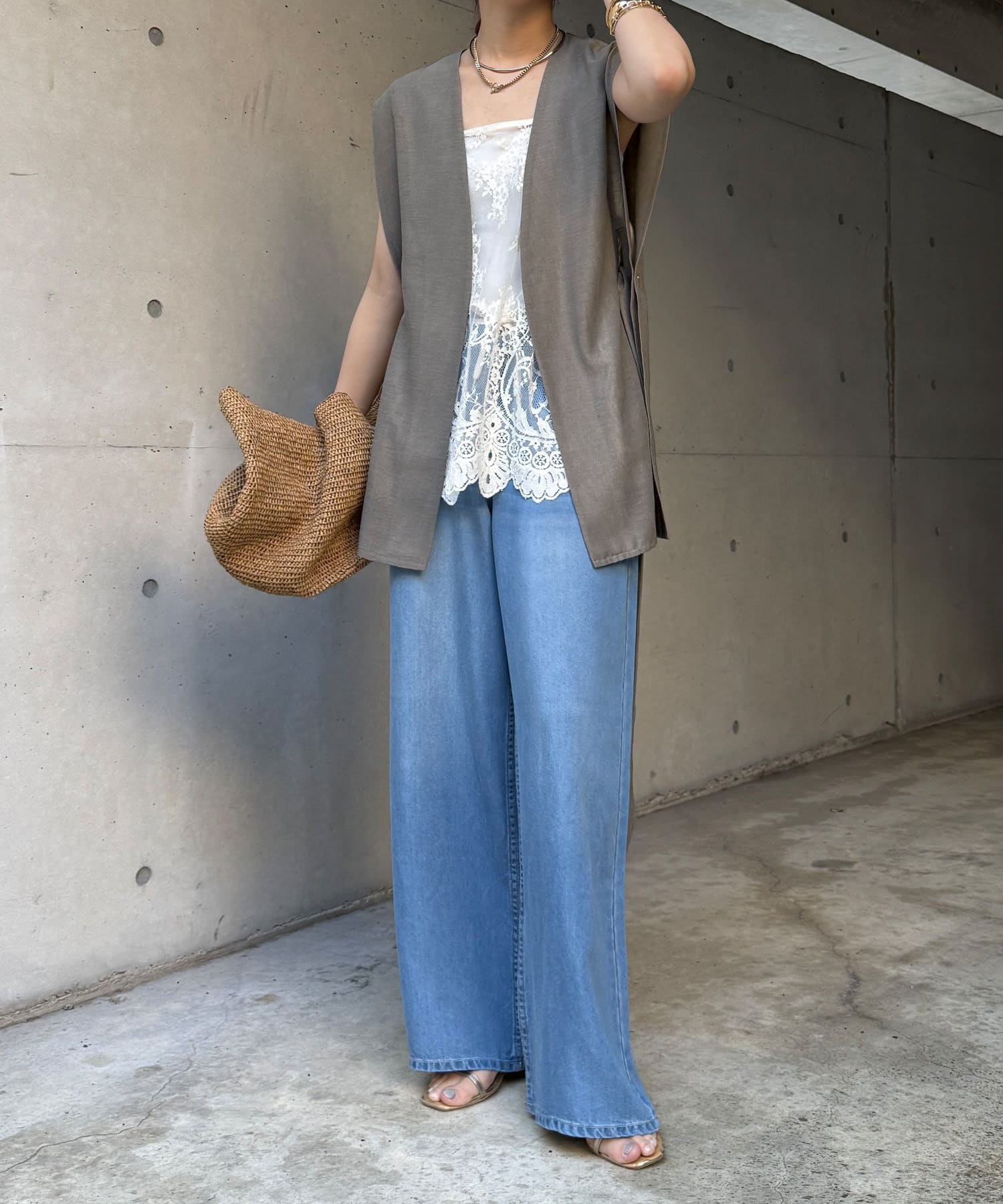 長めの丈がボトムスと被り、透け感のあるレースがスタイリングのアクセントになってくれます!