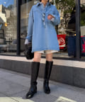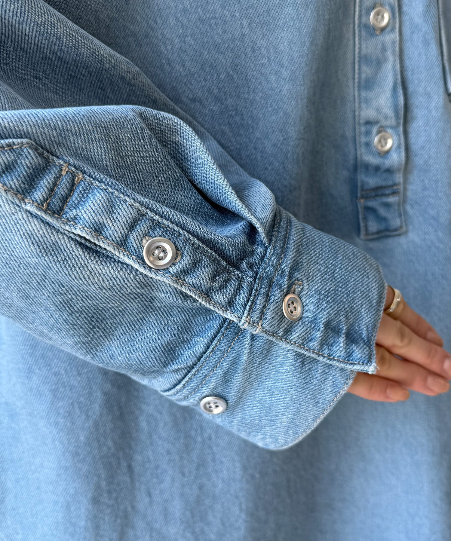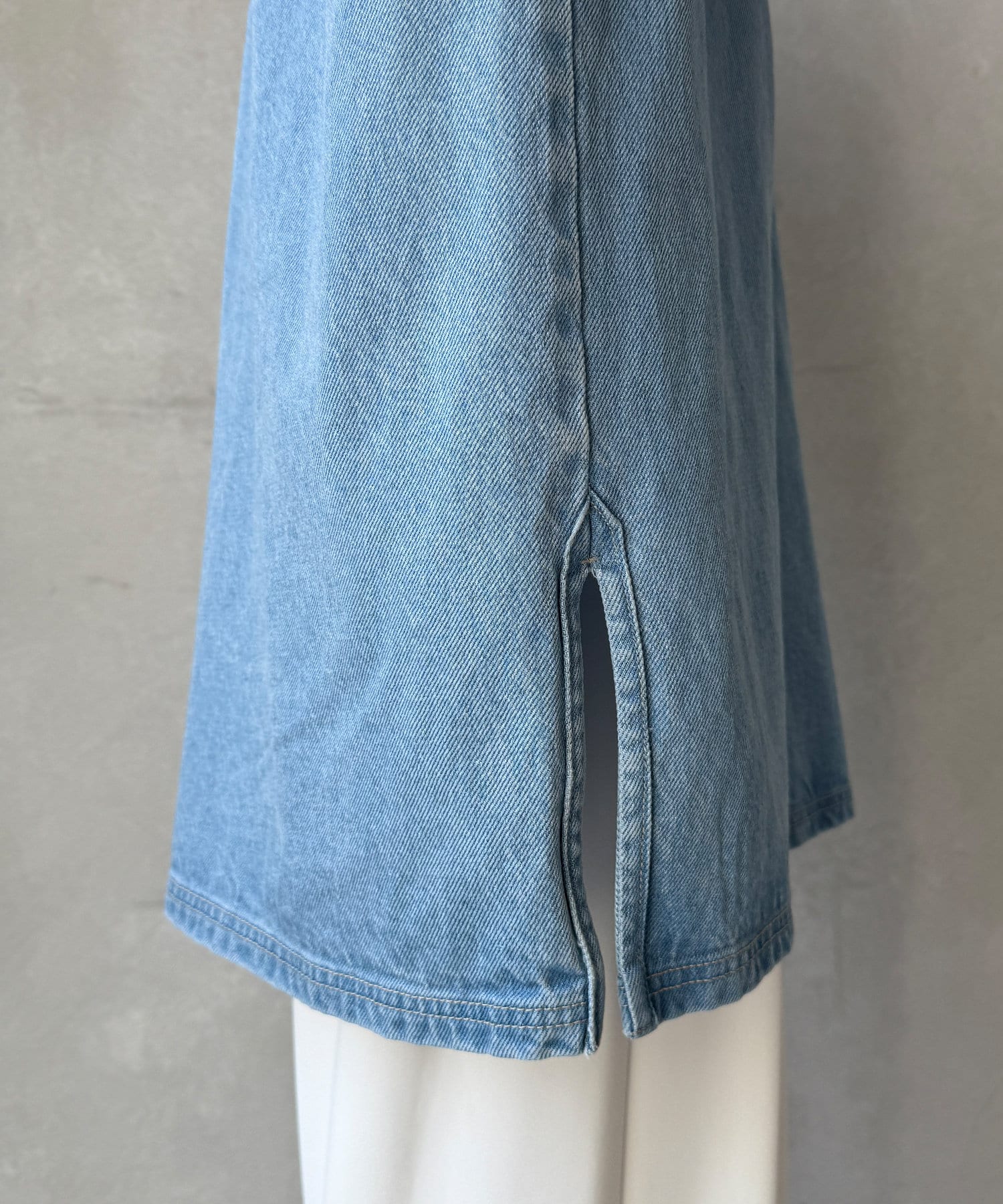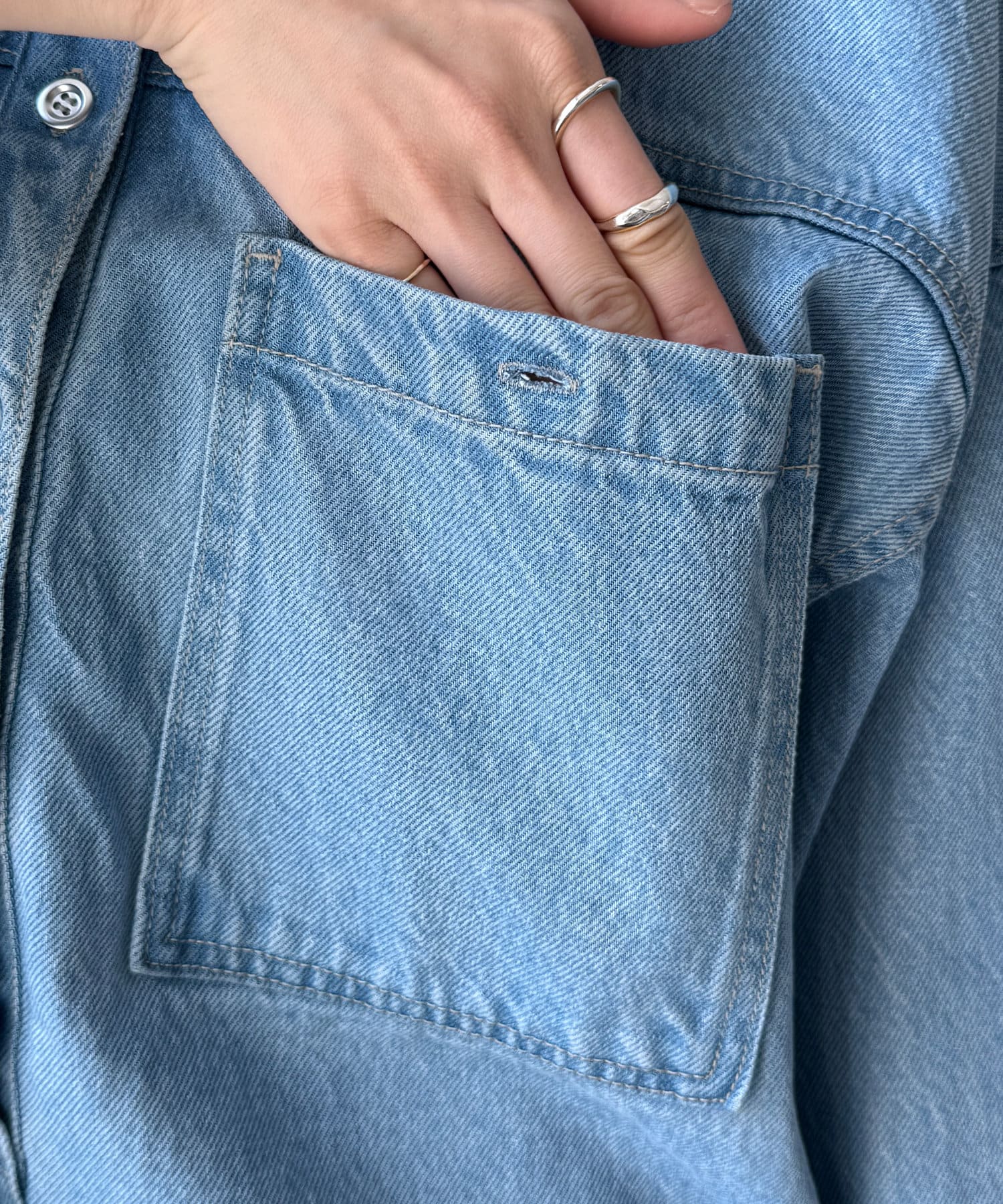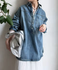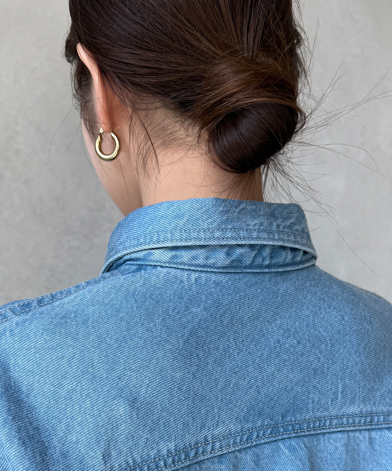 デニム素材ながらも、柔らかな素材感とややオーバーサイズなシルエットが、こなれ感を演出。