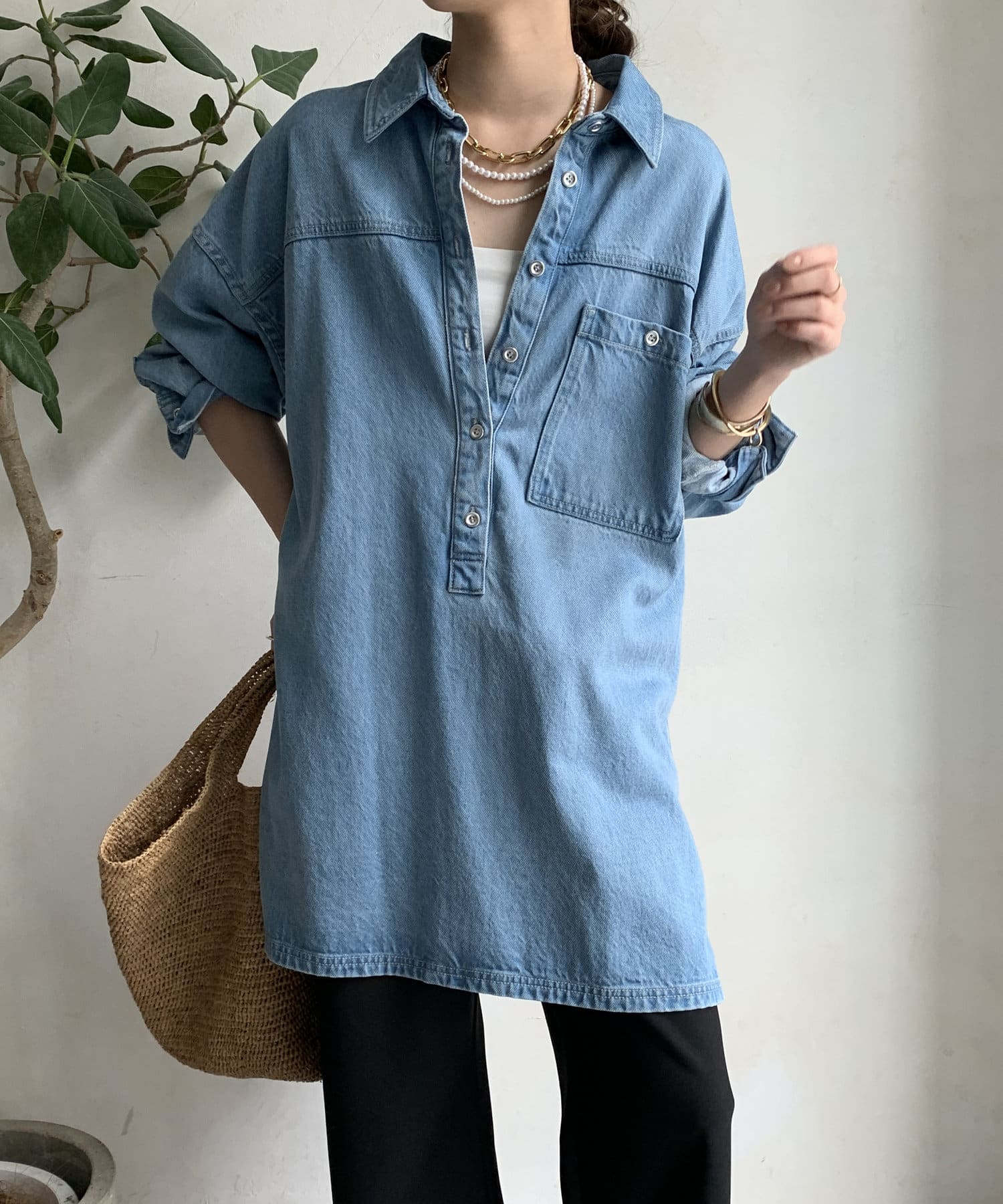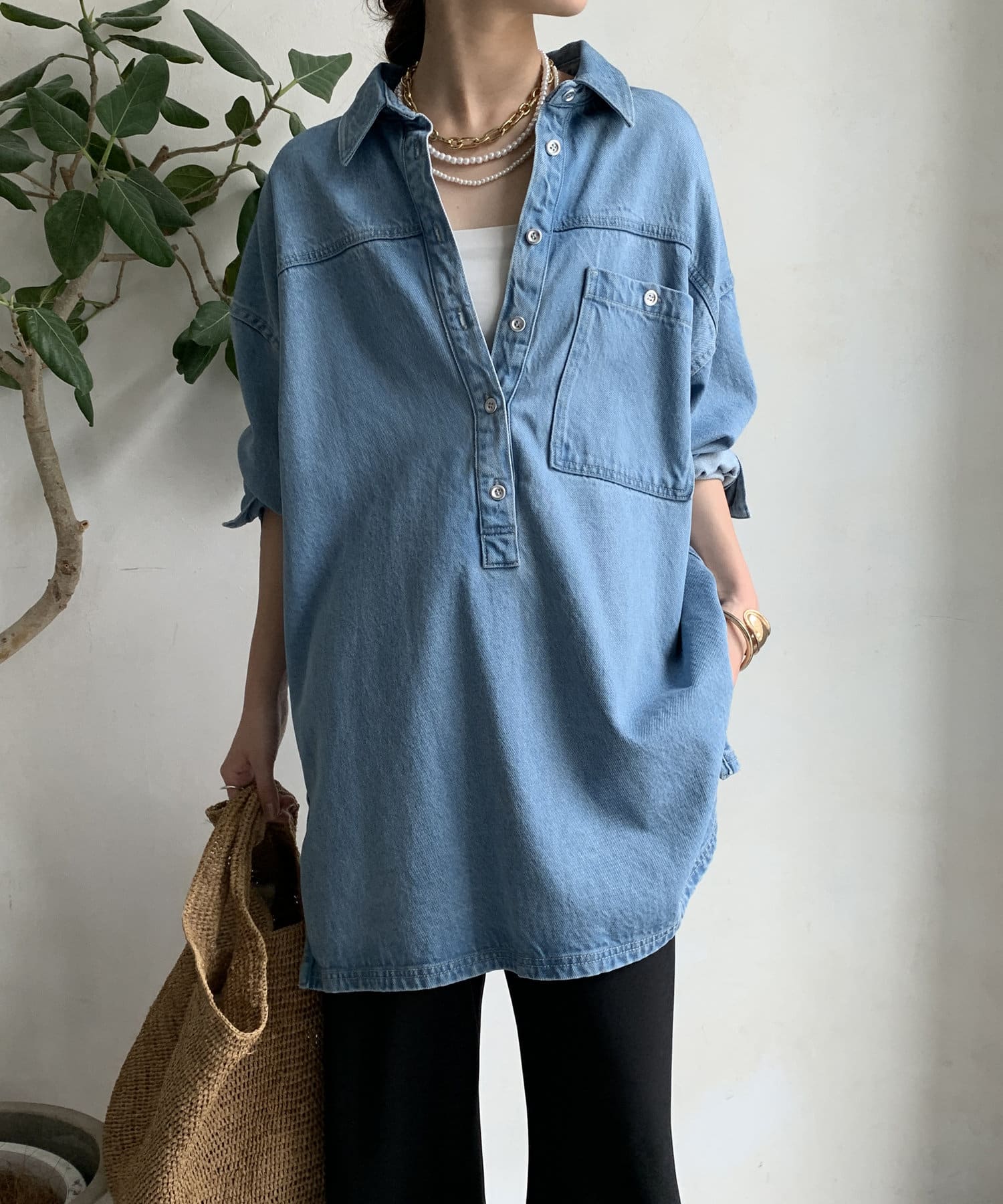 ざっくりとオーバーシルエットで着られるチュニックシャツ。