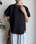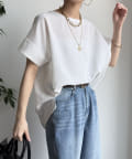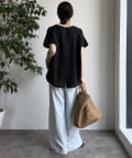 単色でシンプルながら、フロント裾や背中の切り替えデザイン、バックのスリットデザインが目を惹くTシャツ。