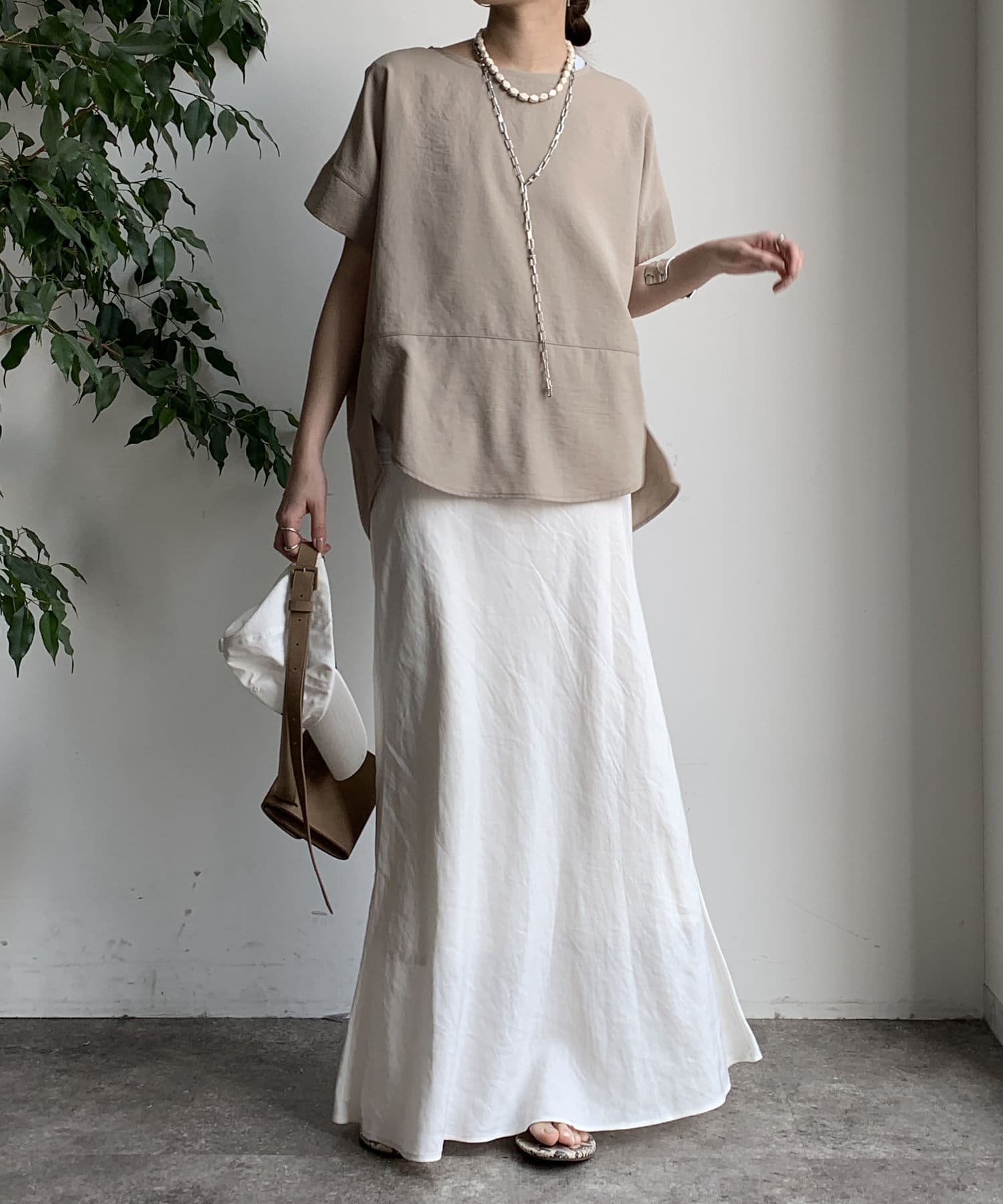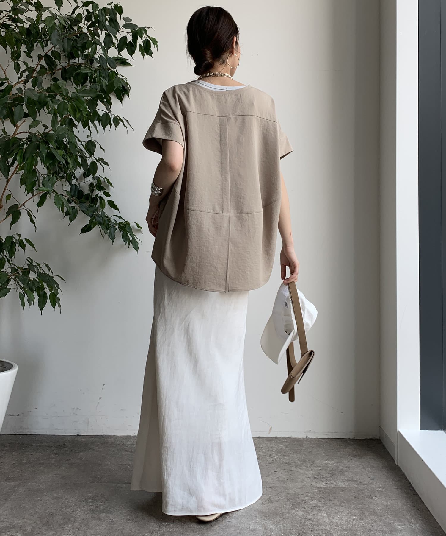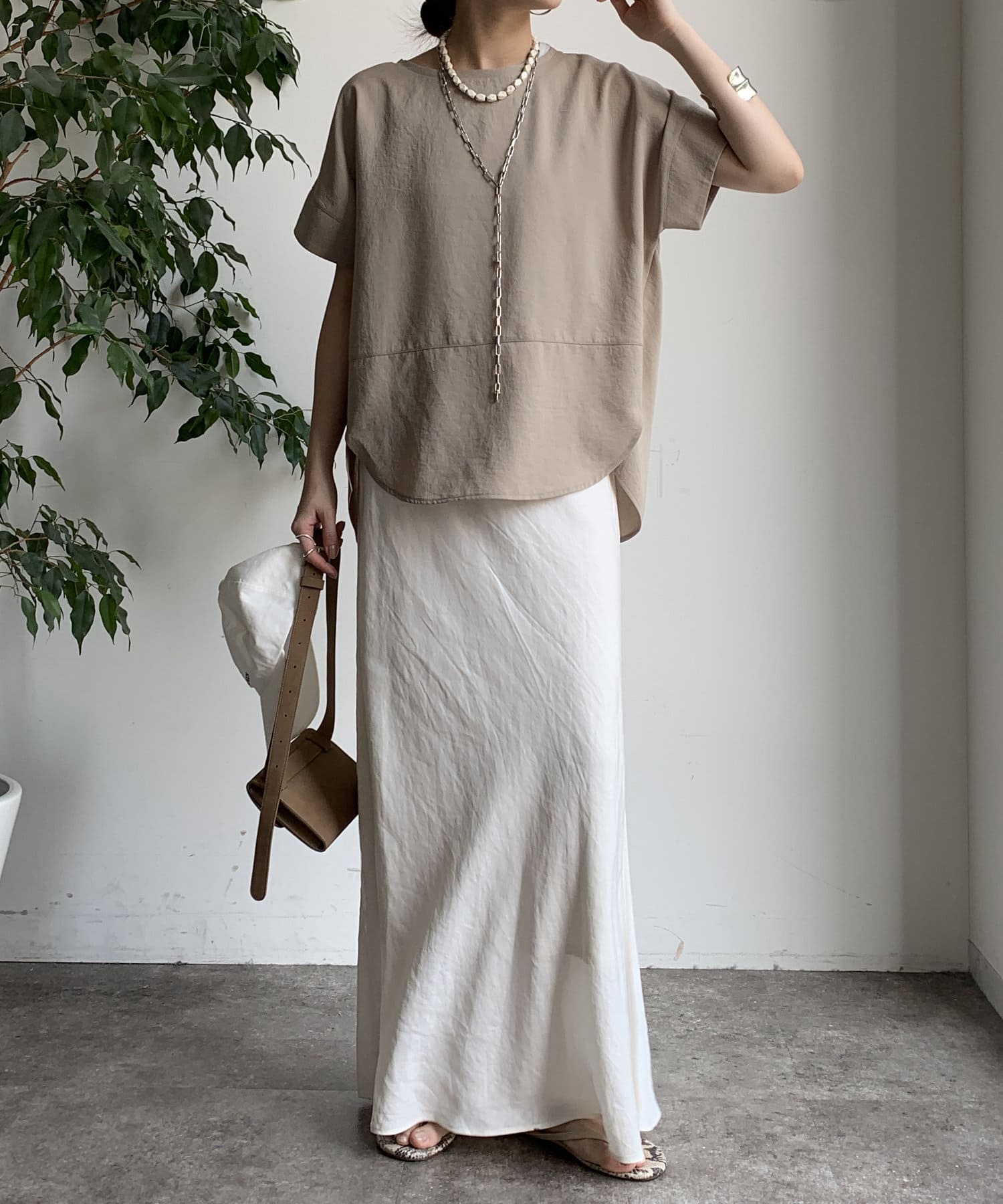 ボディラインを拾わずにすとんと落ち、ゆとり感のあるシルエットは、風通しもよくこれからの季節にぴったり。