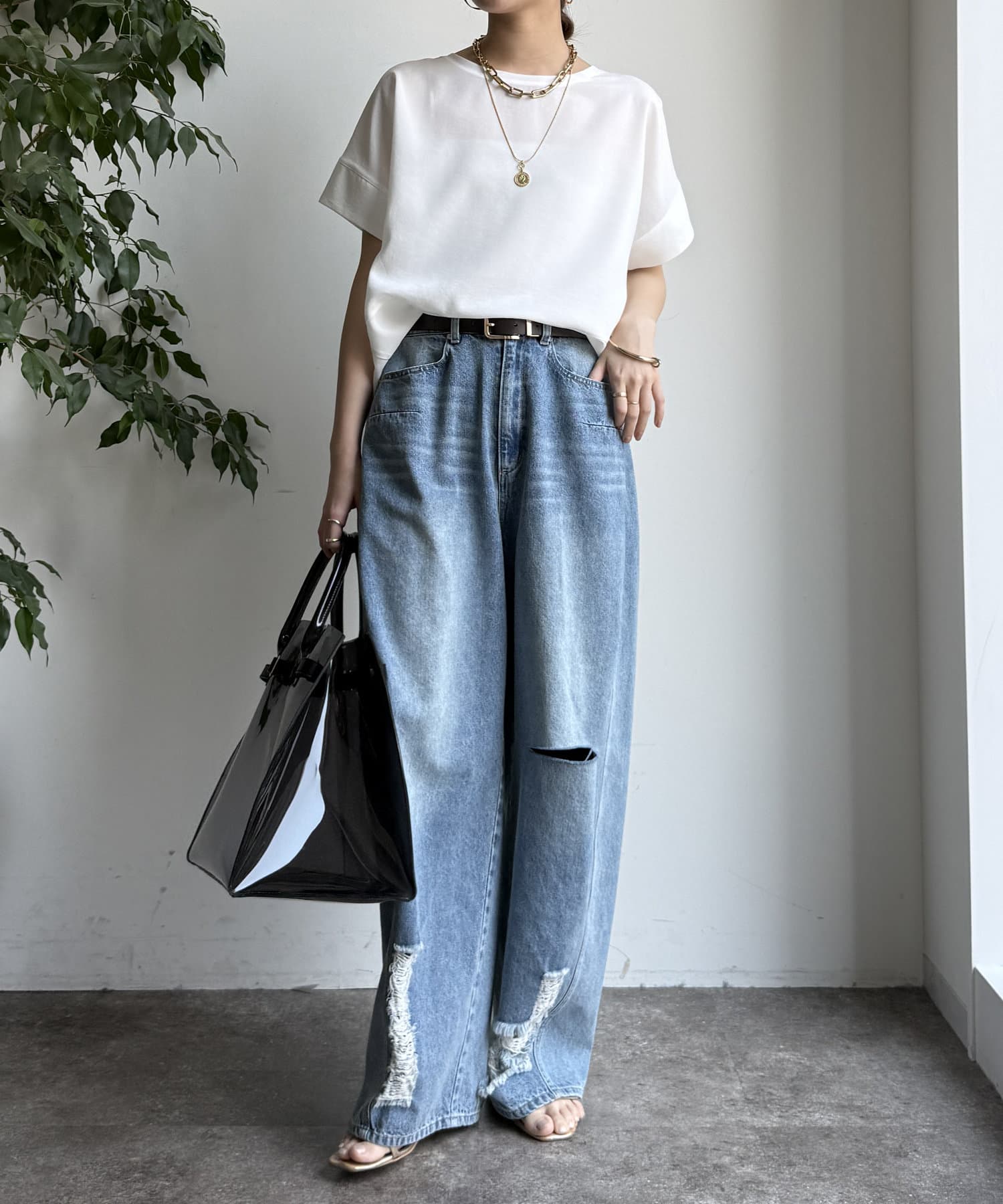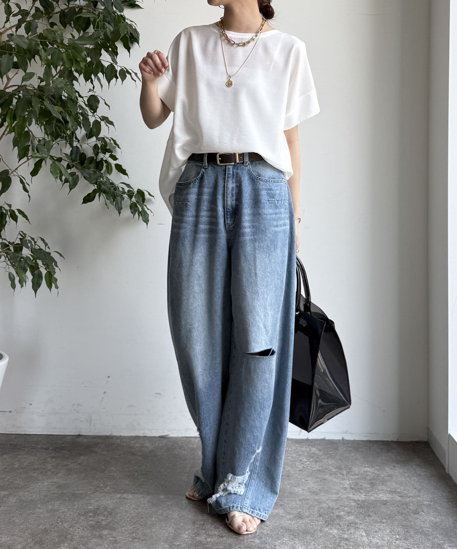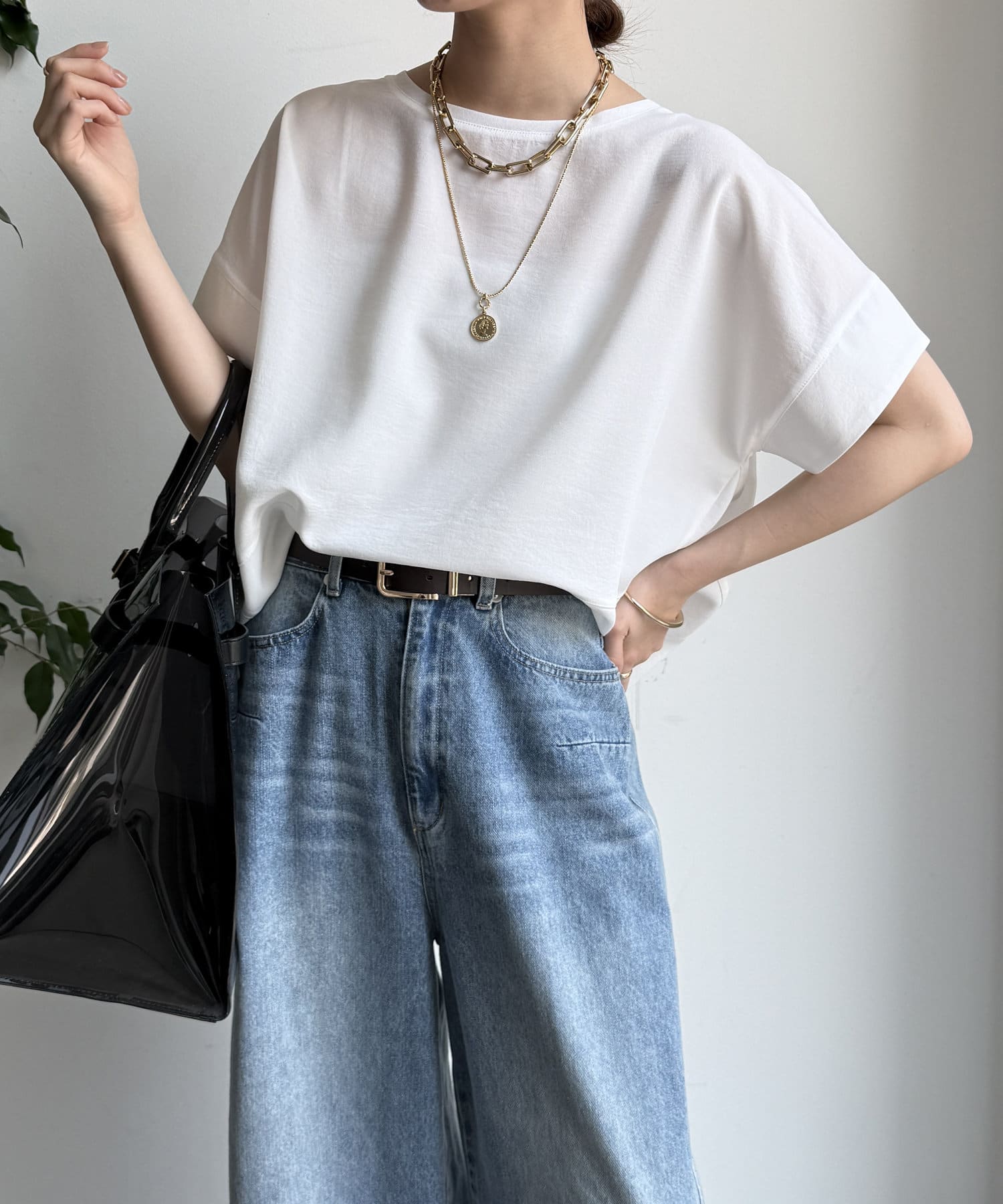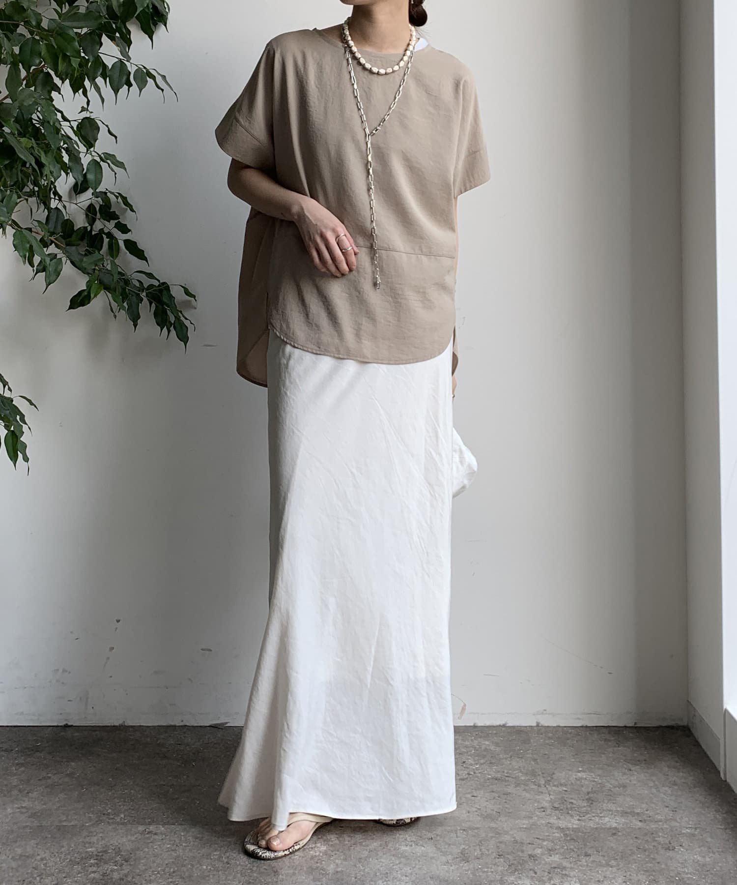 ボディラインを拾わずにすとんと落ち、ゆとり感のあるシルエットは、風通しもよくこれからの季節にぴったり。