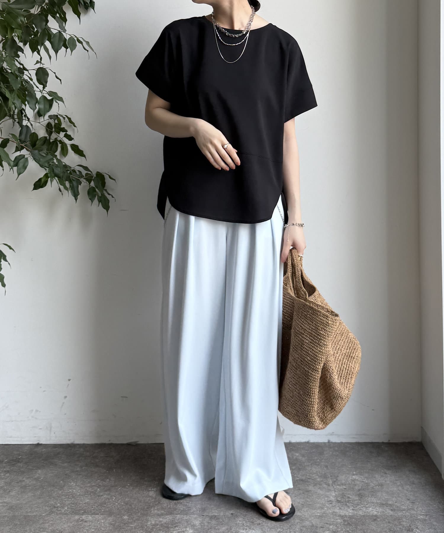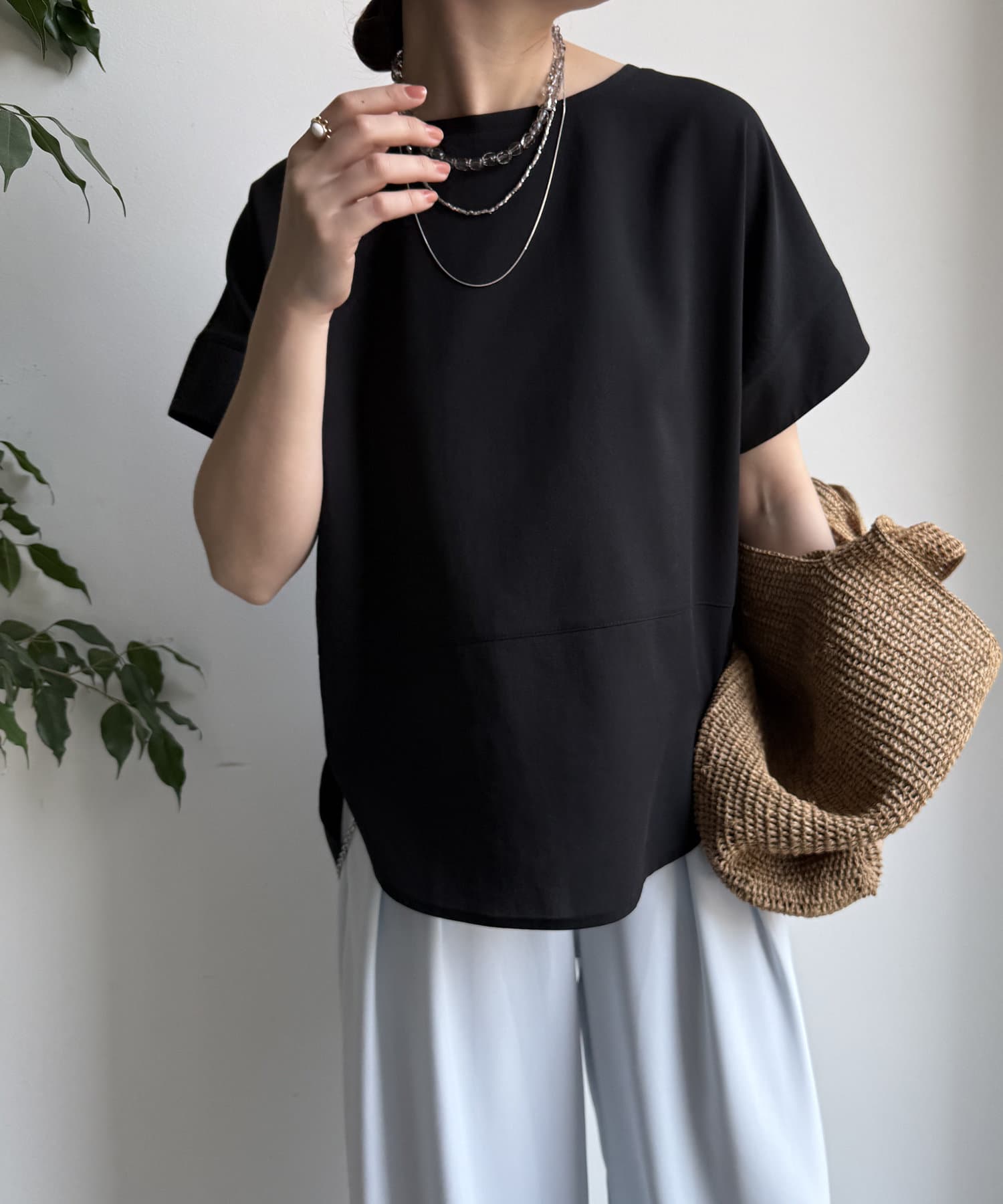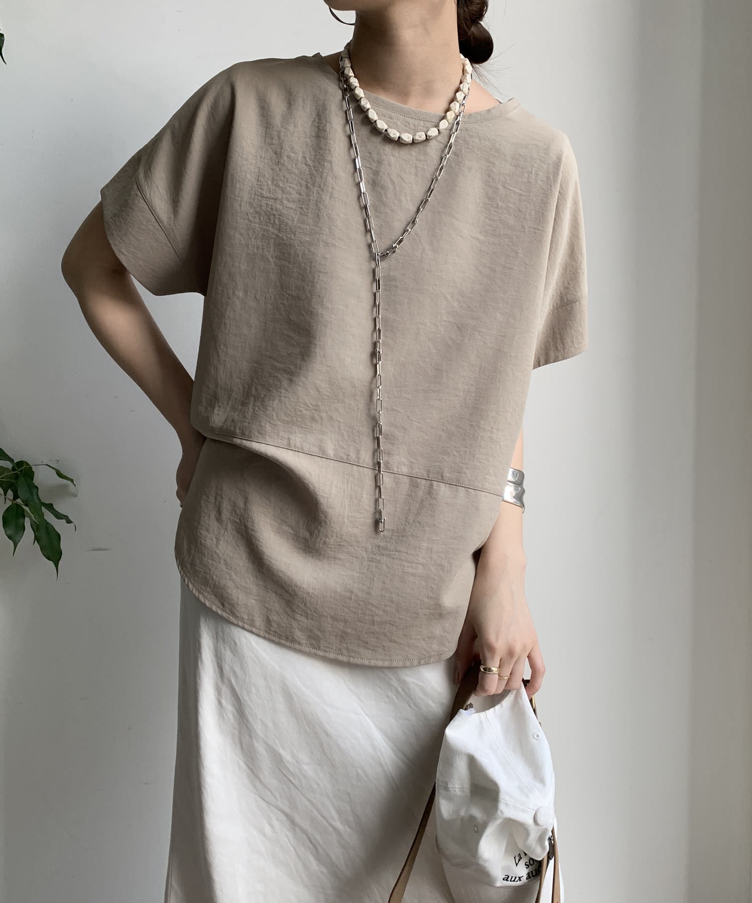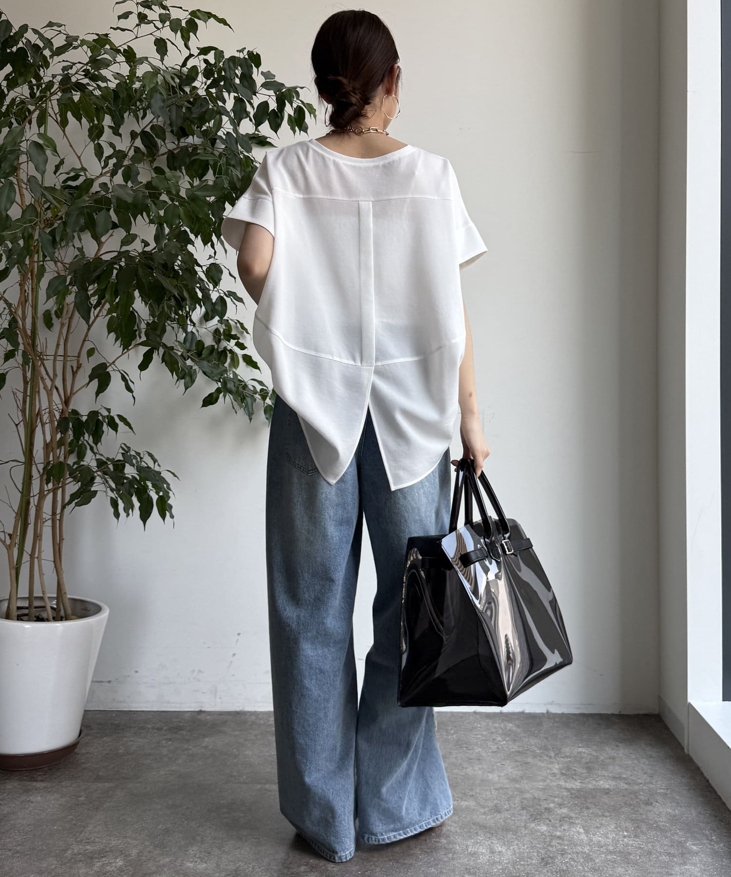 さりげない切替とバックスリットデザインがオシャレなシンプルTEE