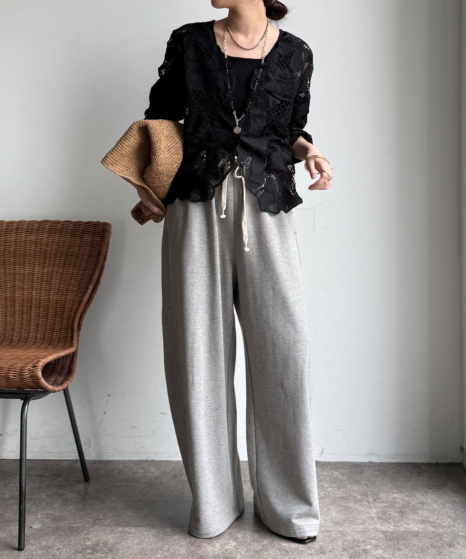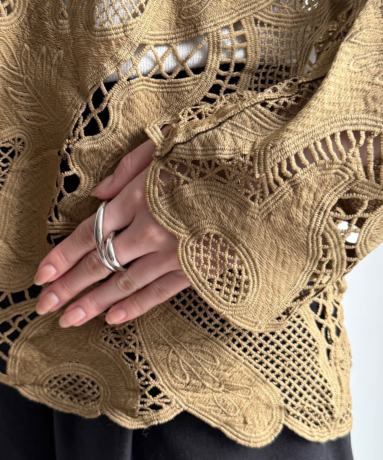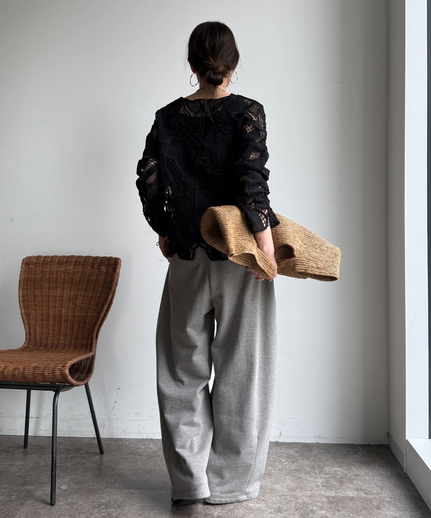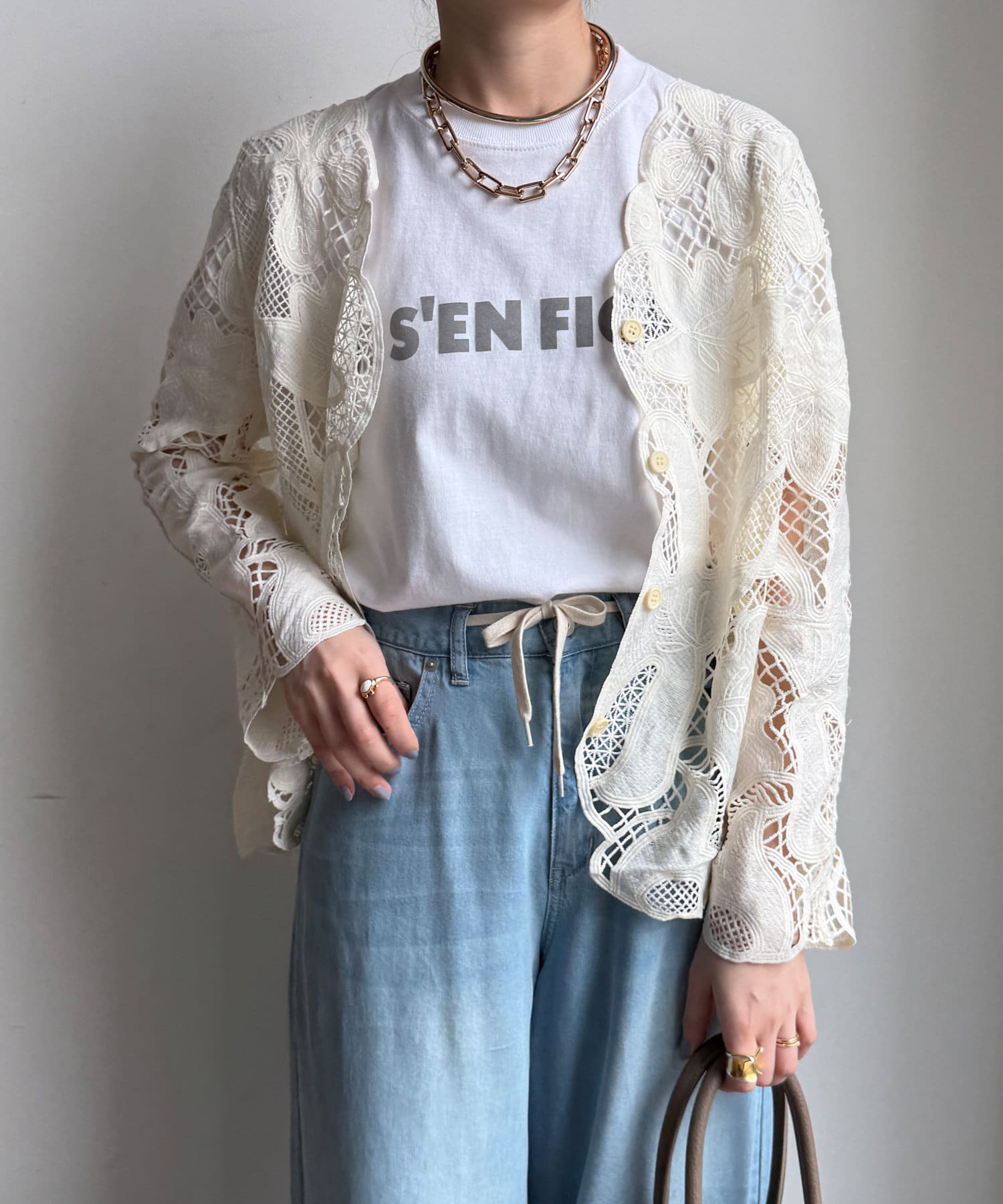 全体に施されたレースデザインがスタイリングを新鮮に見せてくれるアイテムです!