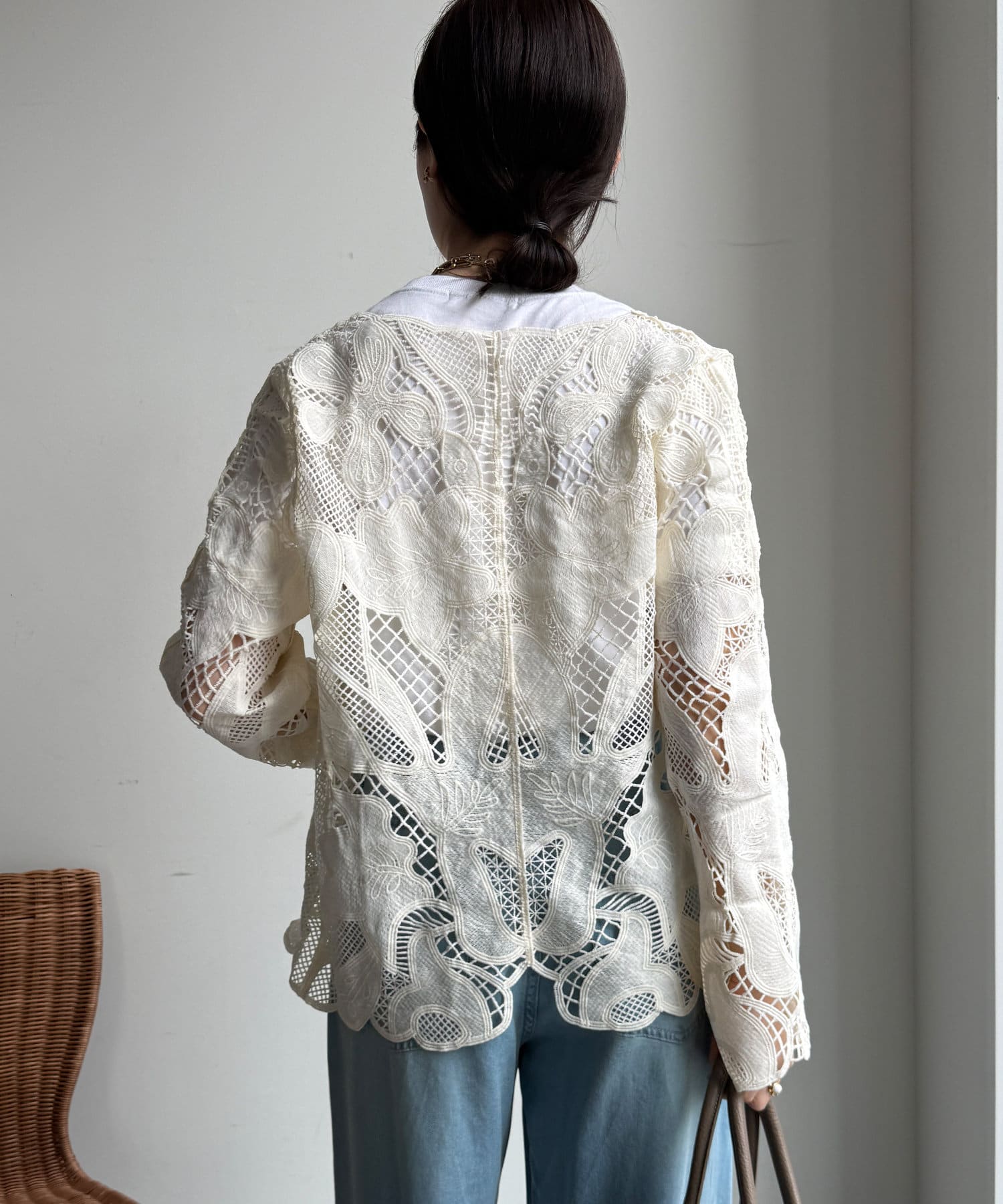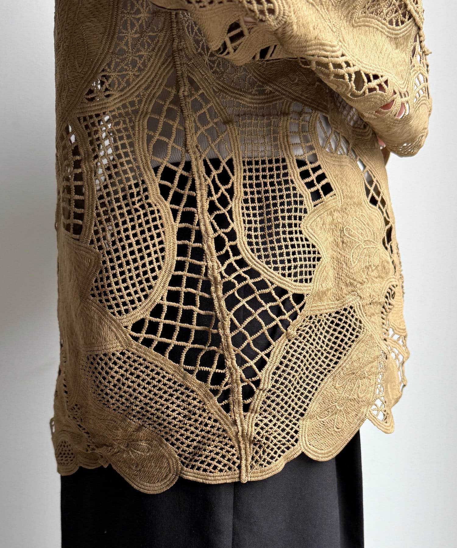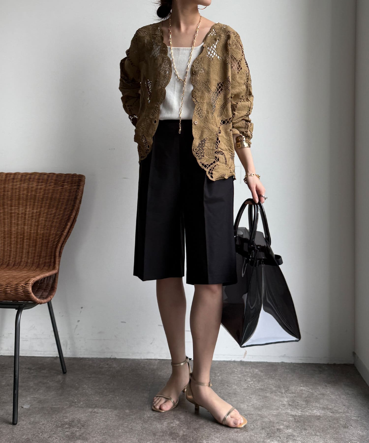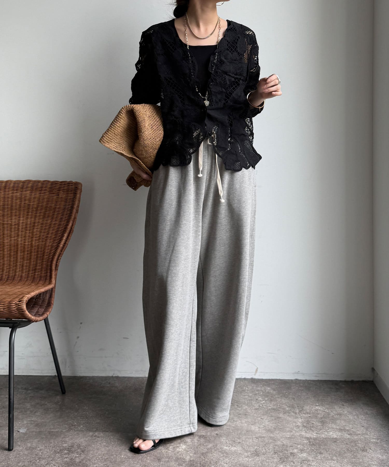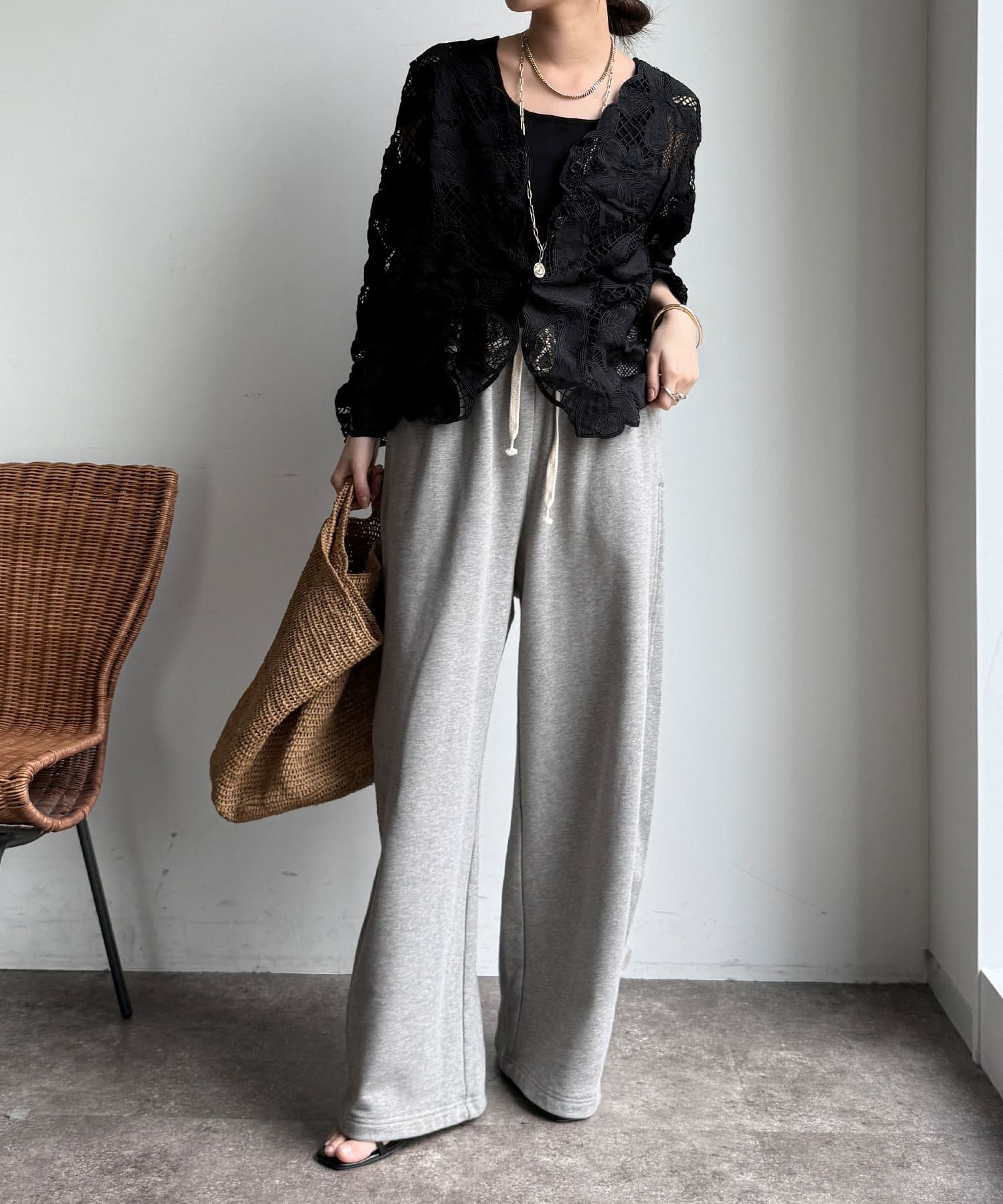 全体に施されたレースデザインがスタイリングを新鮮に見せてくれるアイテムです!
