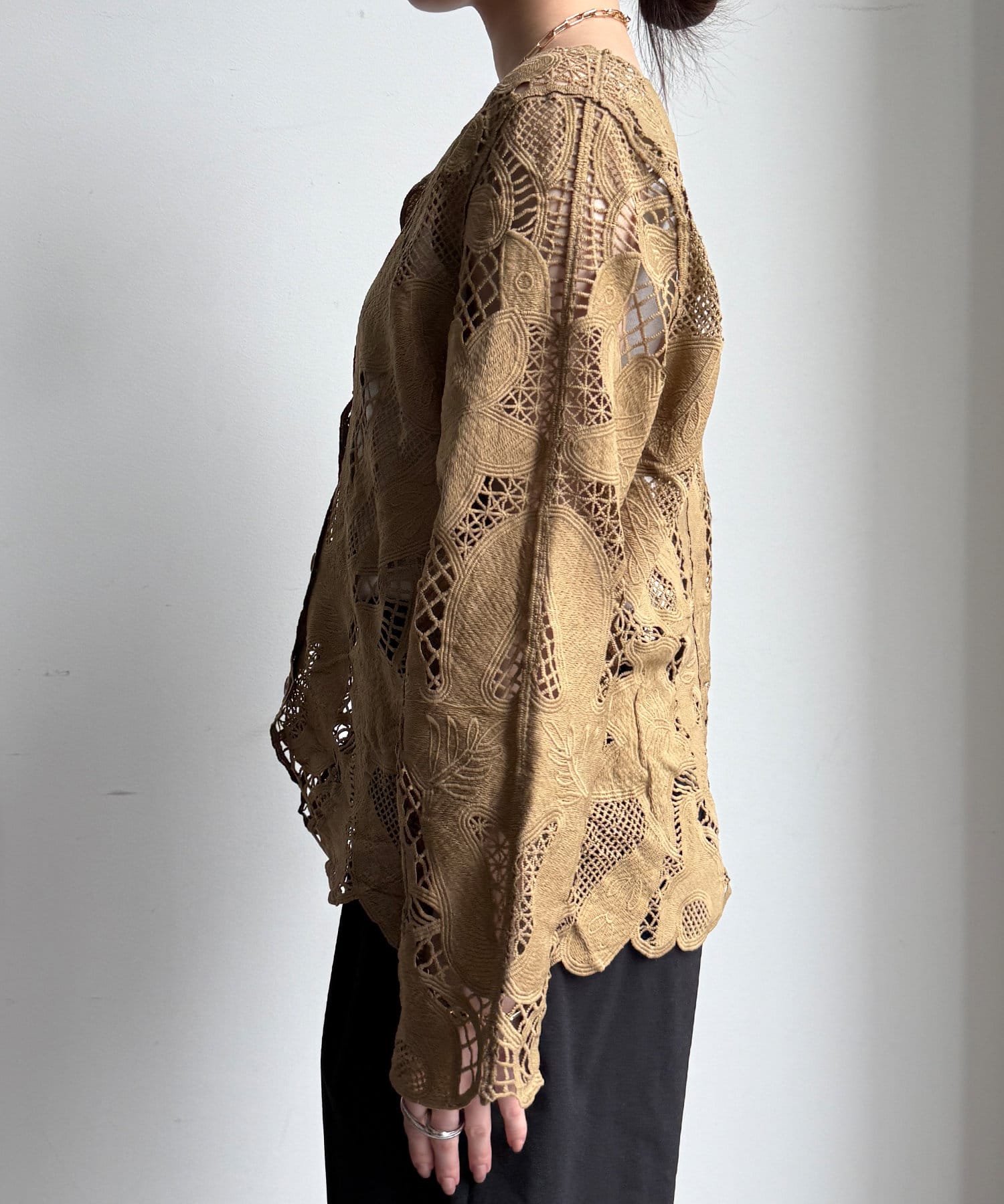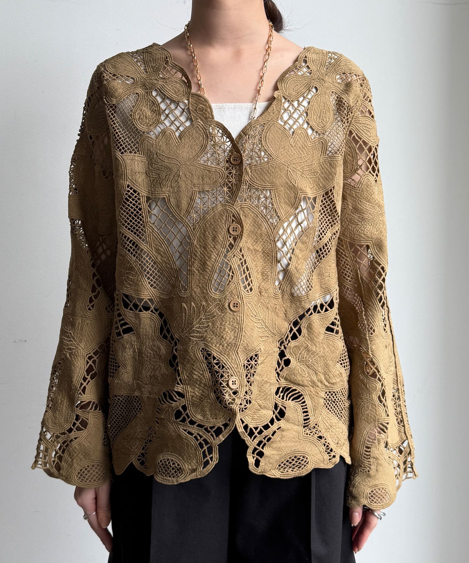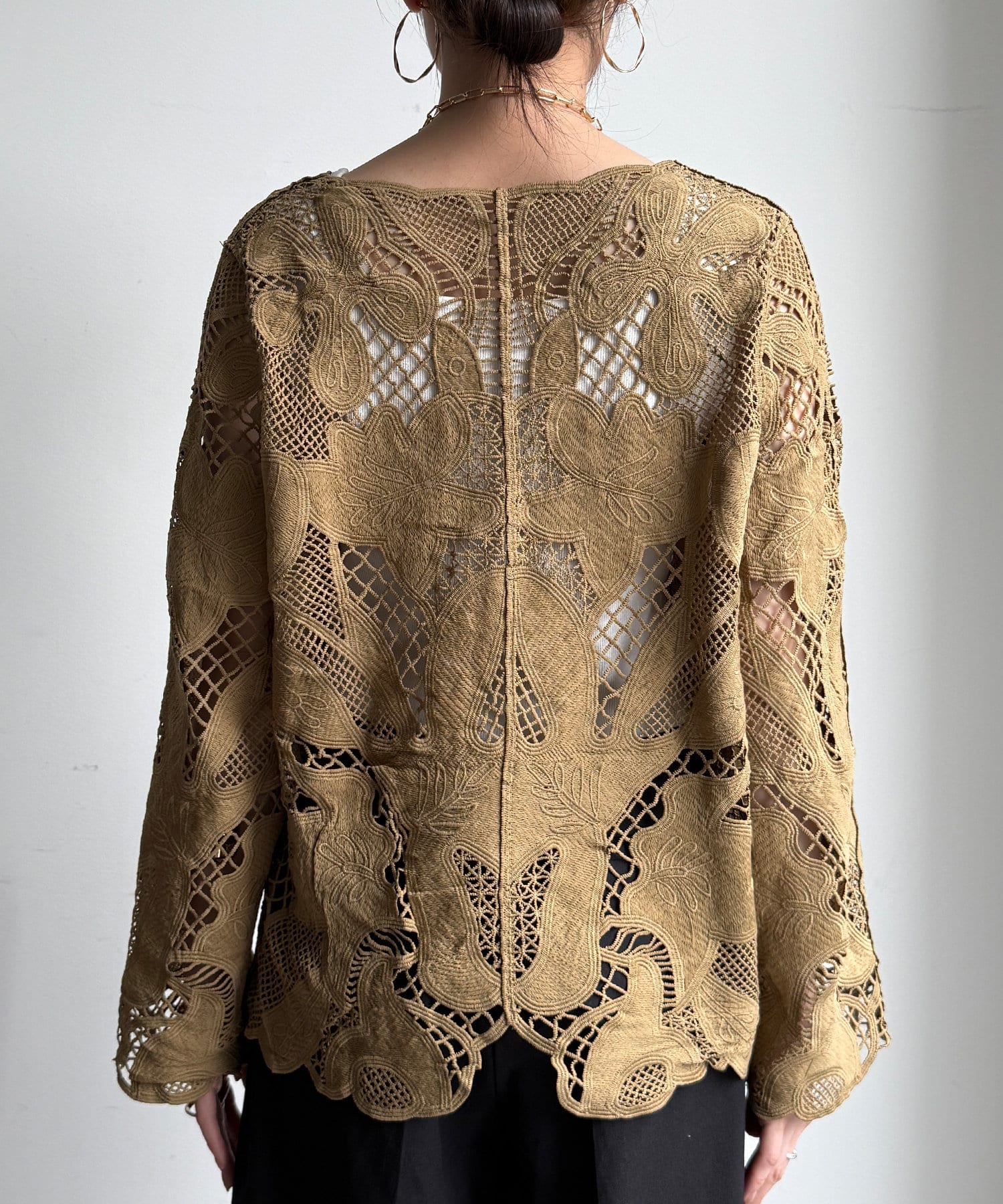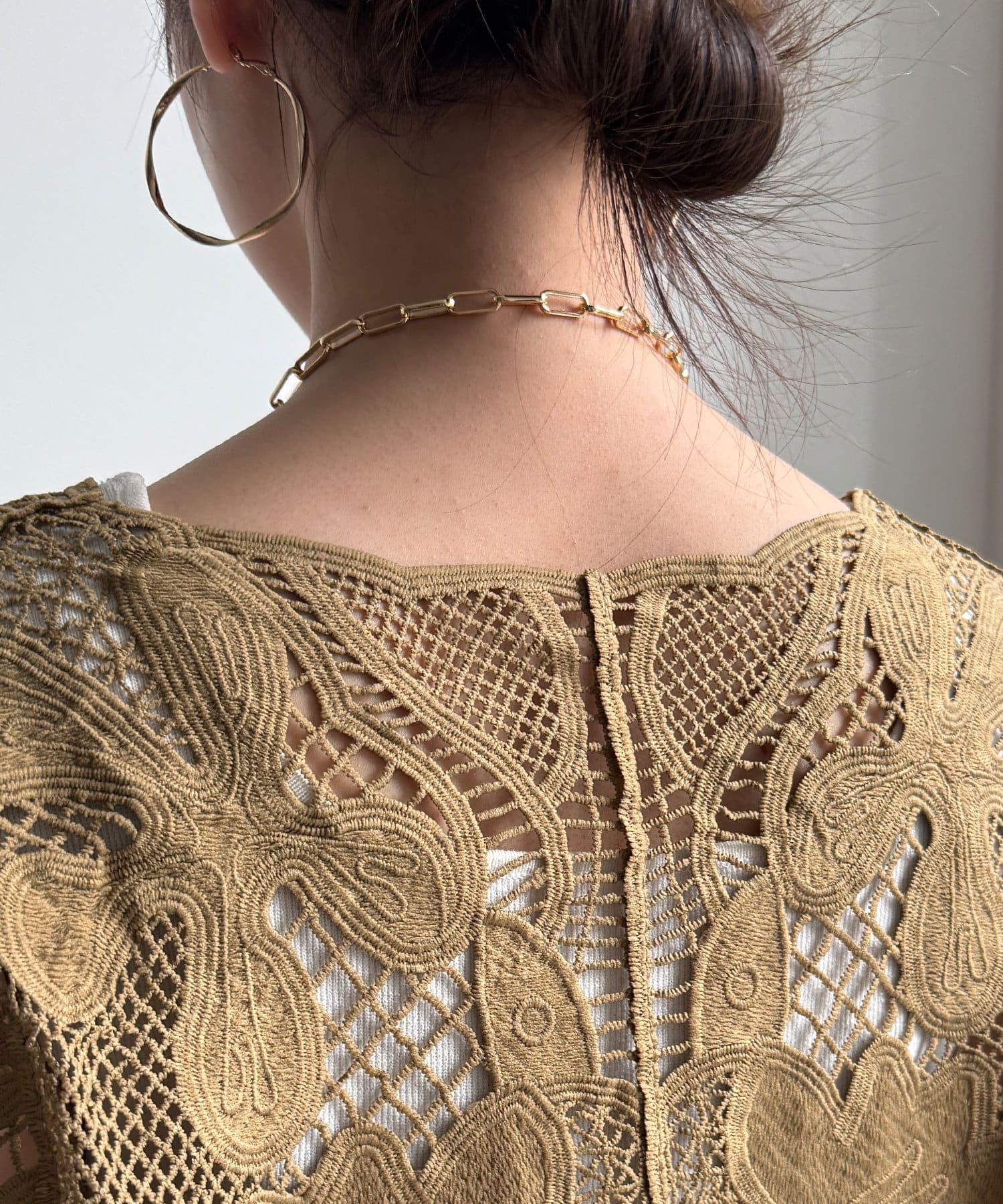 全体に施されたレースデザインがスタイリングを新鮮に見せてくれるアイテムです!