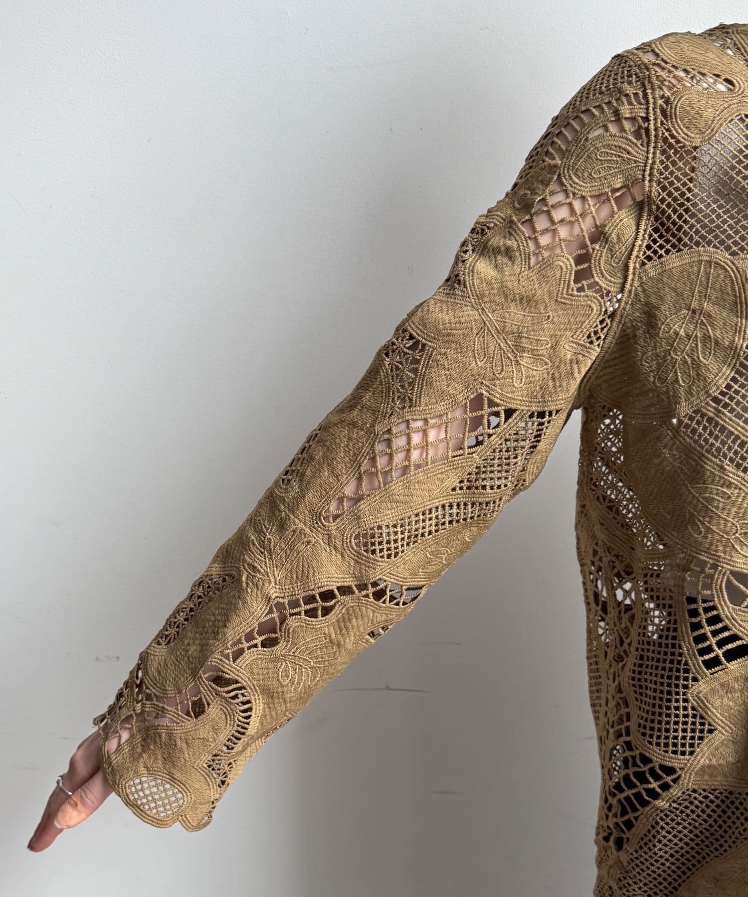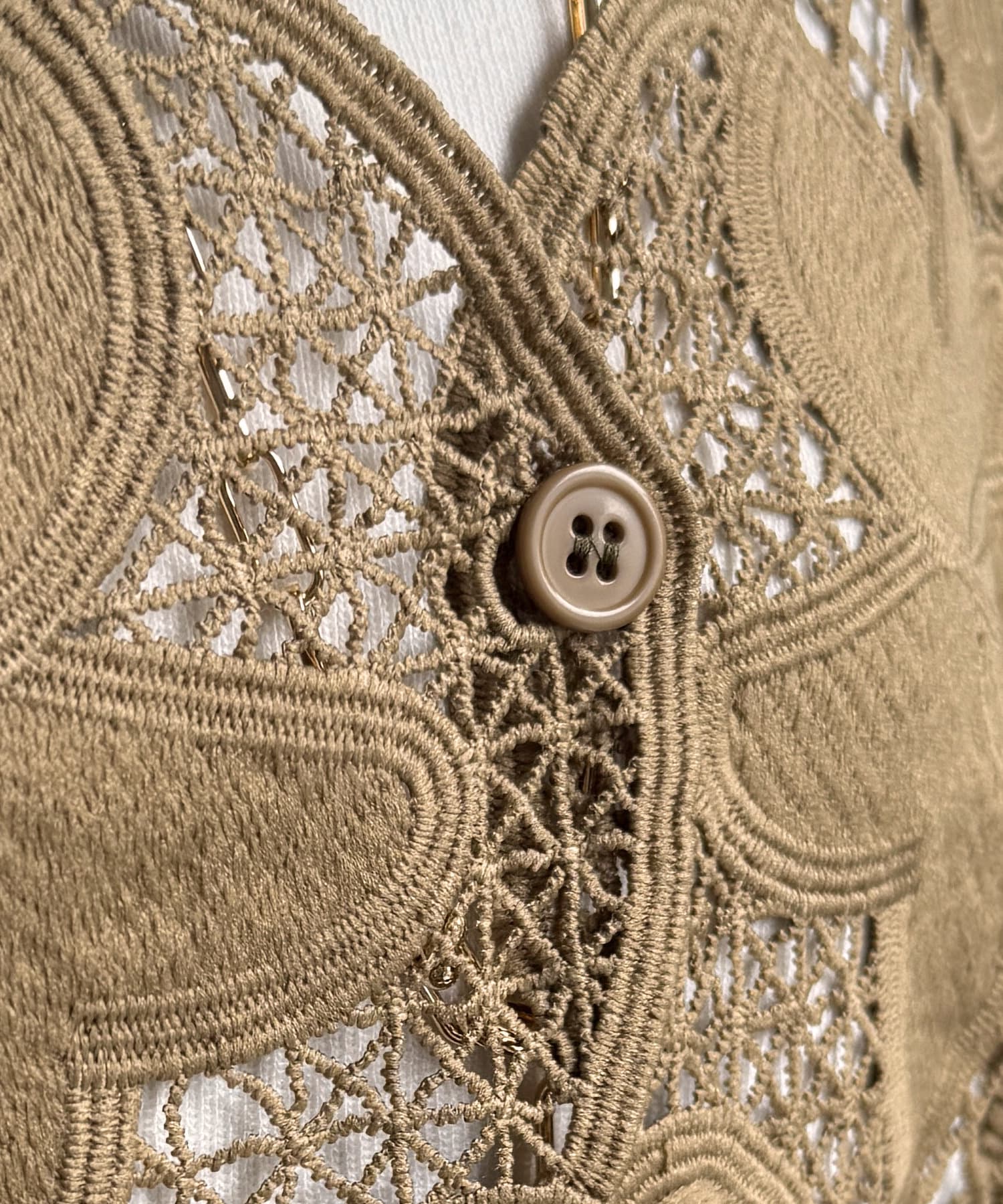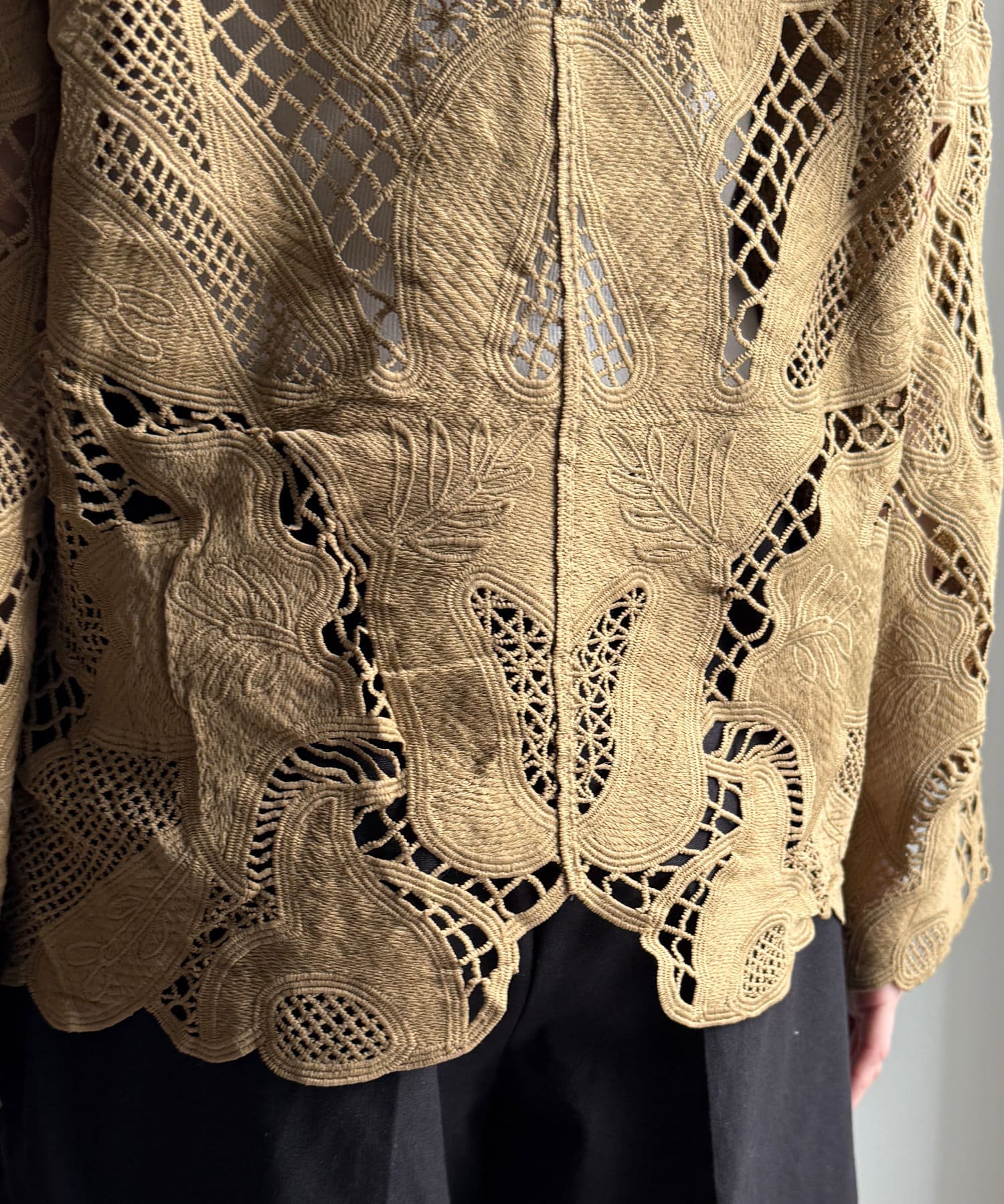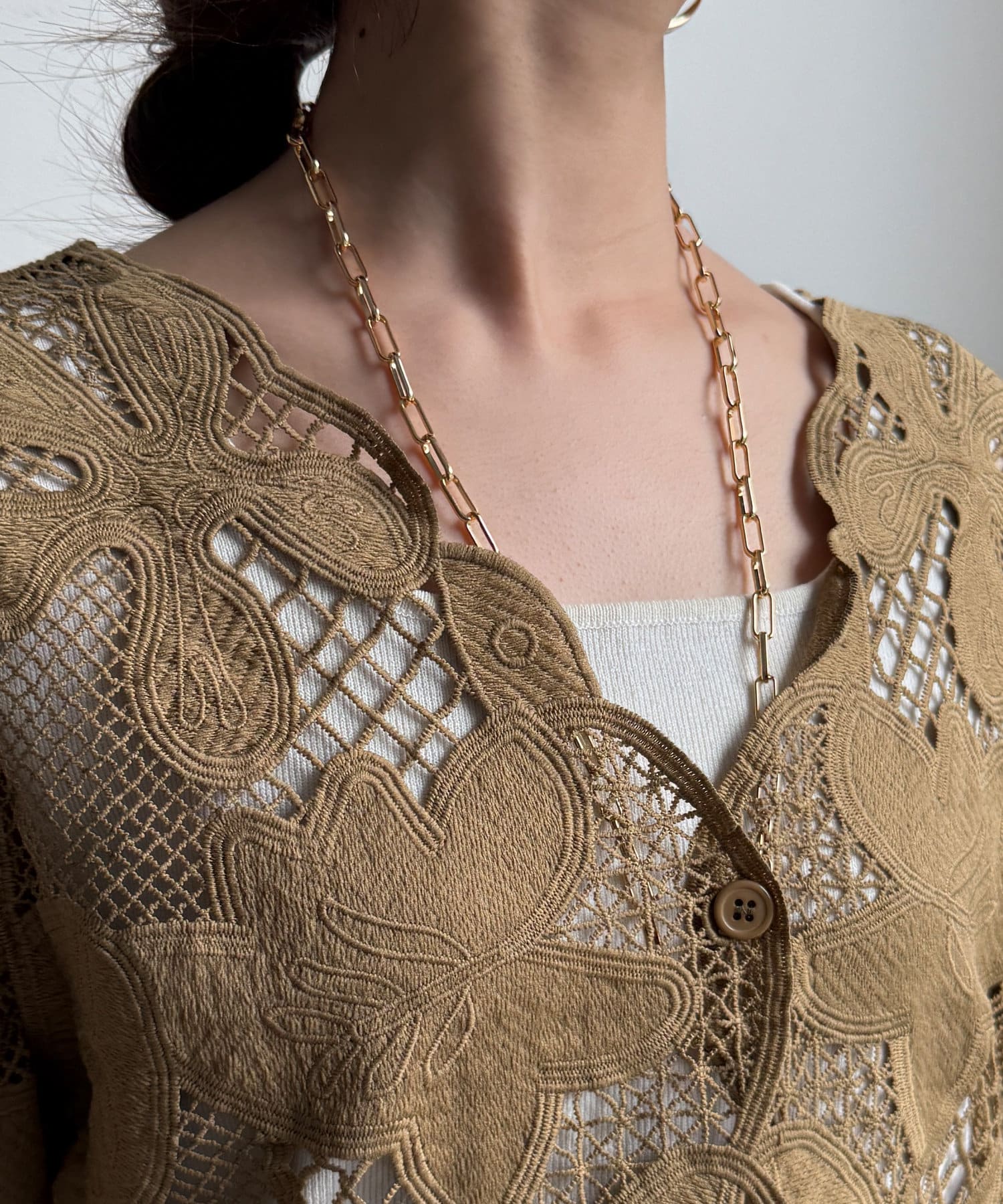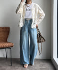 全体に施されたレースデザインがスタイリングを新鮮に見せてくれるアイテムです!
