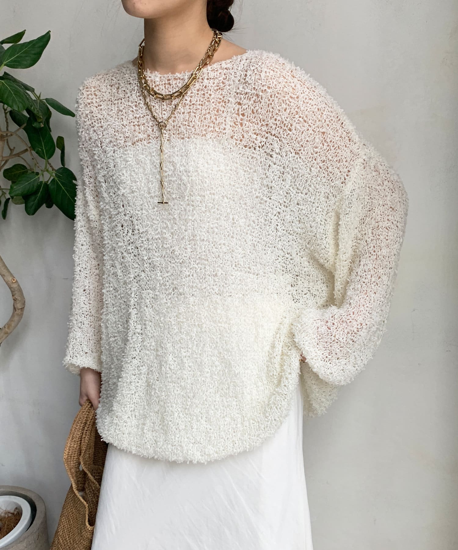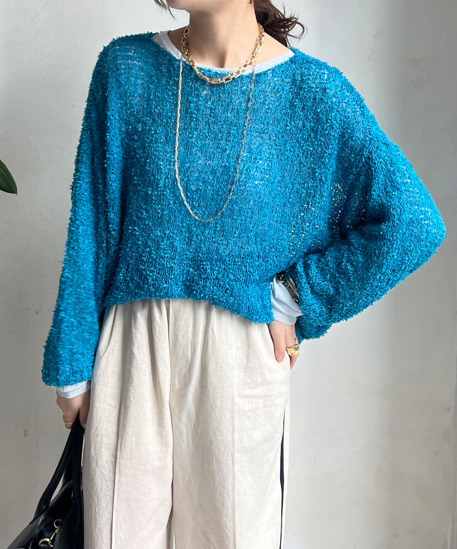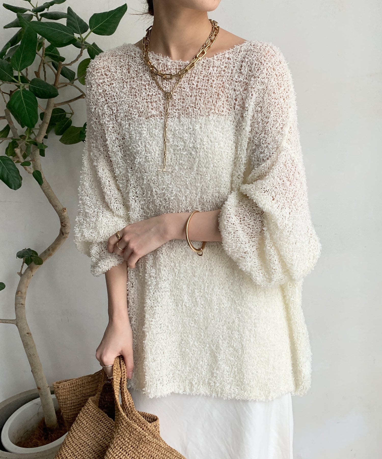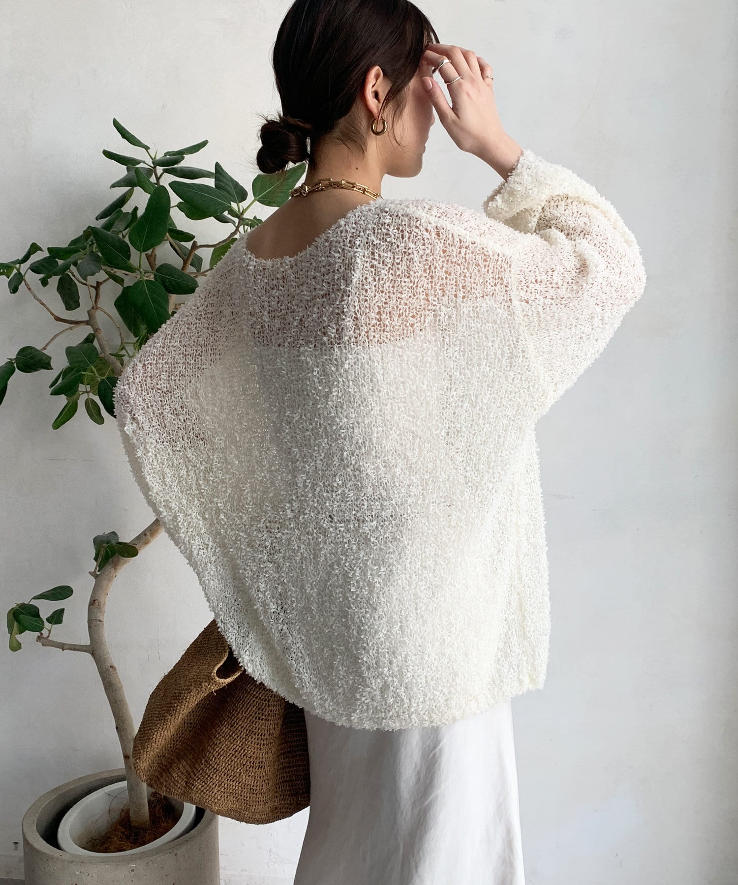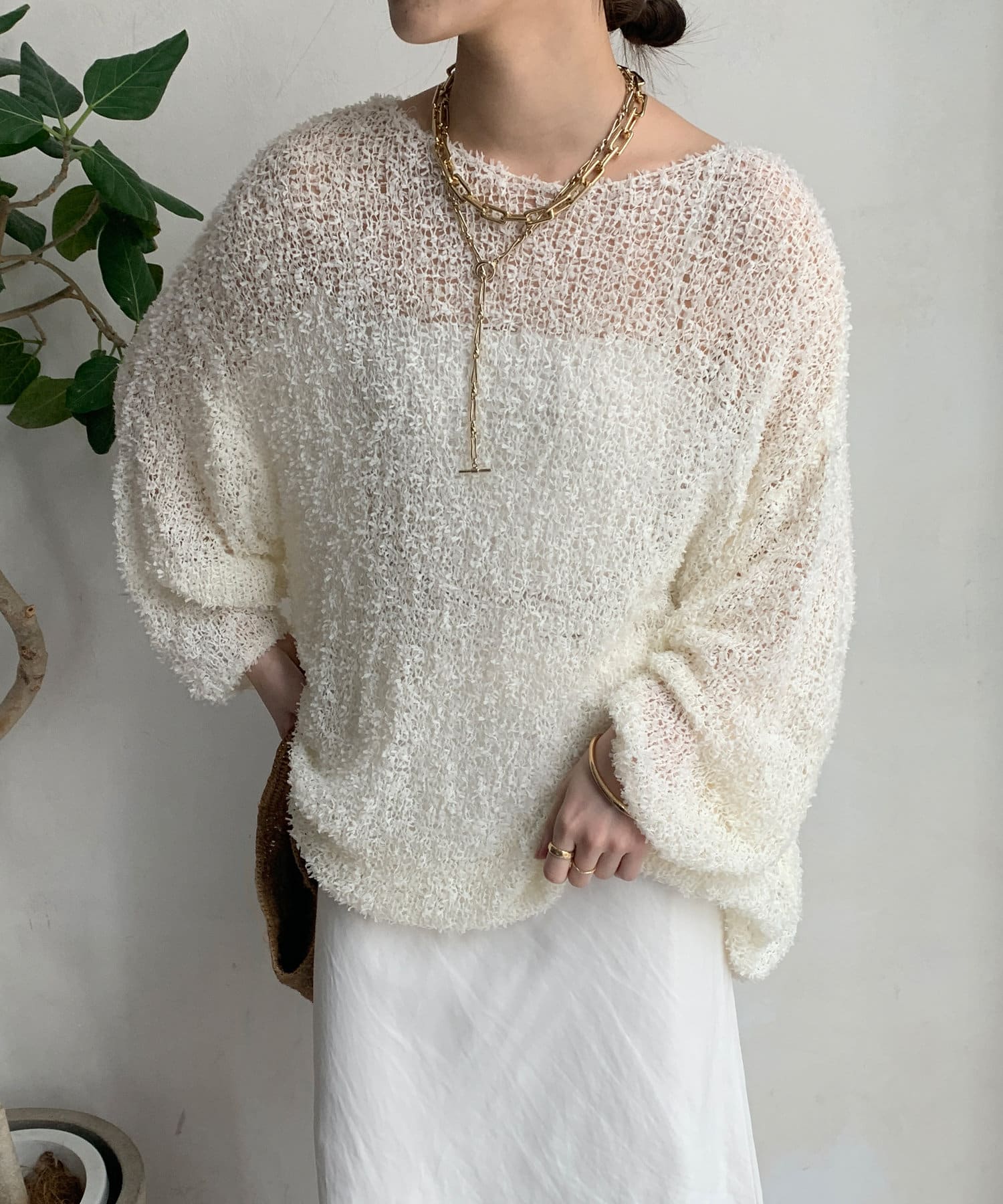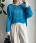 表面感のあるリボンヤーンを使用した、ニットプルオーバー。